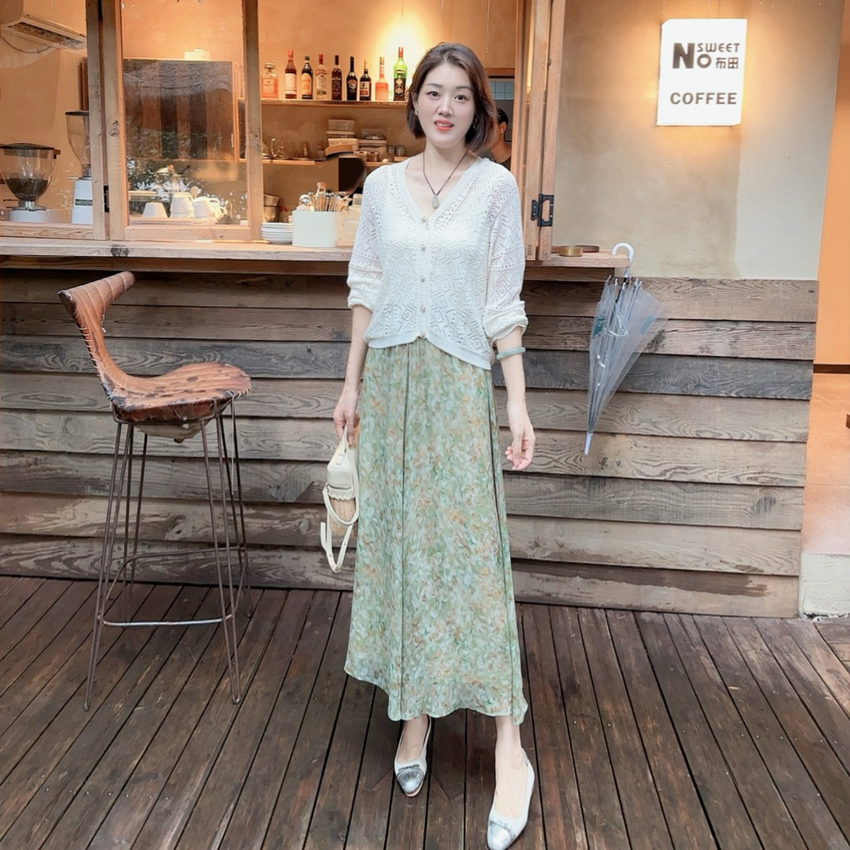 火桐hooton 南洋假日 双层真丝乔其气质格纹半裙