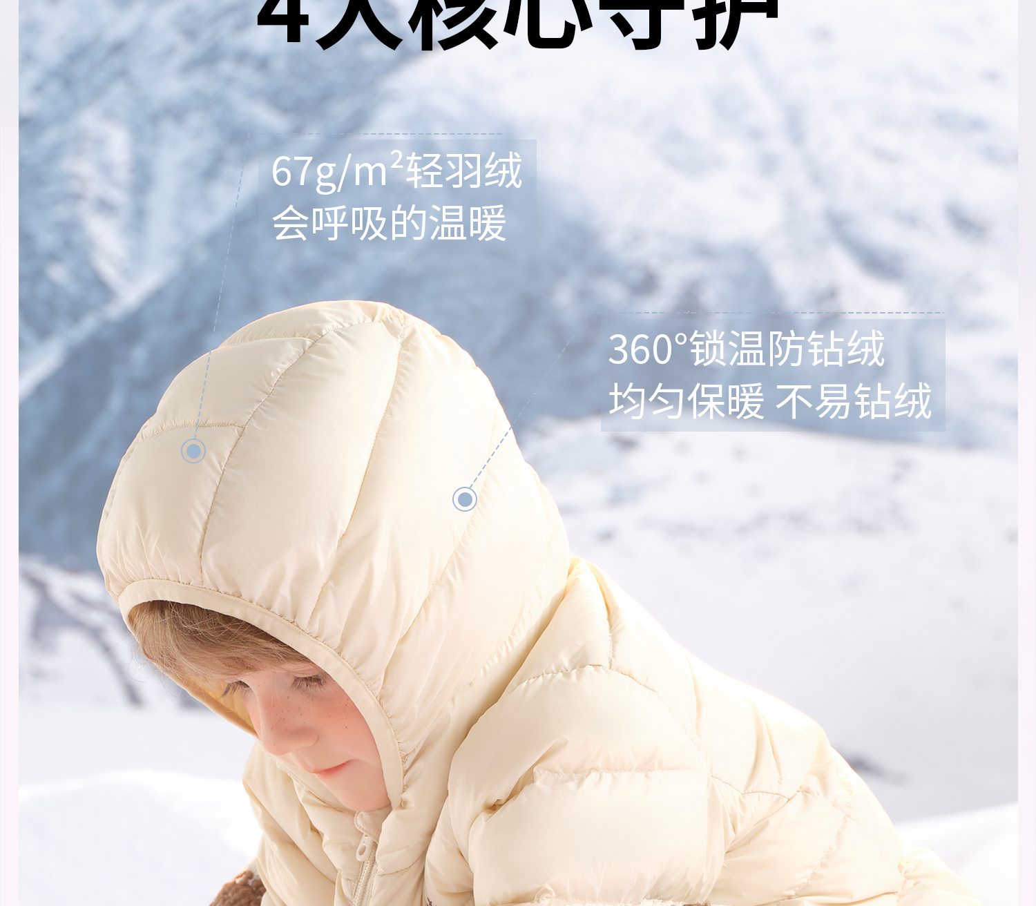 科巢儿童羽绒服短款男童女童轻薄内胆2025年新款连帽防风冬装外套