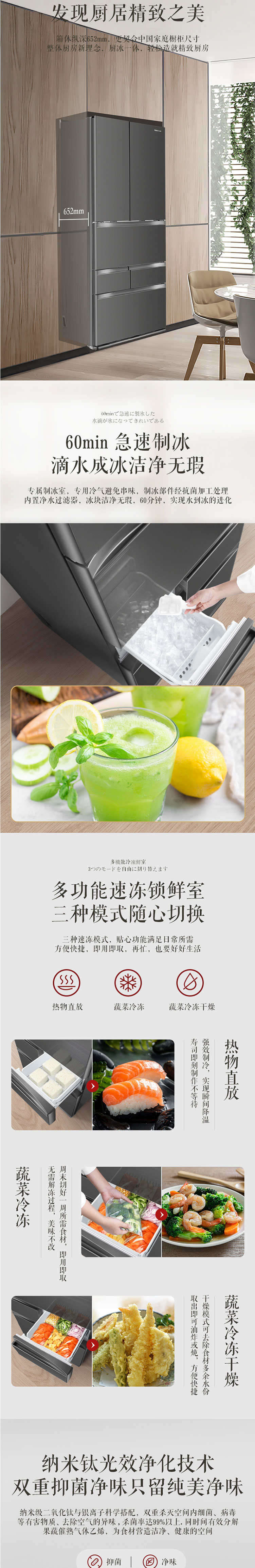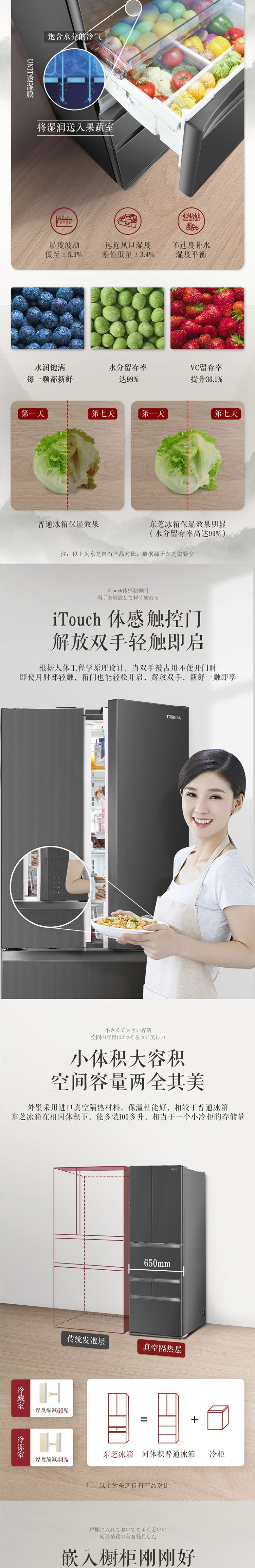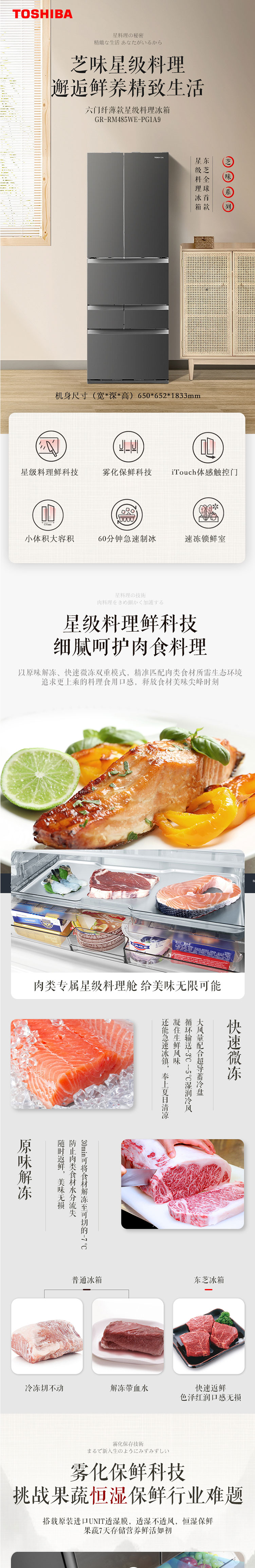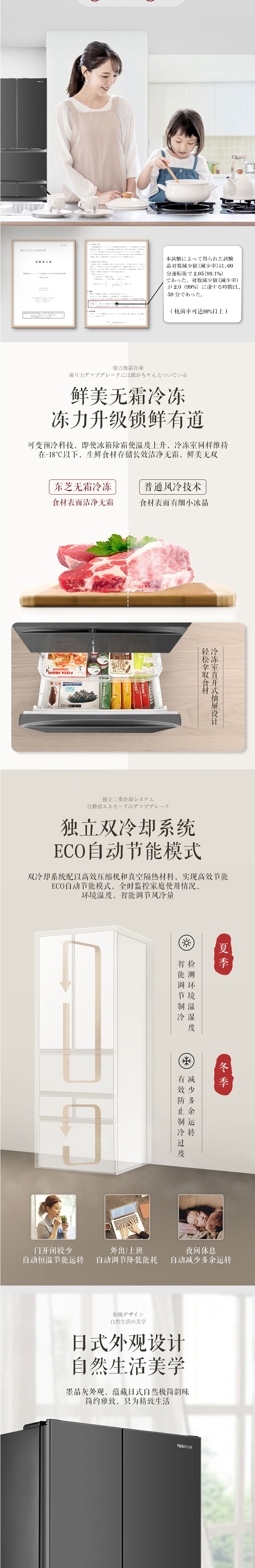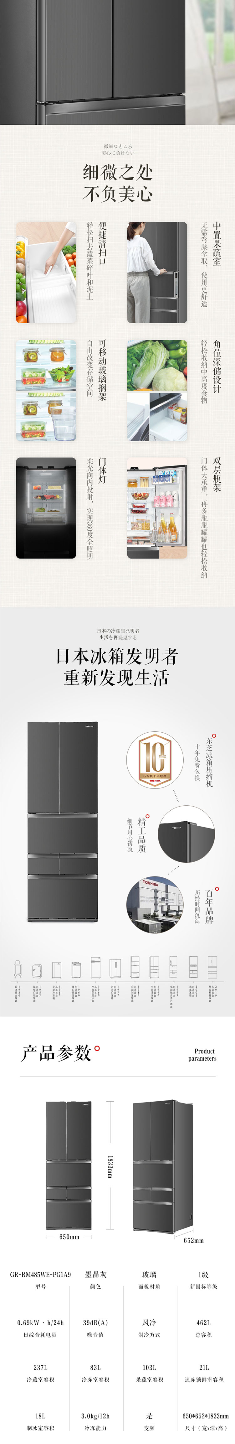 东芝(TOSHIBA)462升法式六门电冰箱纳米钛光效净化纤薄外壁果蔬空间自开门 GR-RM485WE-PG1A9 墨晶灰