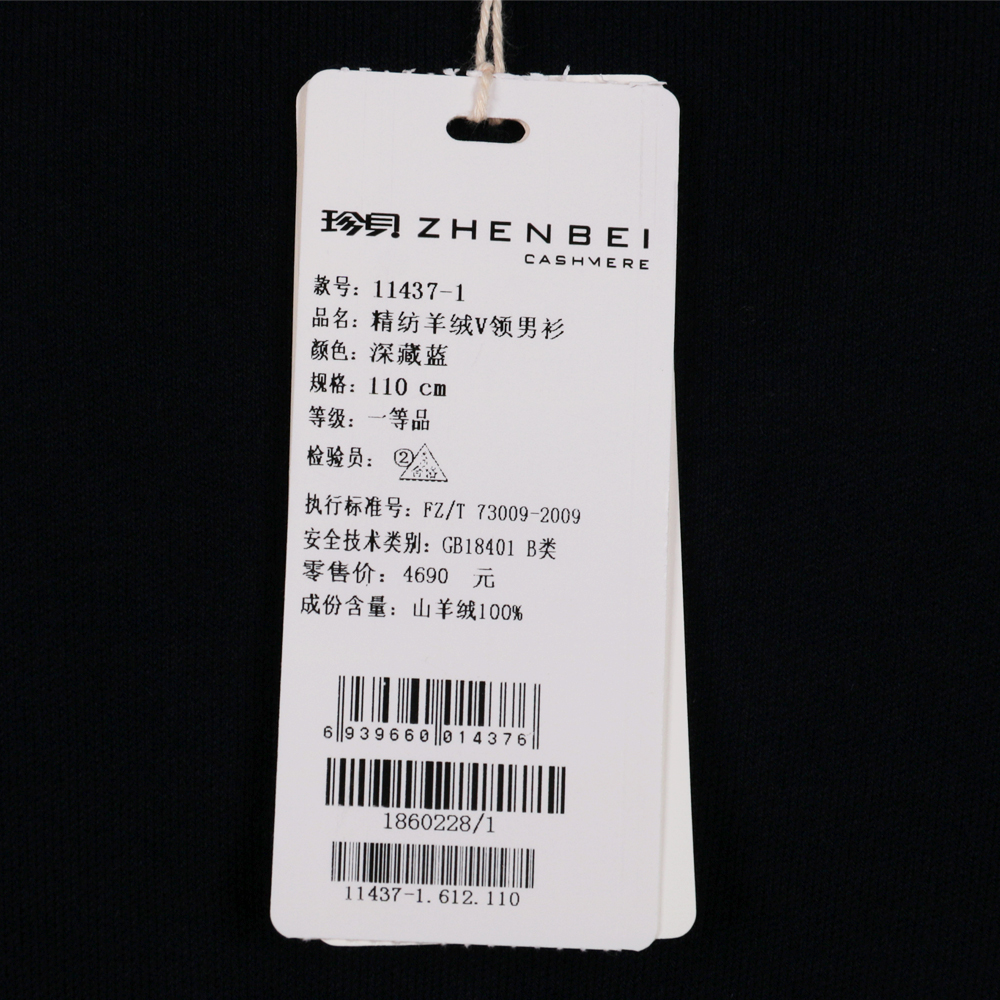 珍贝精纺羊绒V领男衫11437-1