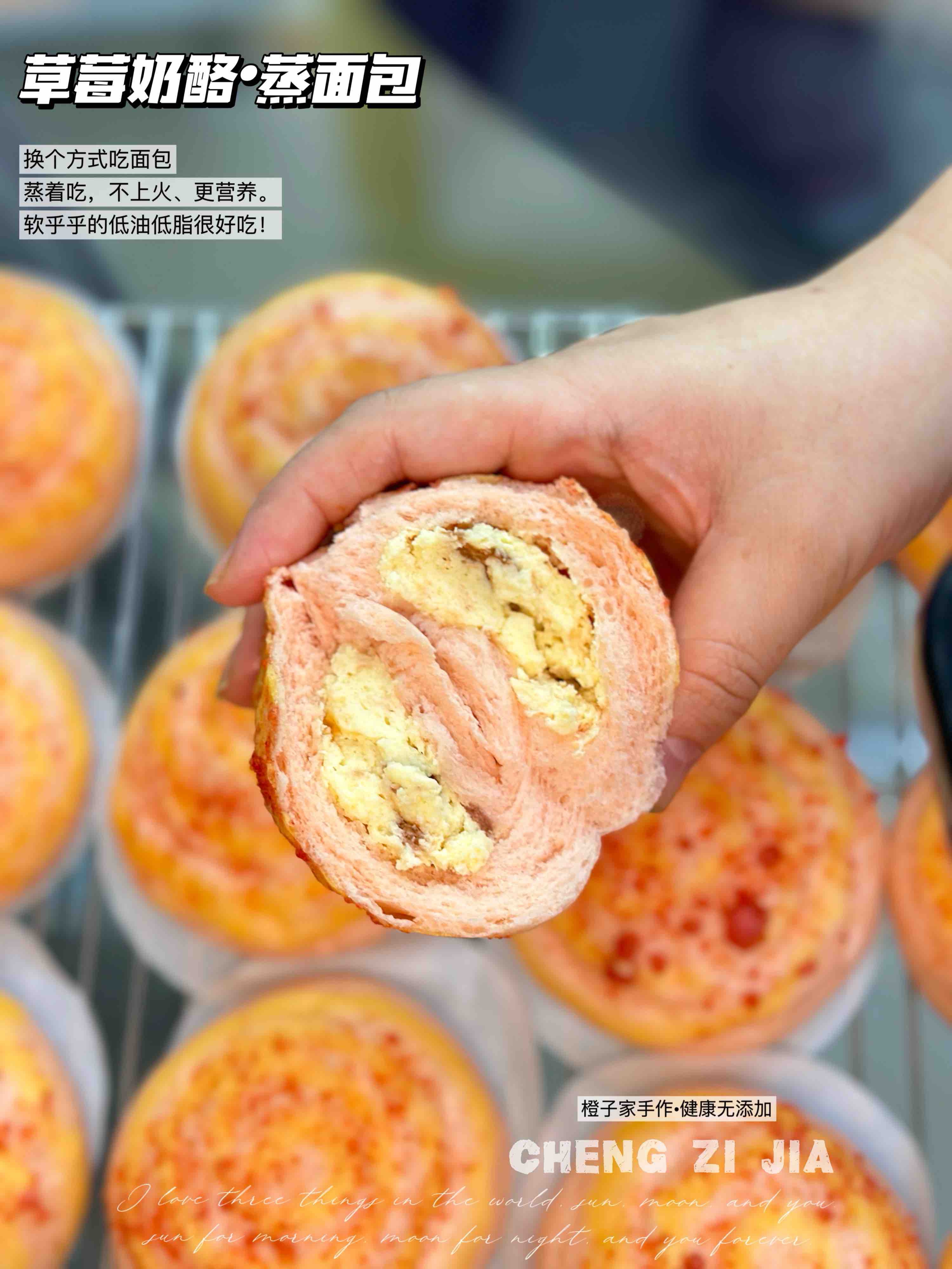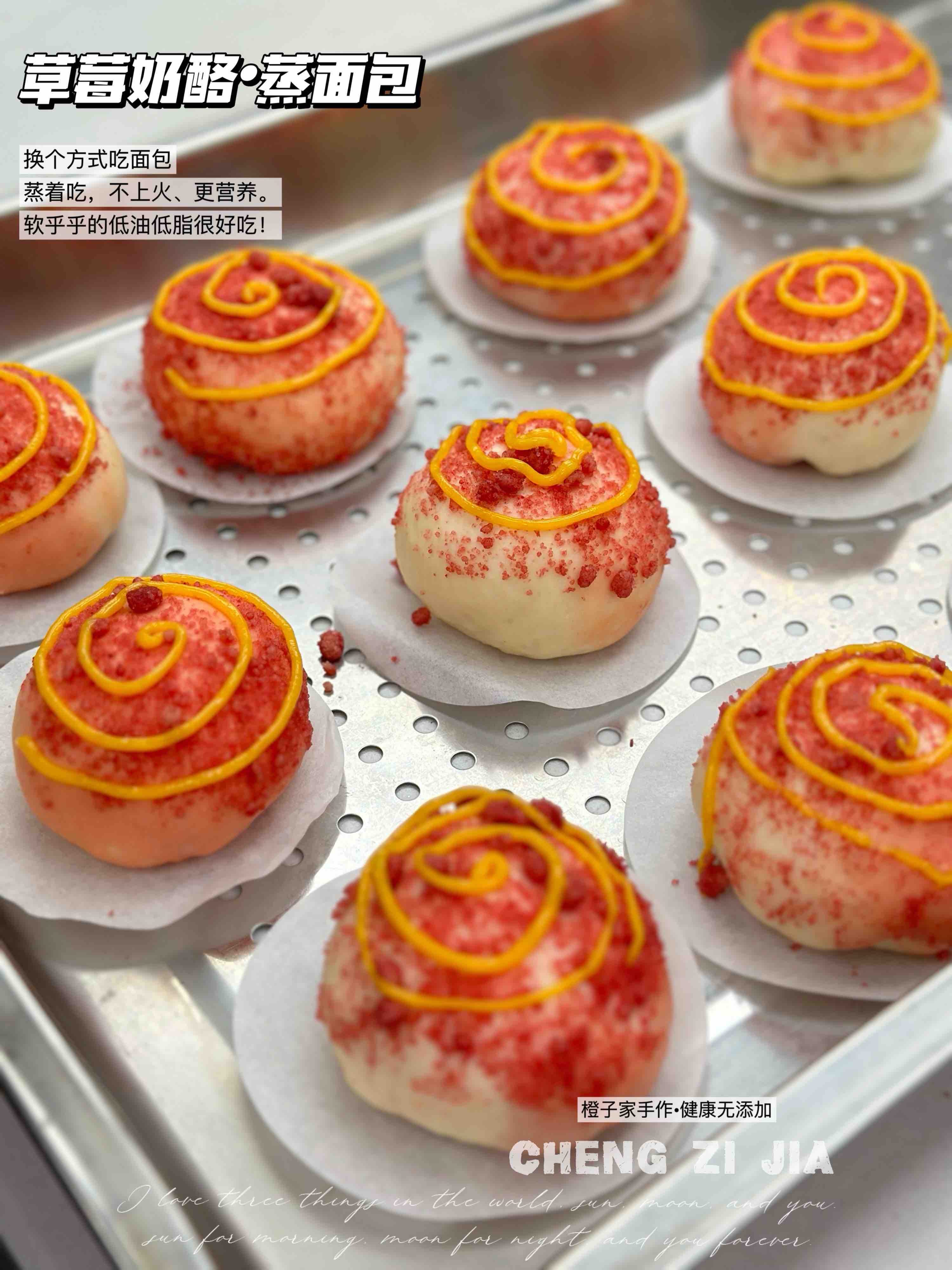 彩虹草莓奶酪蒸面包