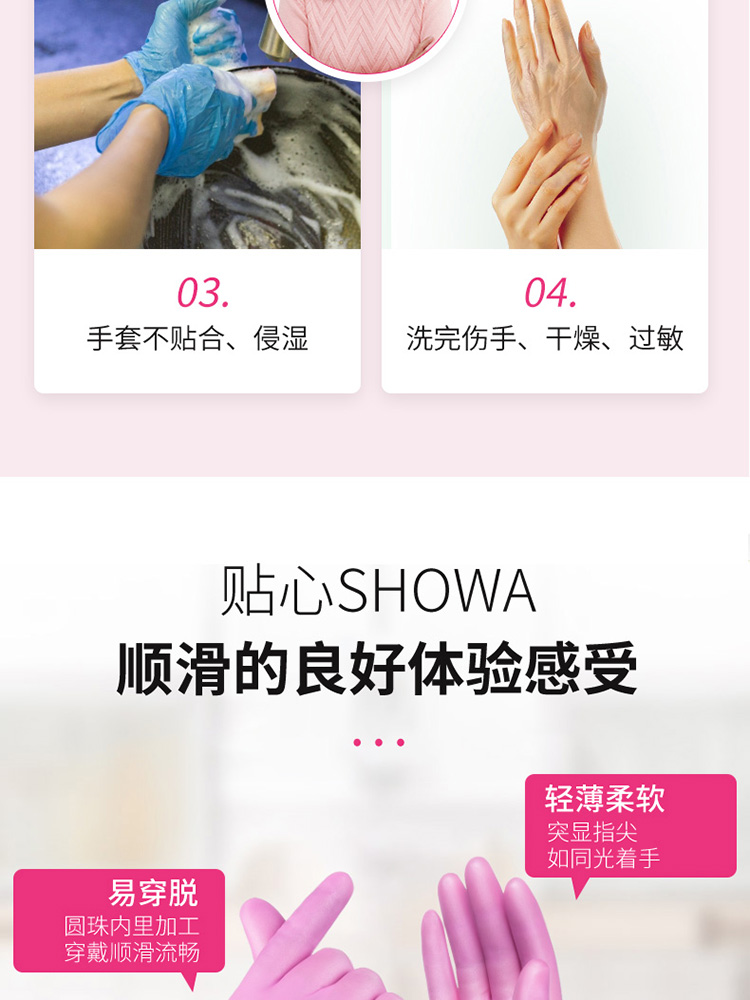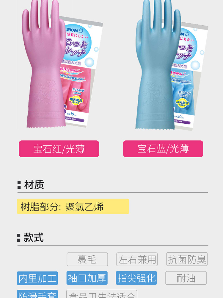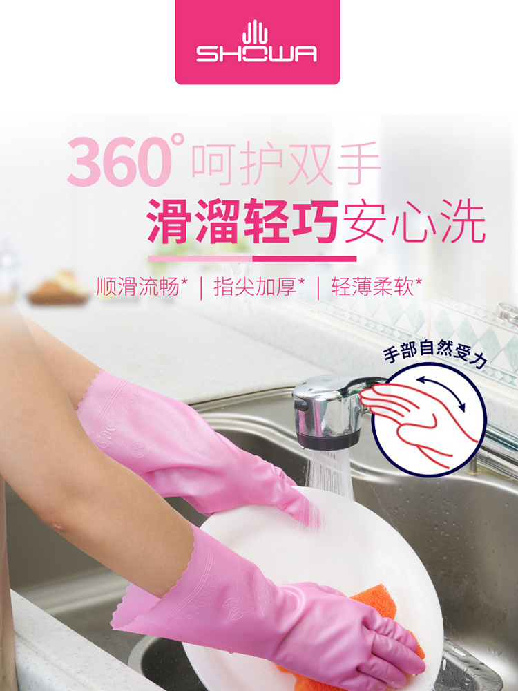 SHOWA尚和洗碗手套刷碗家务橡胶皮防水厨房耐用型薄款滑溜型手感轻巧橡胶皮防水手套【不支持补差,非质量问题不退不换】S