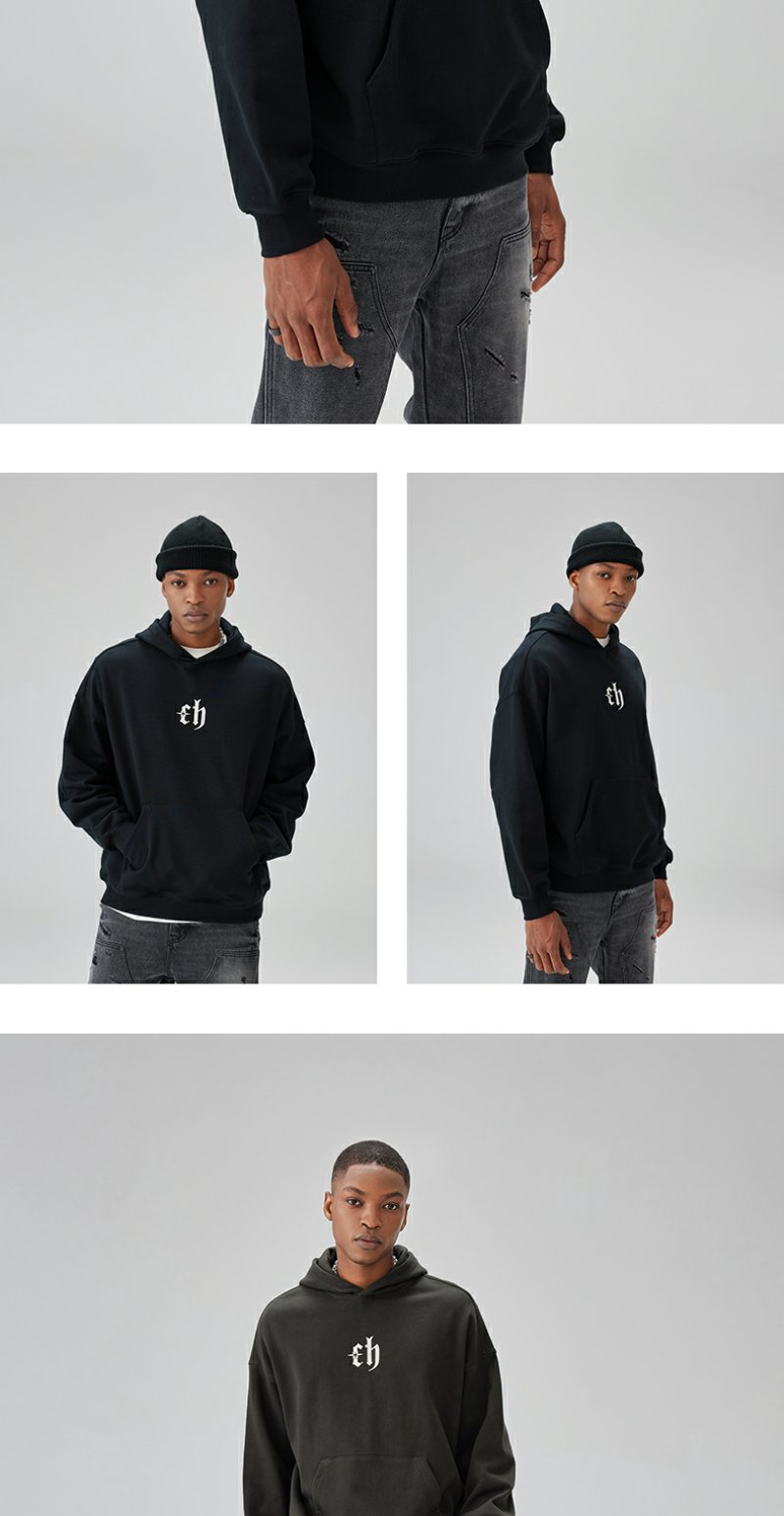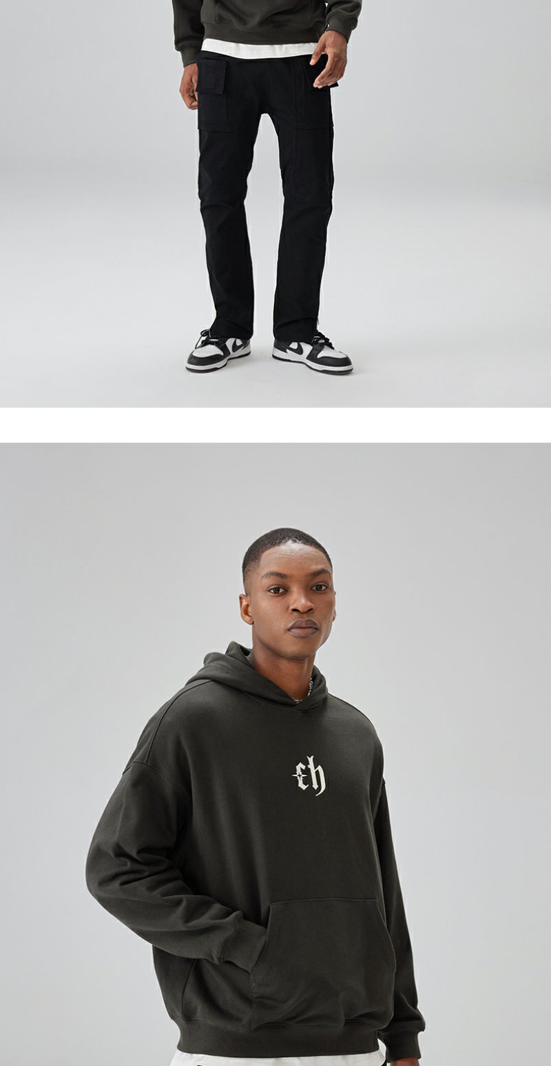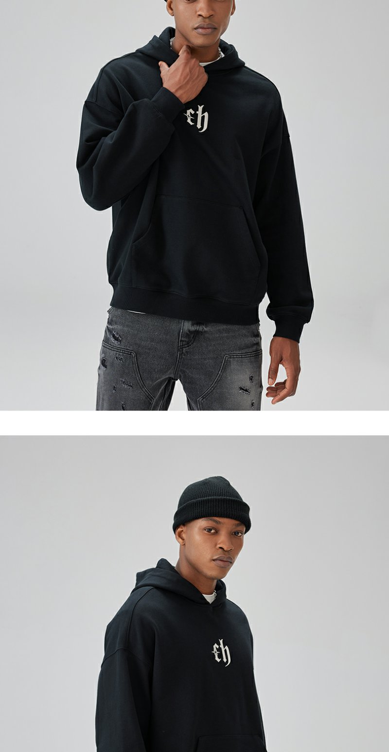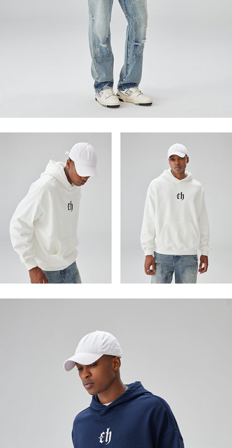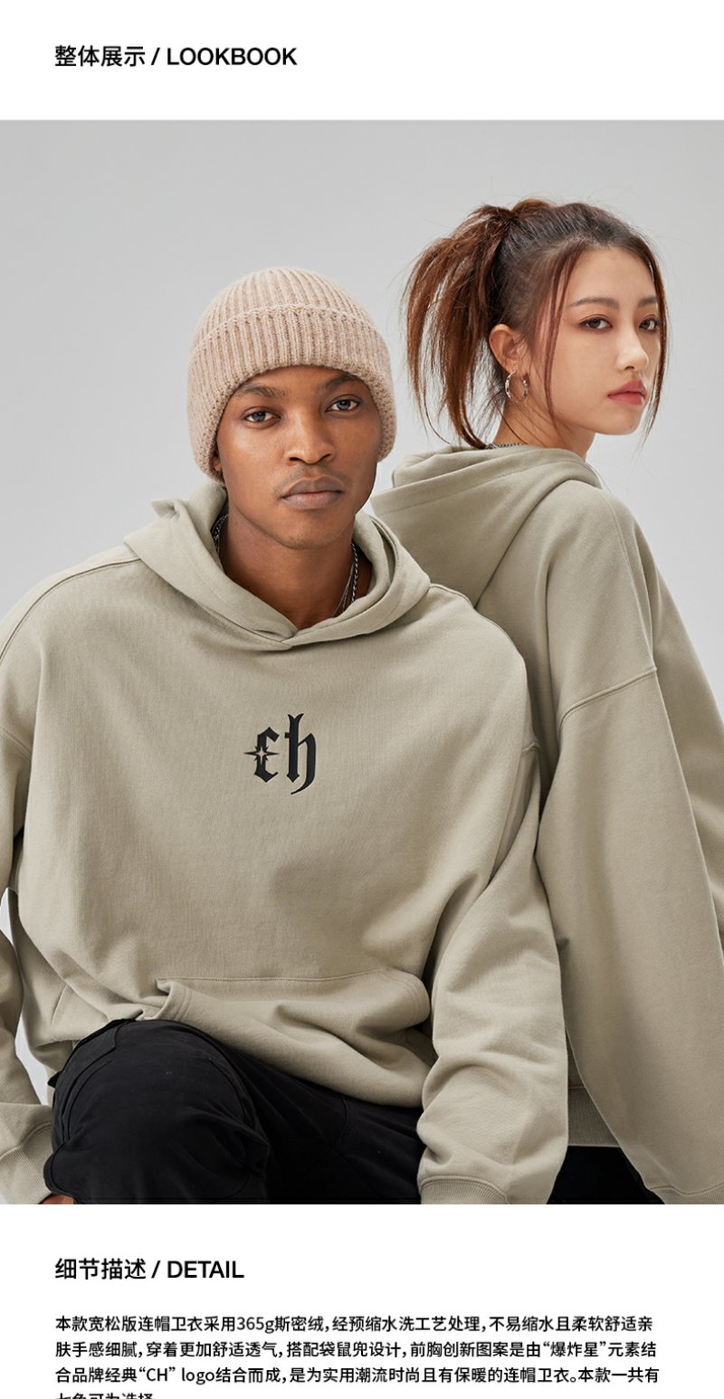 CHINISM CH字母印花连帽卫衣男秋冬美式潮牌高街水洗重磅帽衫
