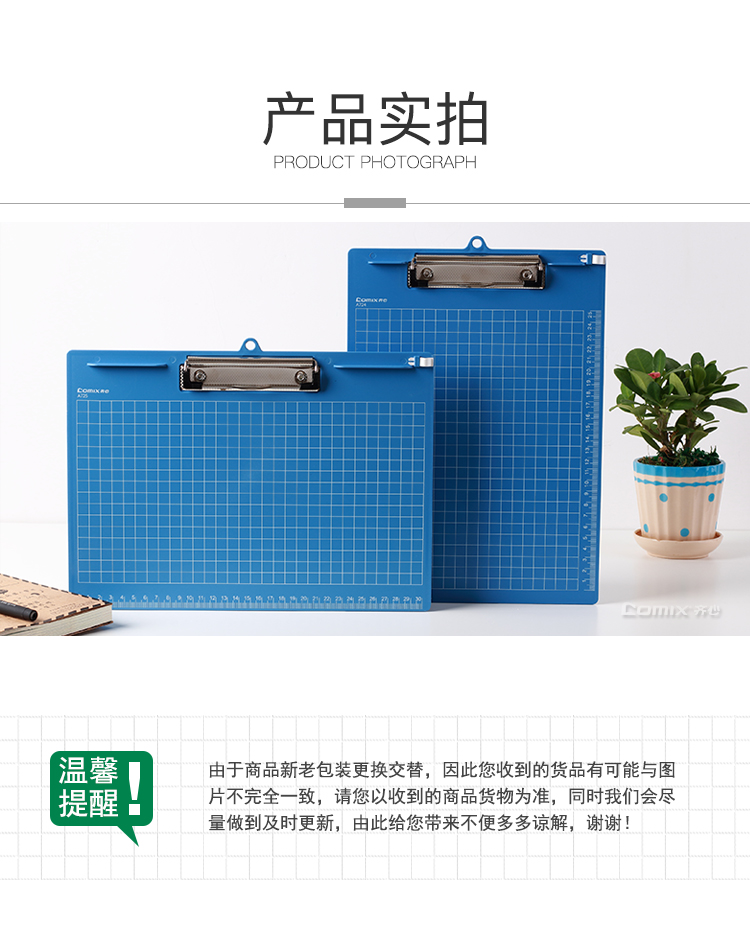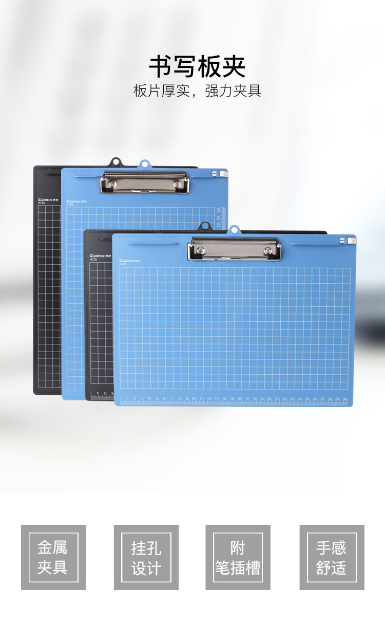 齐心A725 A4塑胶文件夹 平板夹 横式 蓝色 办公文具
