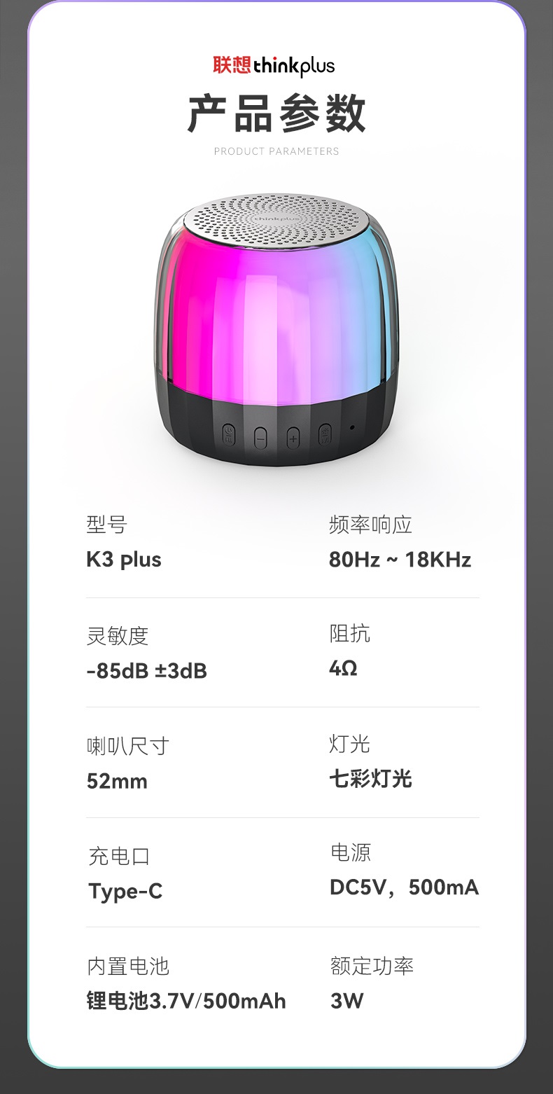 联想lenovo thinkplus BT version Speaker便携蓝牙音箱 K3plus