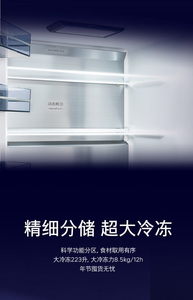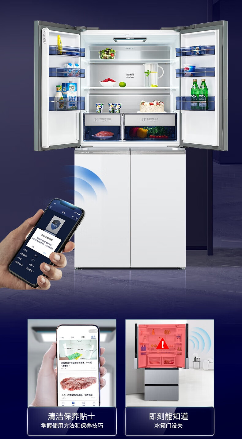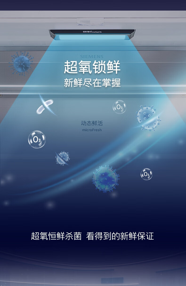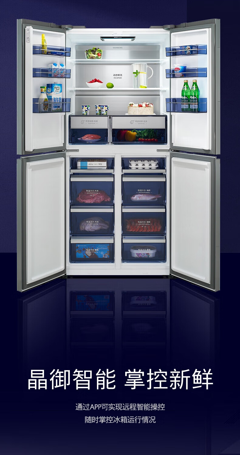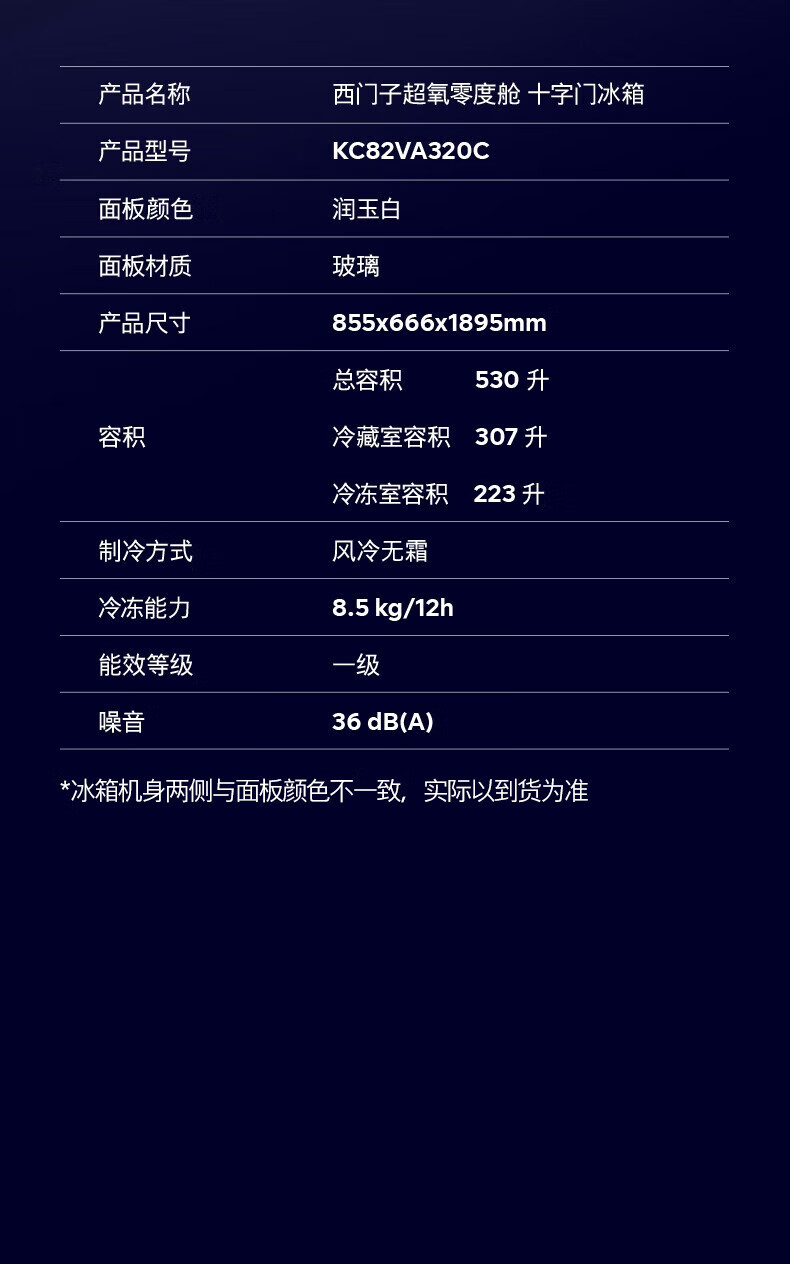 西门子(SIEMENS)530升十字对开门多门变频冰箱家用大容量玻璃面板 超氧恒鲜杀菌 零度保鲜 晶御智能 KC82VA320C
