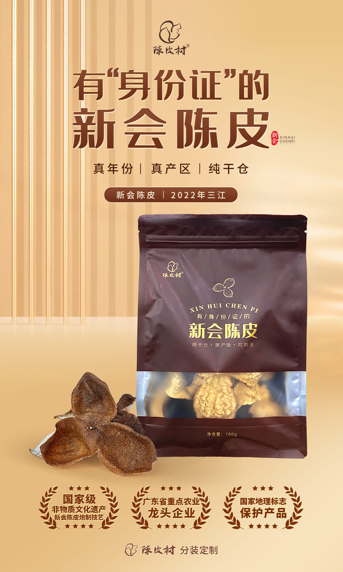 陈皮村2022年三江陈皮100g袋装泡茶煲汤自用款