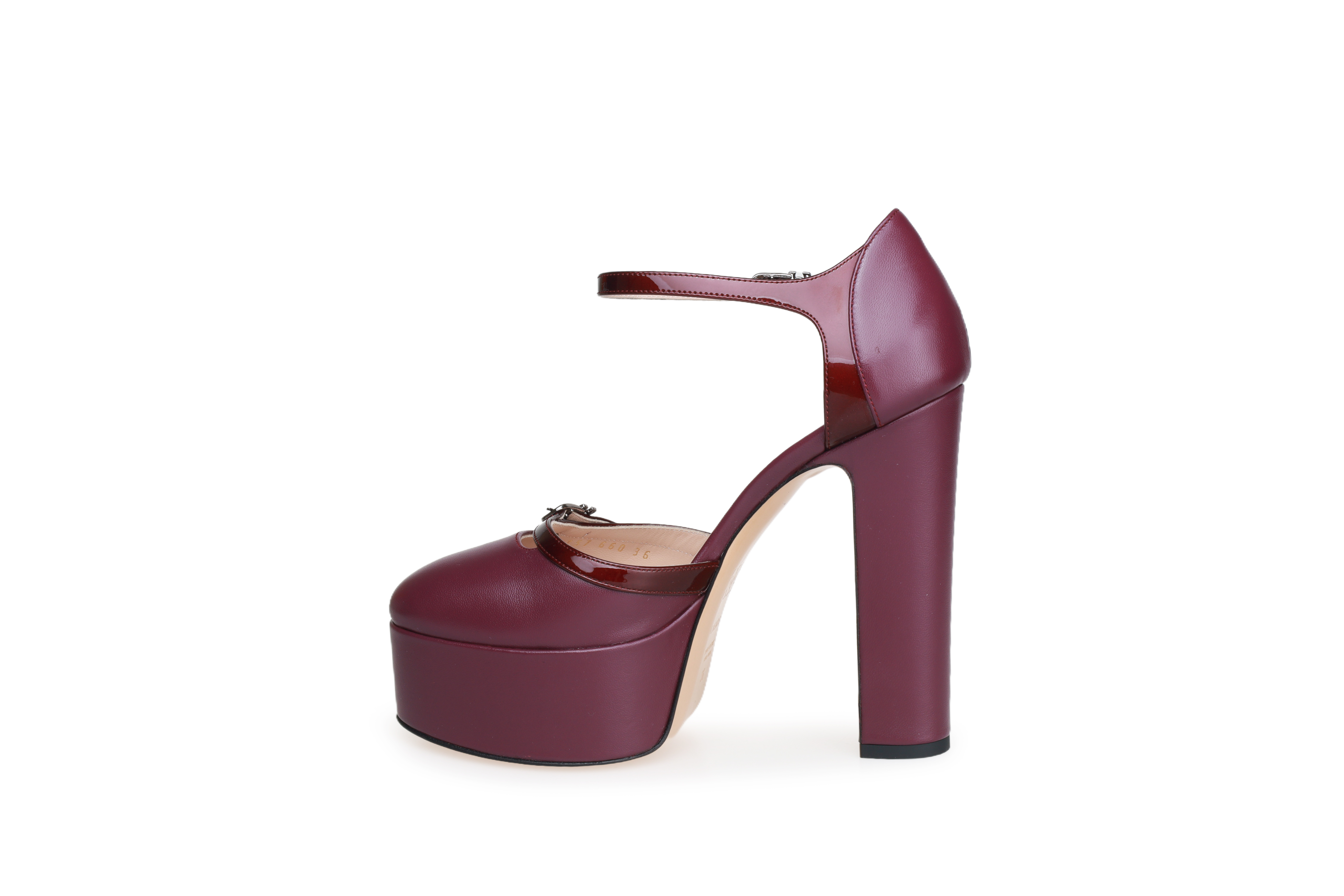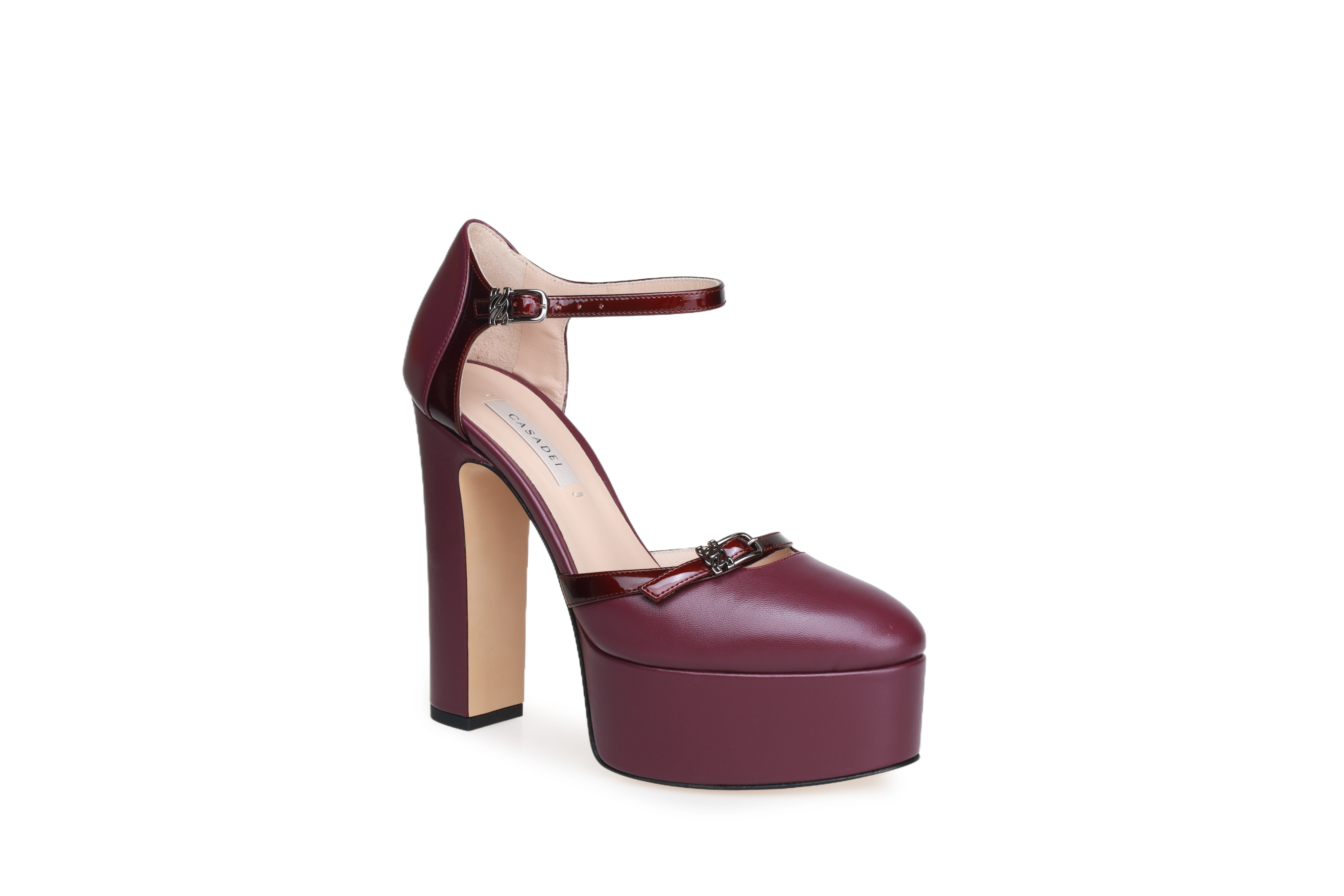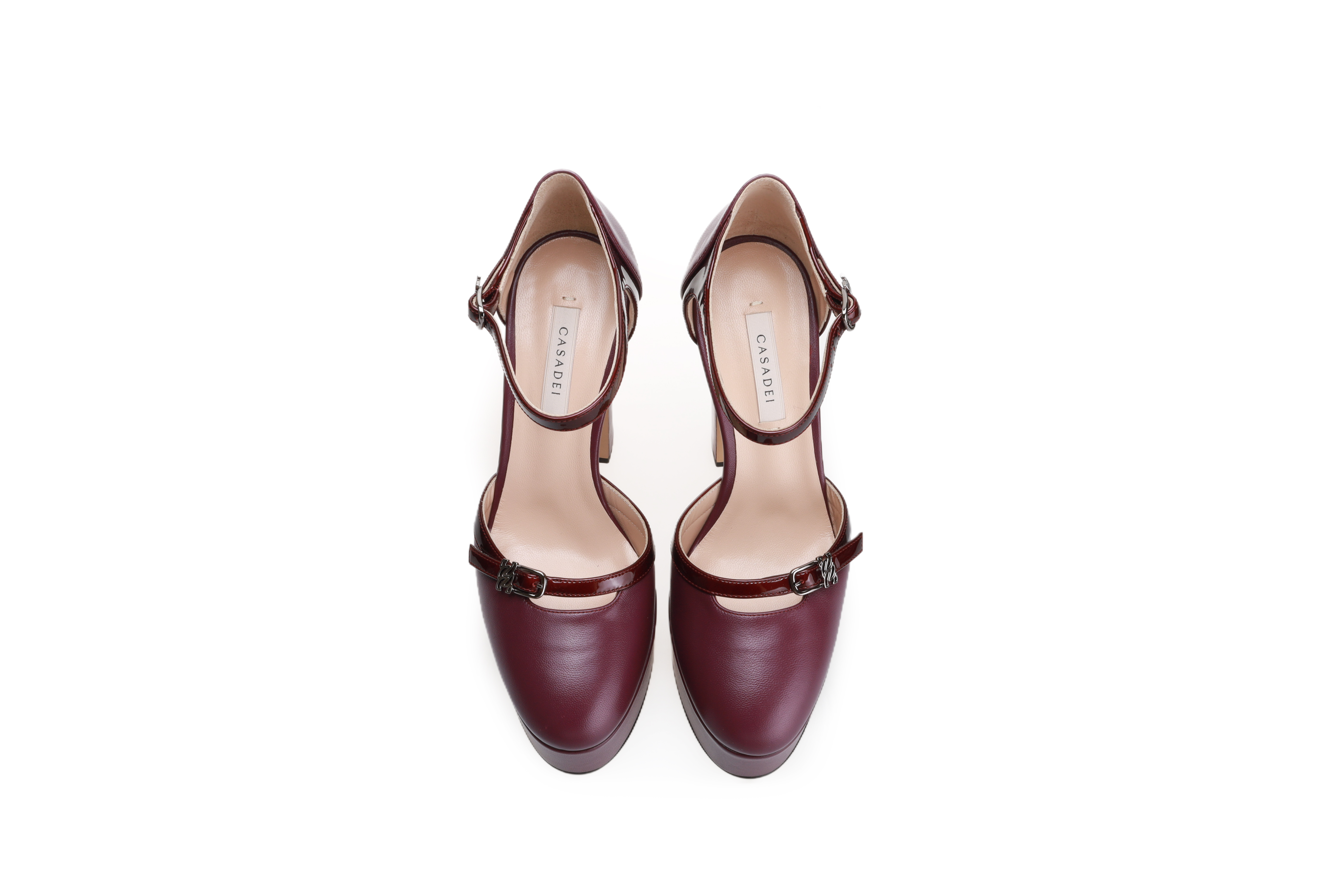 豪麟名鞋CASADEI女鞋皮鞋羊皮革1H046酒红色