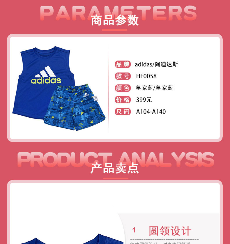 小阿迪小童2022男小童透气舒适短袖针织套服HE0058