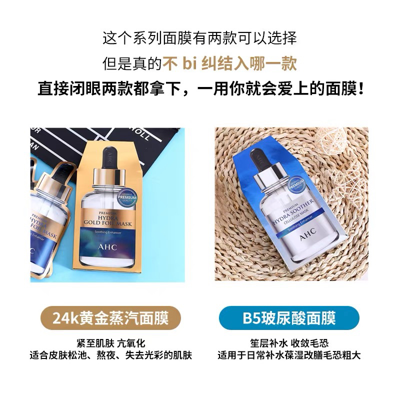 AHC面膜组合(5盒玻尿酸+5盒黄金蒸汽)
