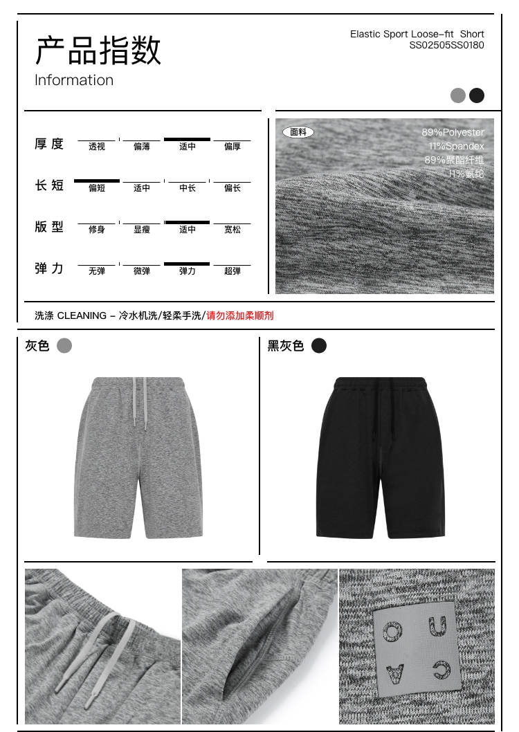 oneup弹力运动宽松短裤