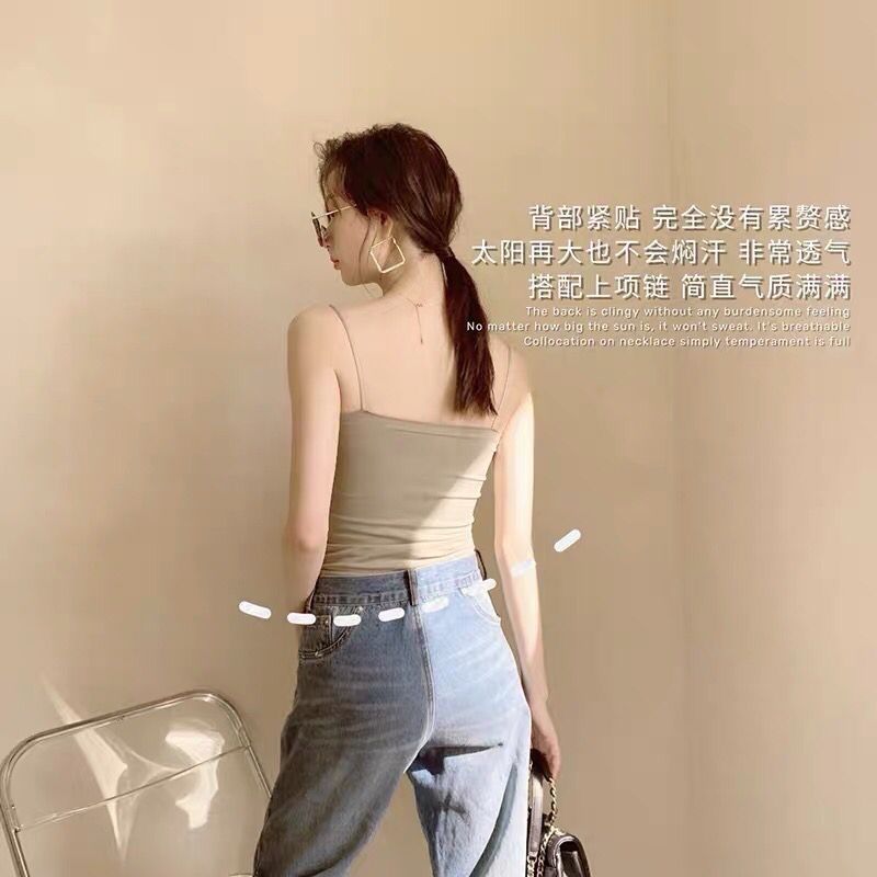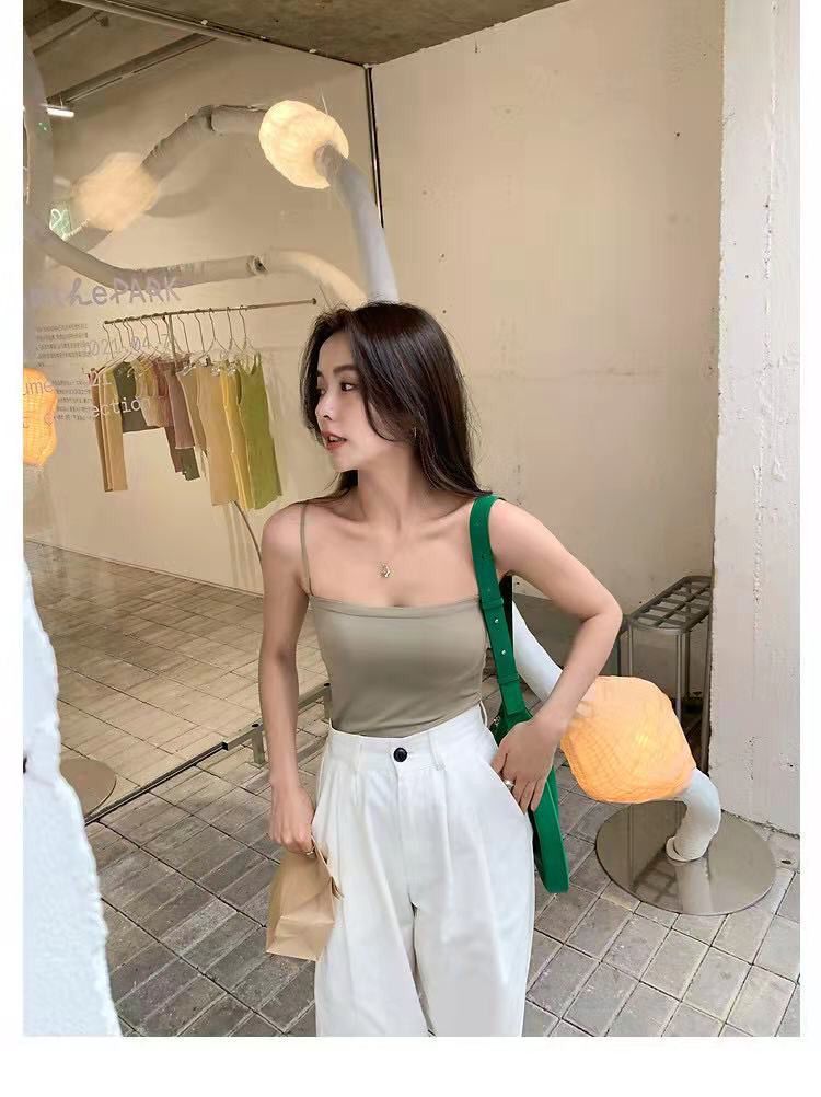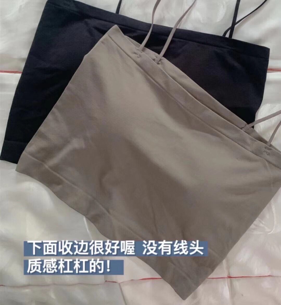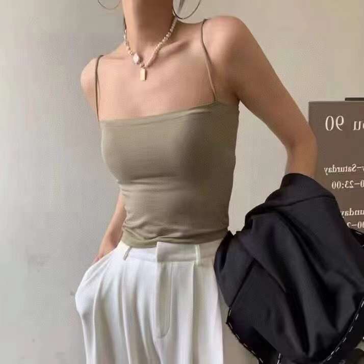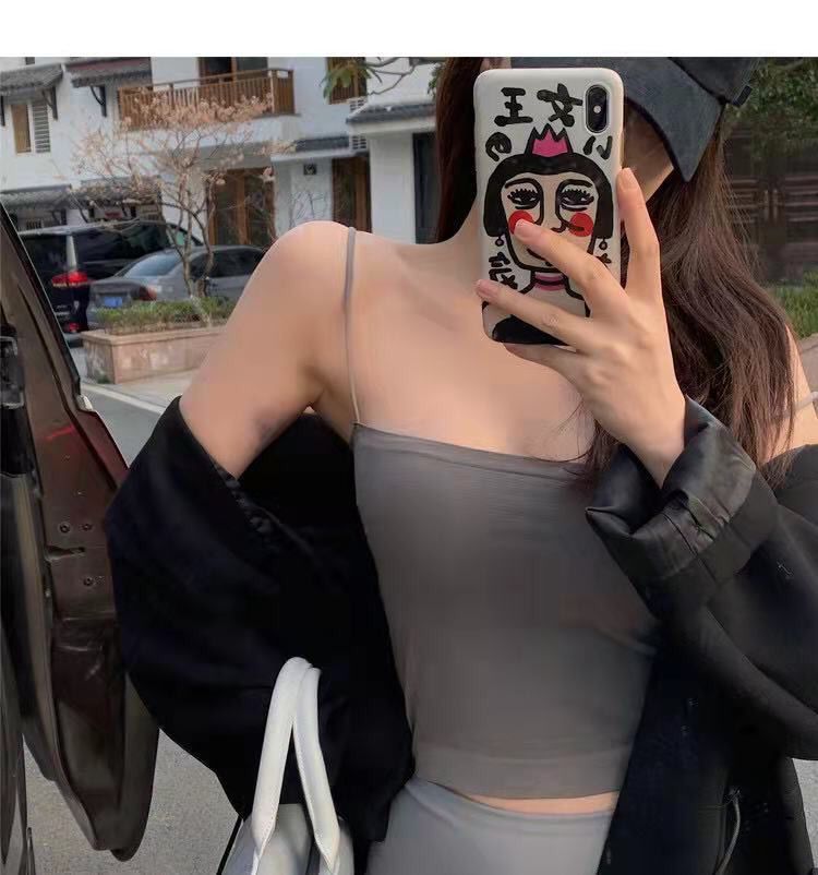 【第二件半价】无痕纯色带胸垫吊带背心均码(长款/短款)(白色/灰色/黑色/咖啡色/卡其色)(非质量问题不退不换)