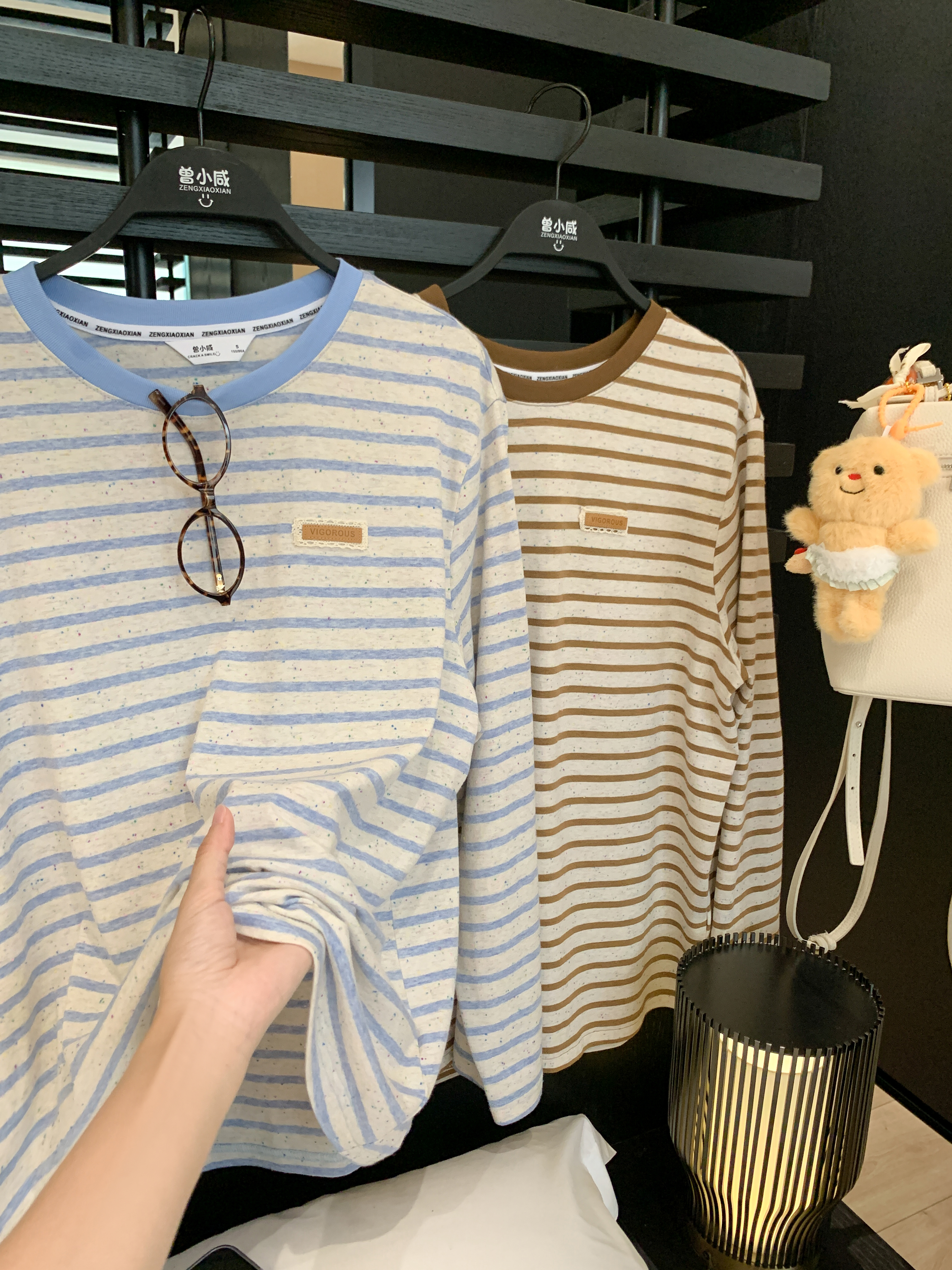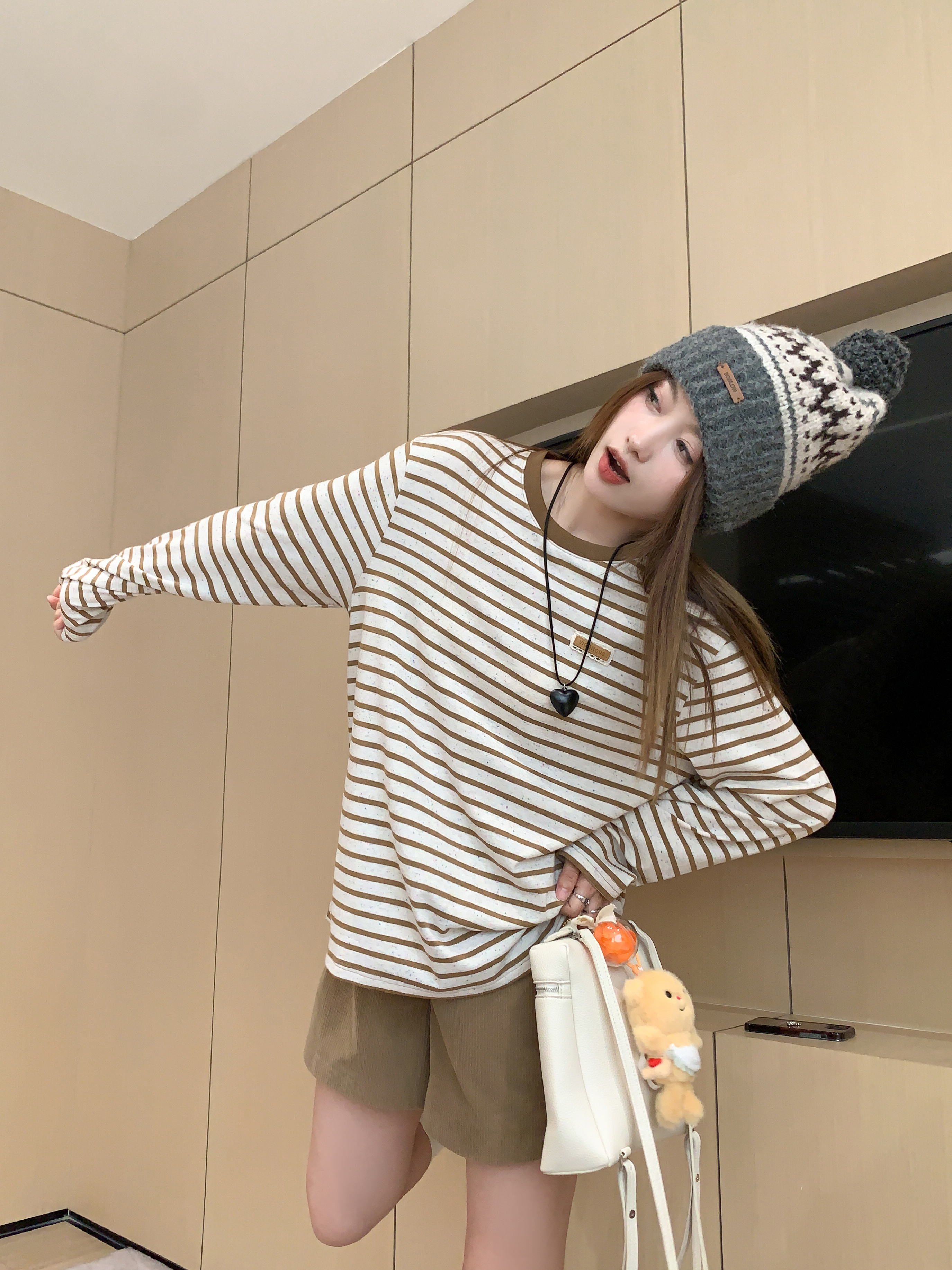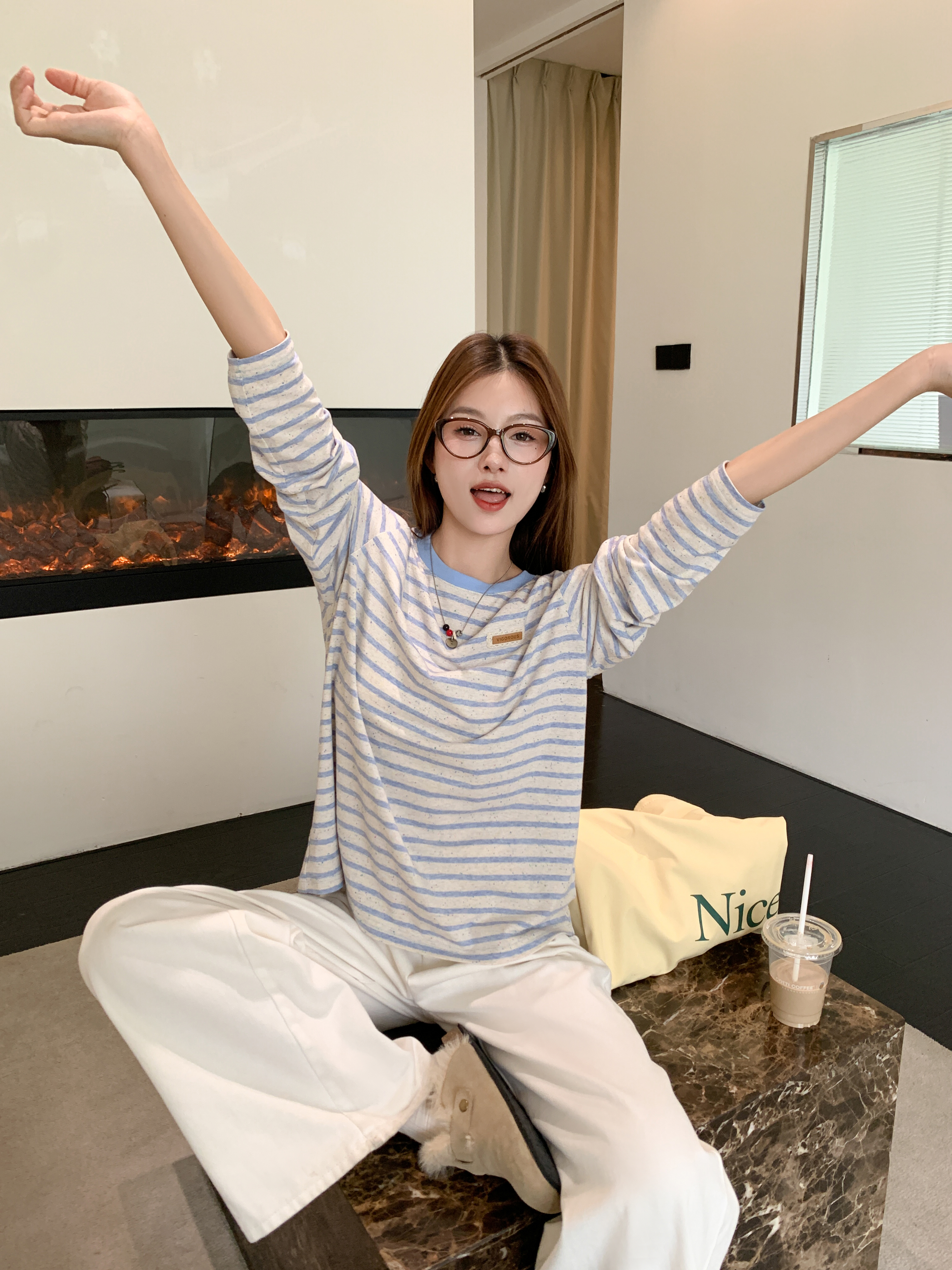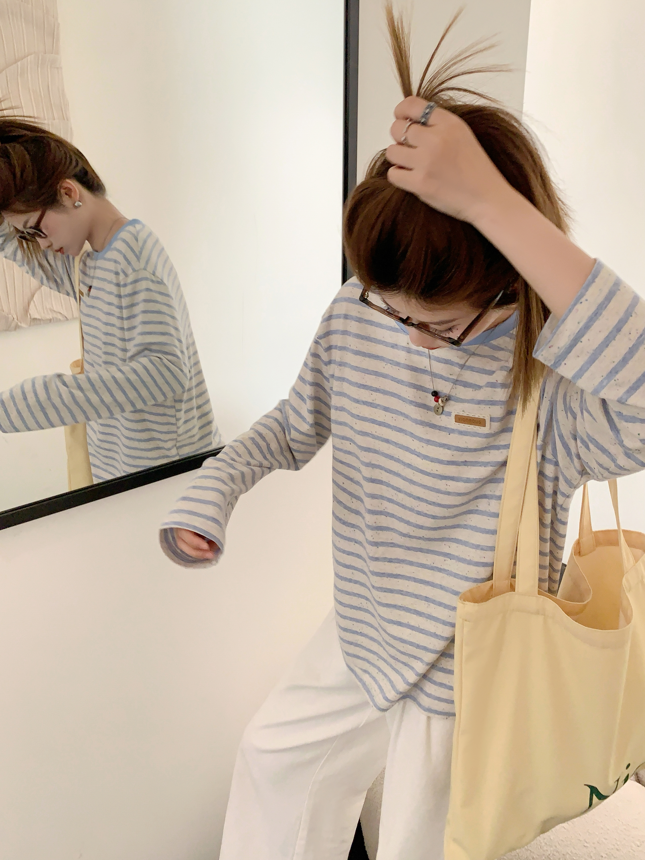 <曾小咸推荐>韩版百搭长袖圆领条纹T恤女秋冬气质温柔宽松显瘦内搭上衣