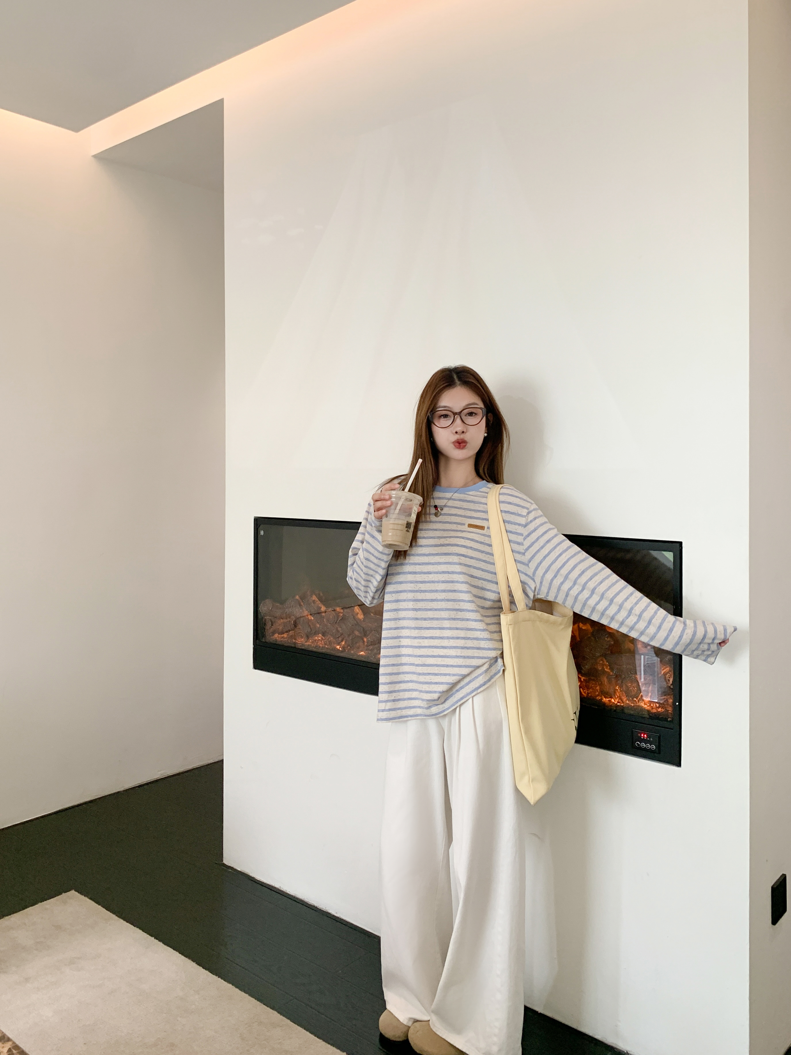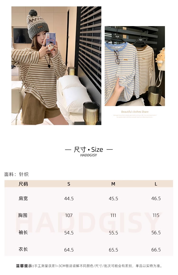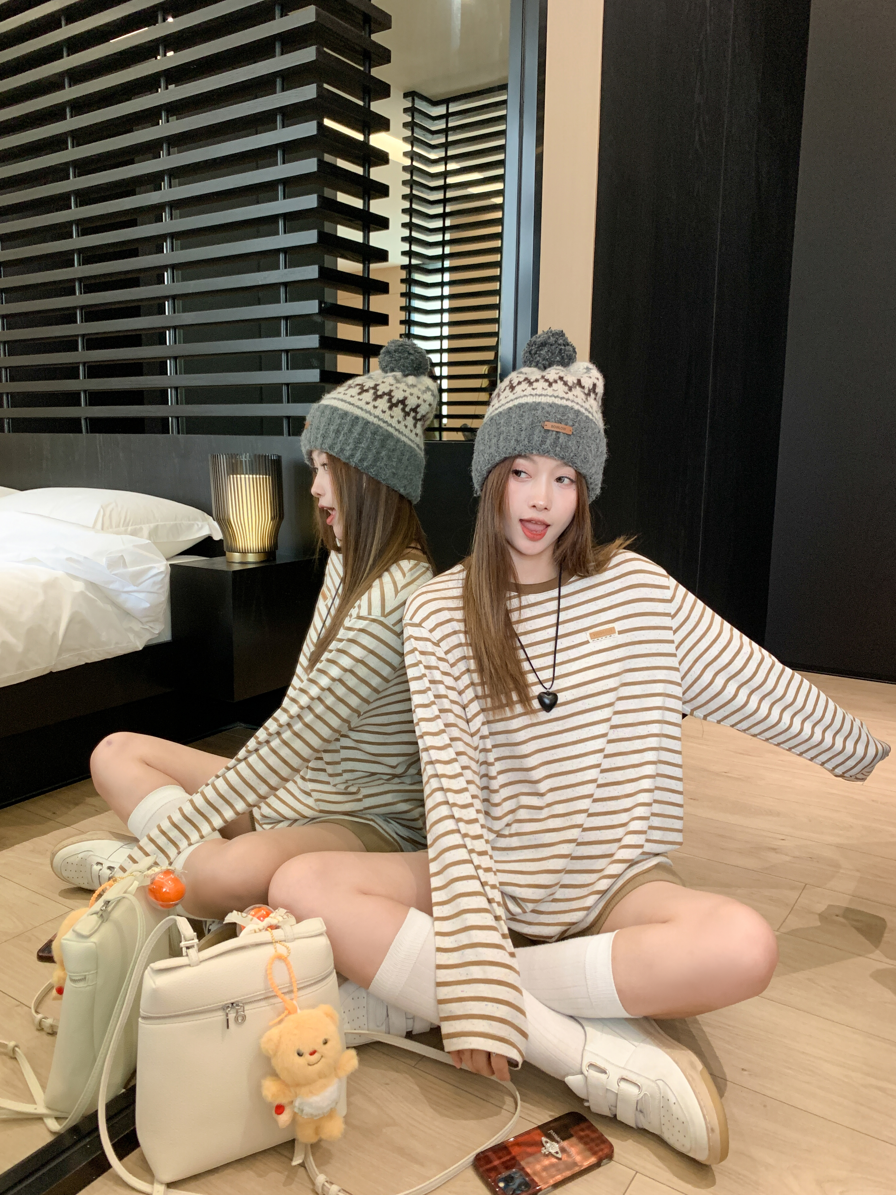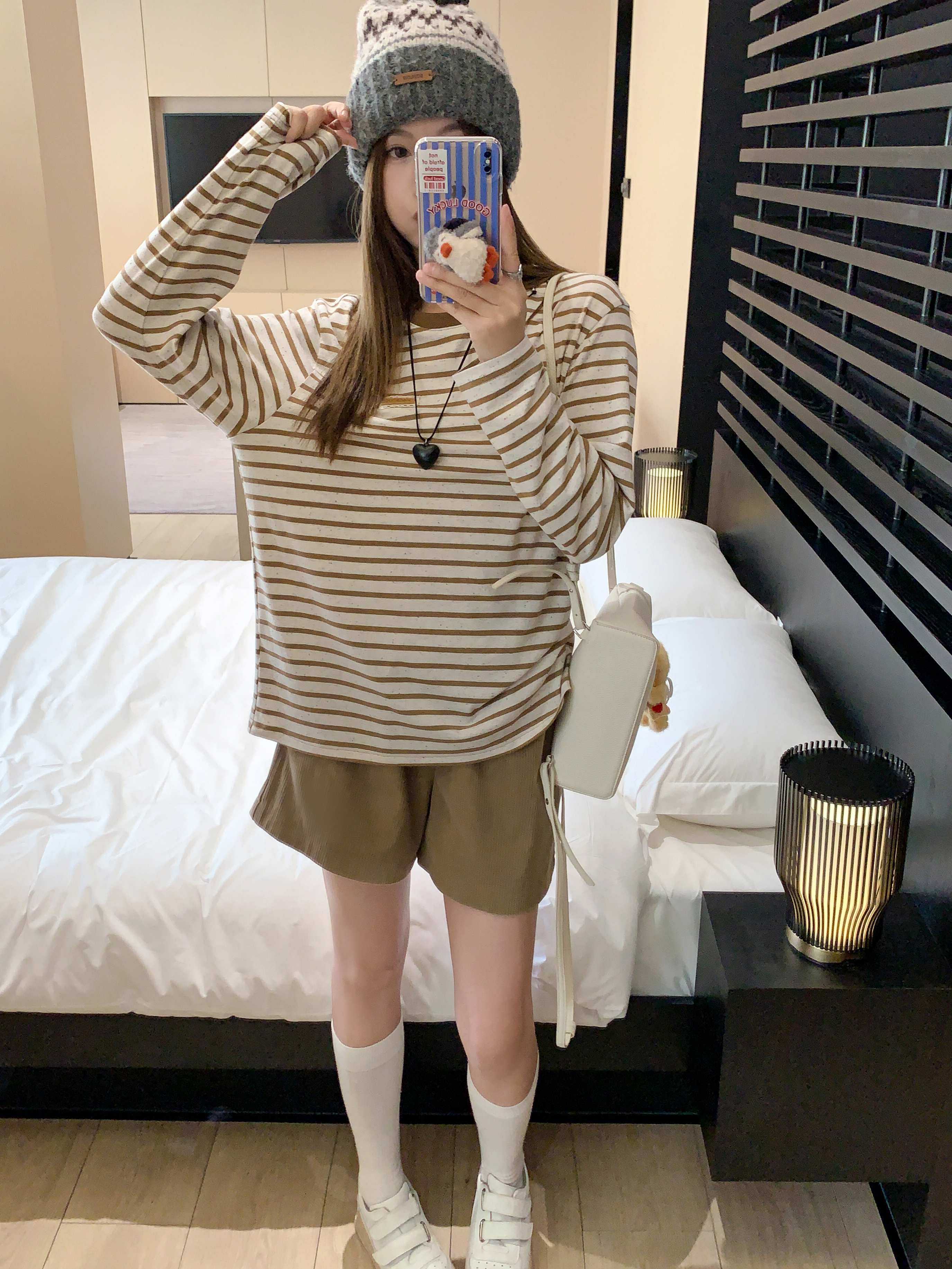 <曾小咸推荐>韩版百搭长袖圆领条纹T恤女秋冬气质温柔宽松显瘦内搭上衣