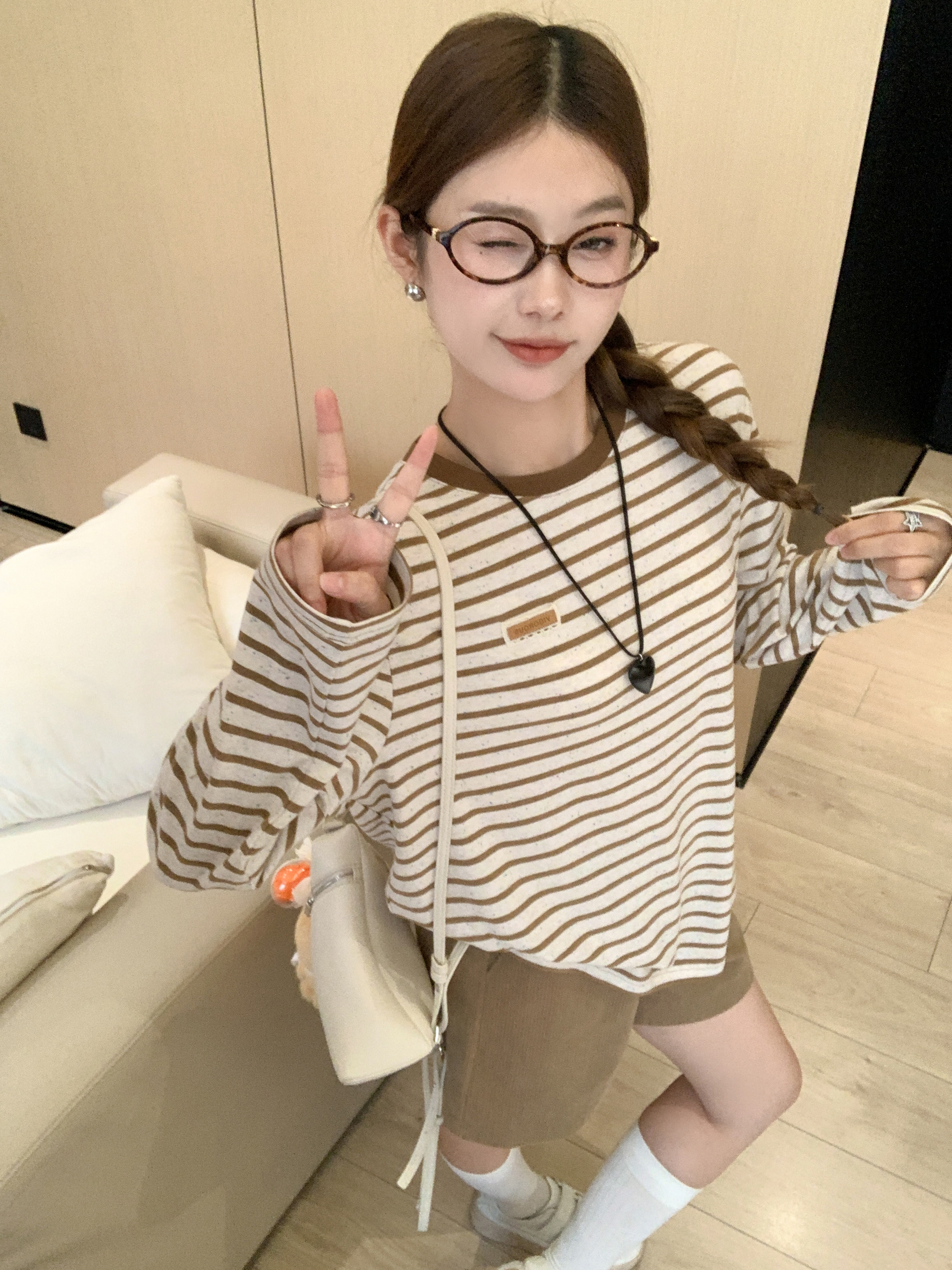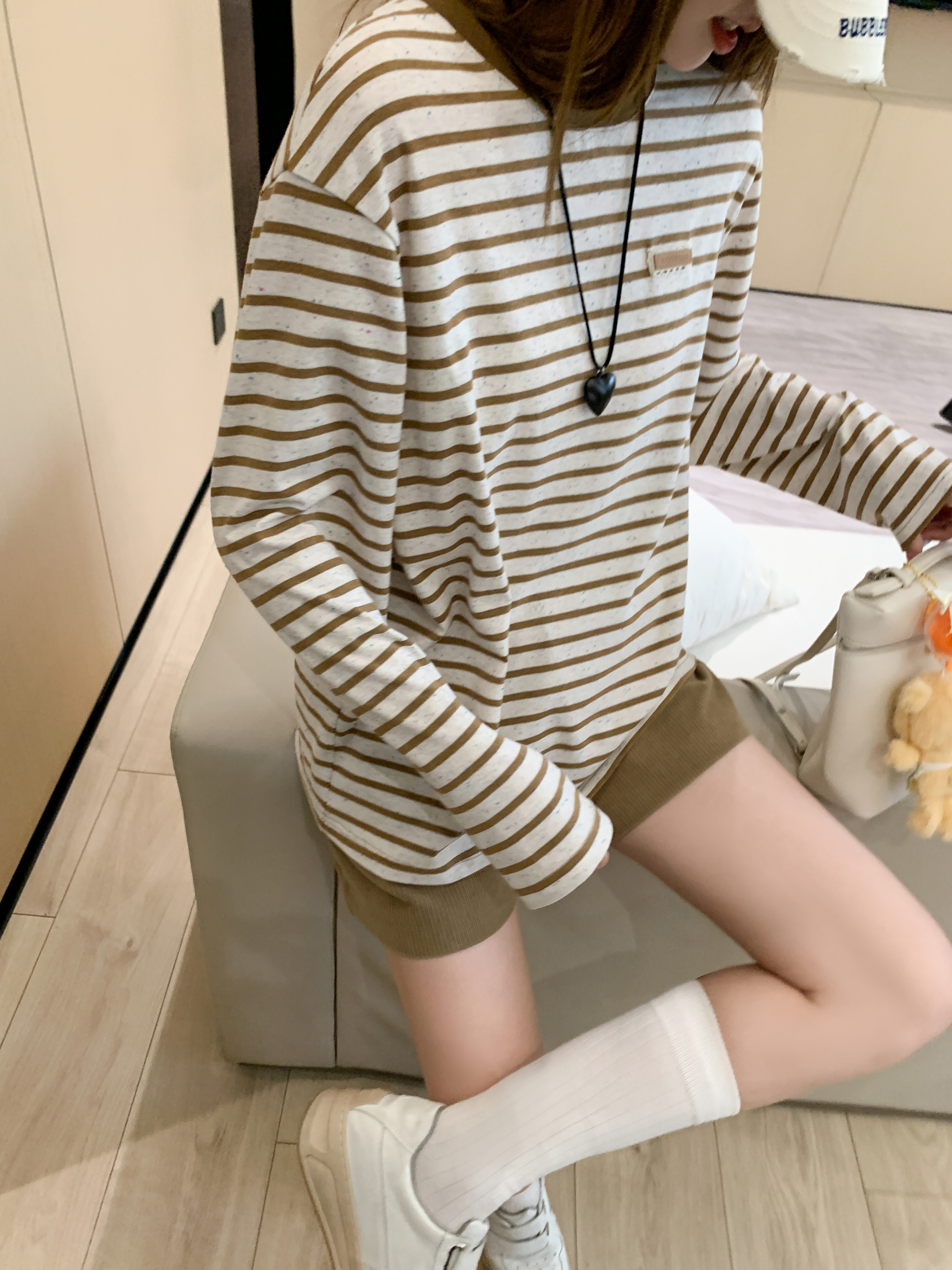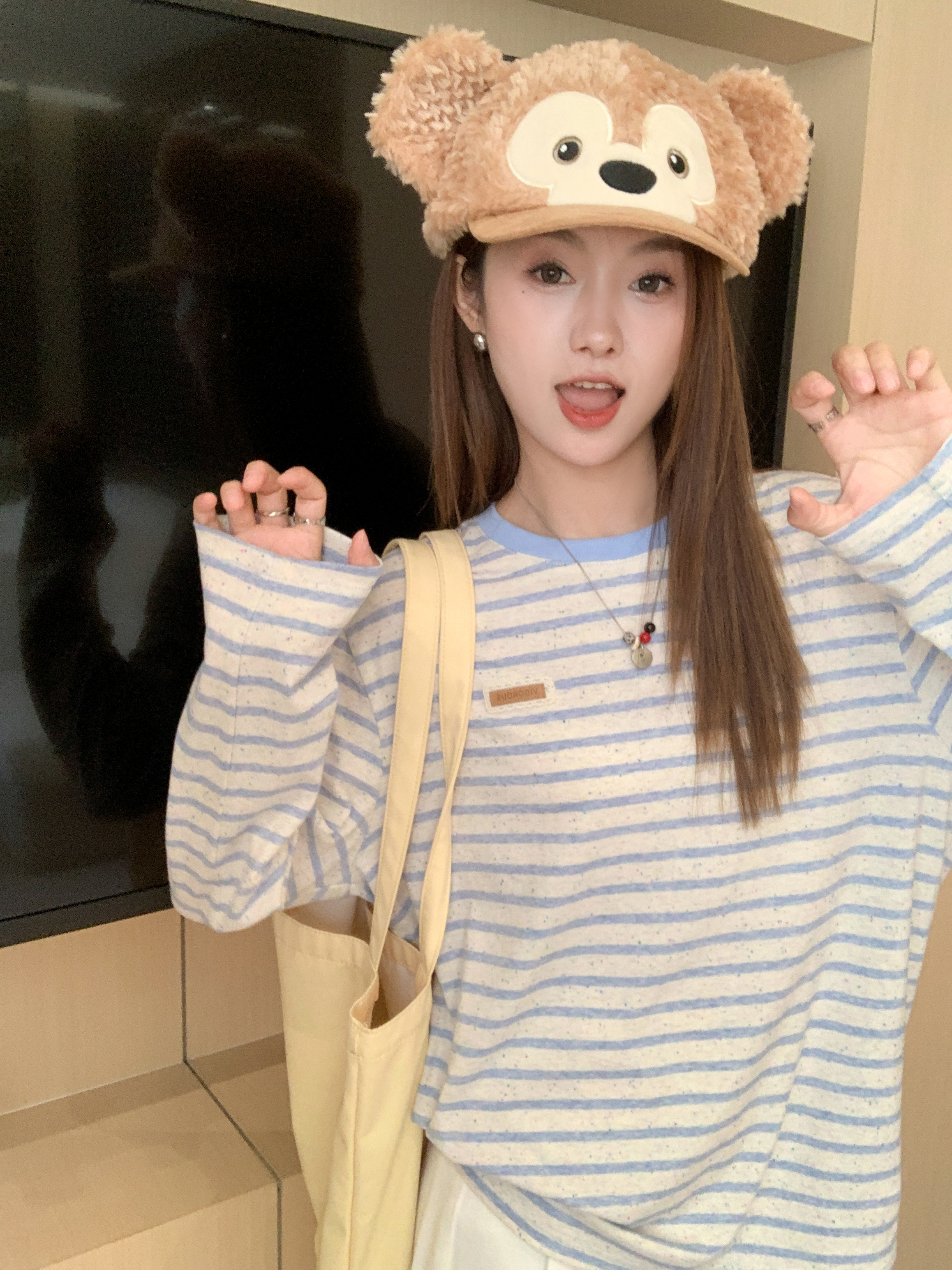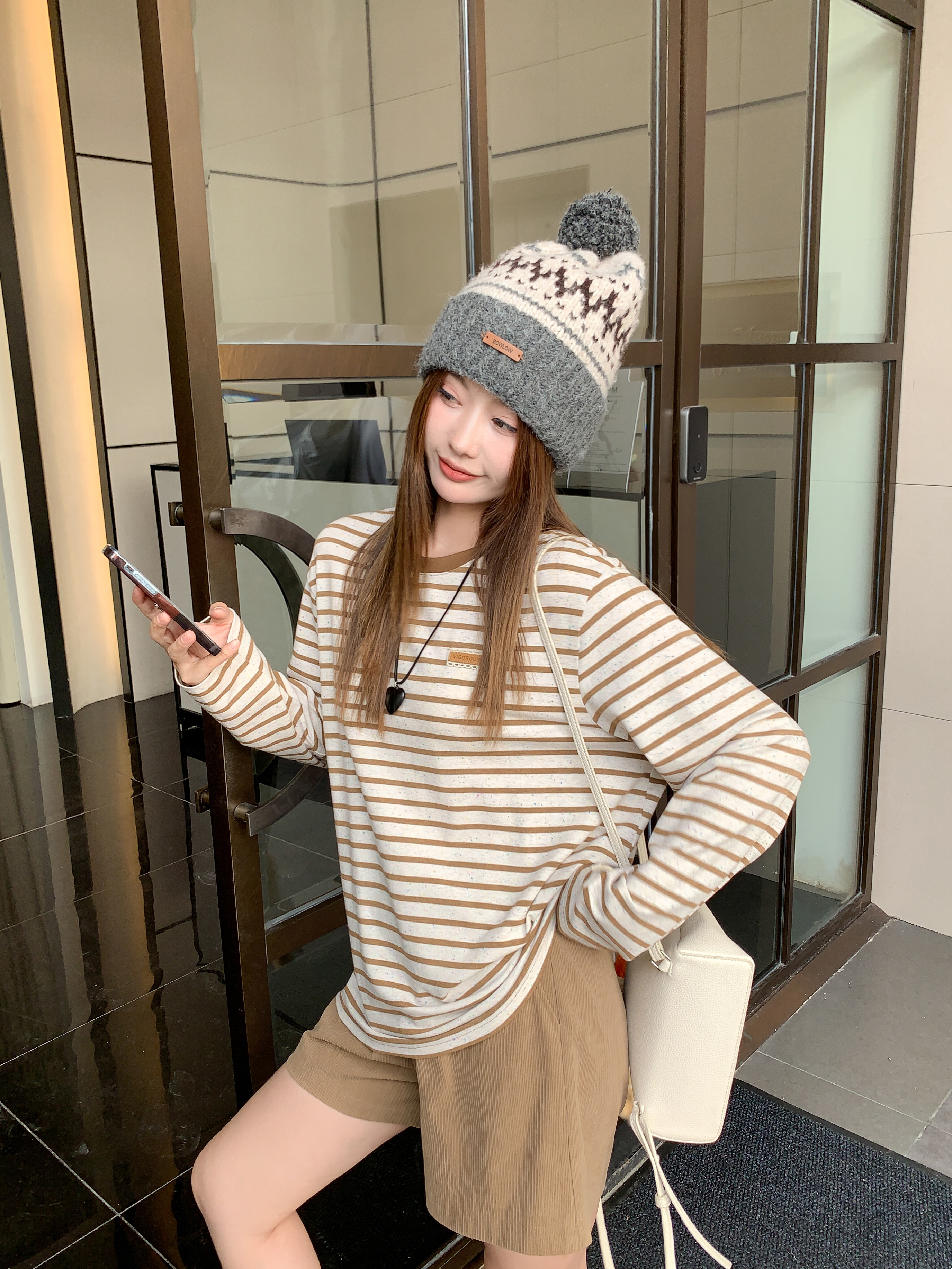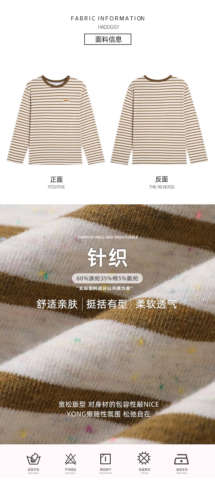 <曾小咸推荐>韩版百搭长袖圆领条纹T恤女秋冬气质温柔宽松显瘦内搭上衣