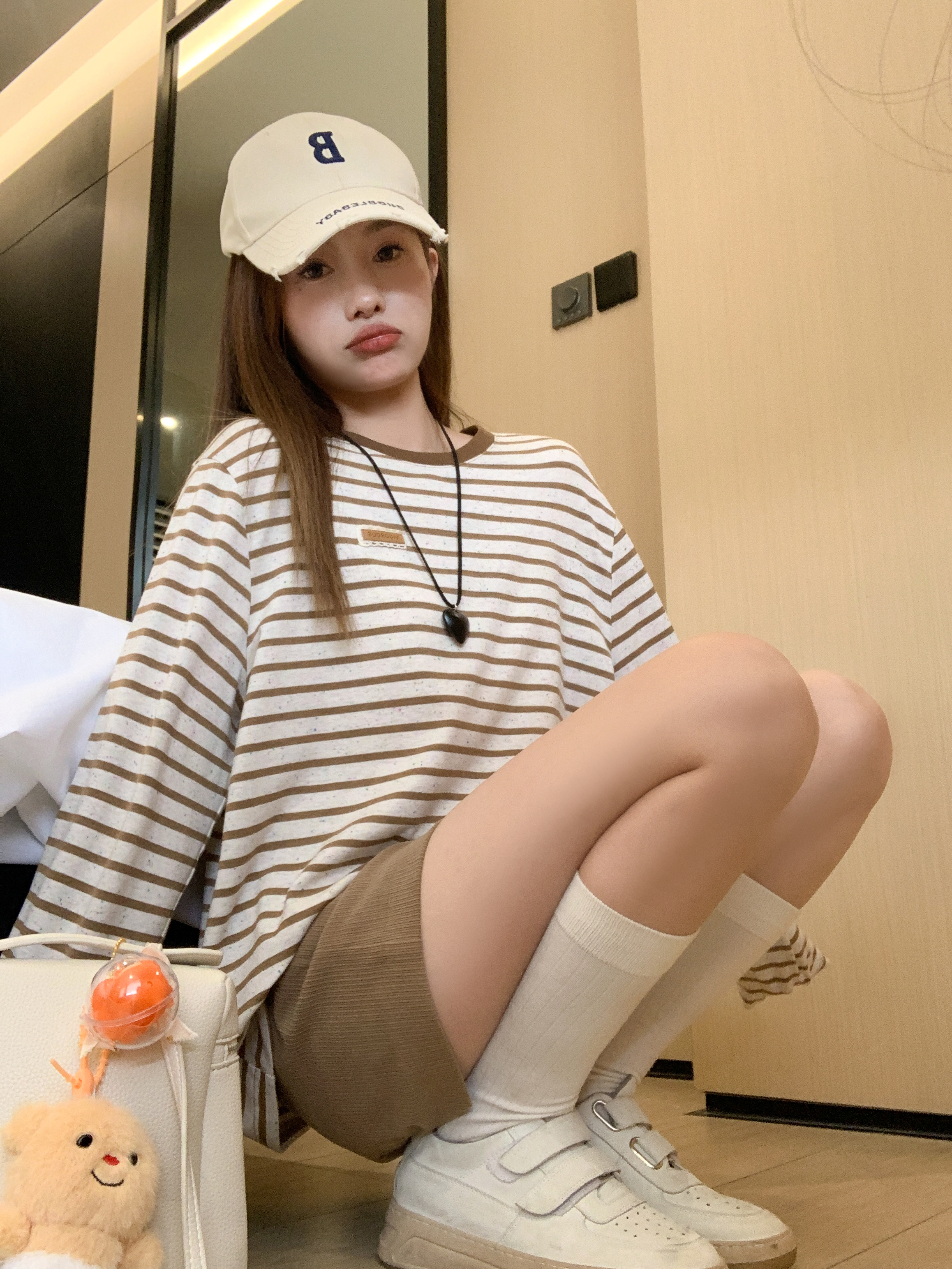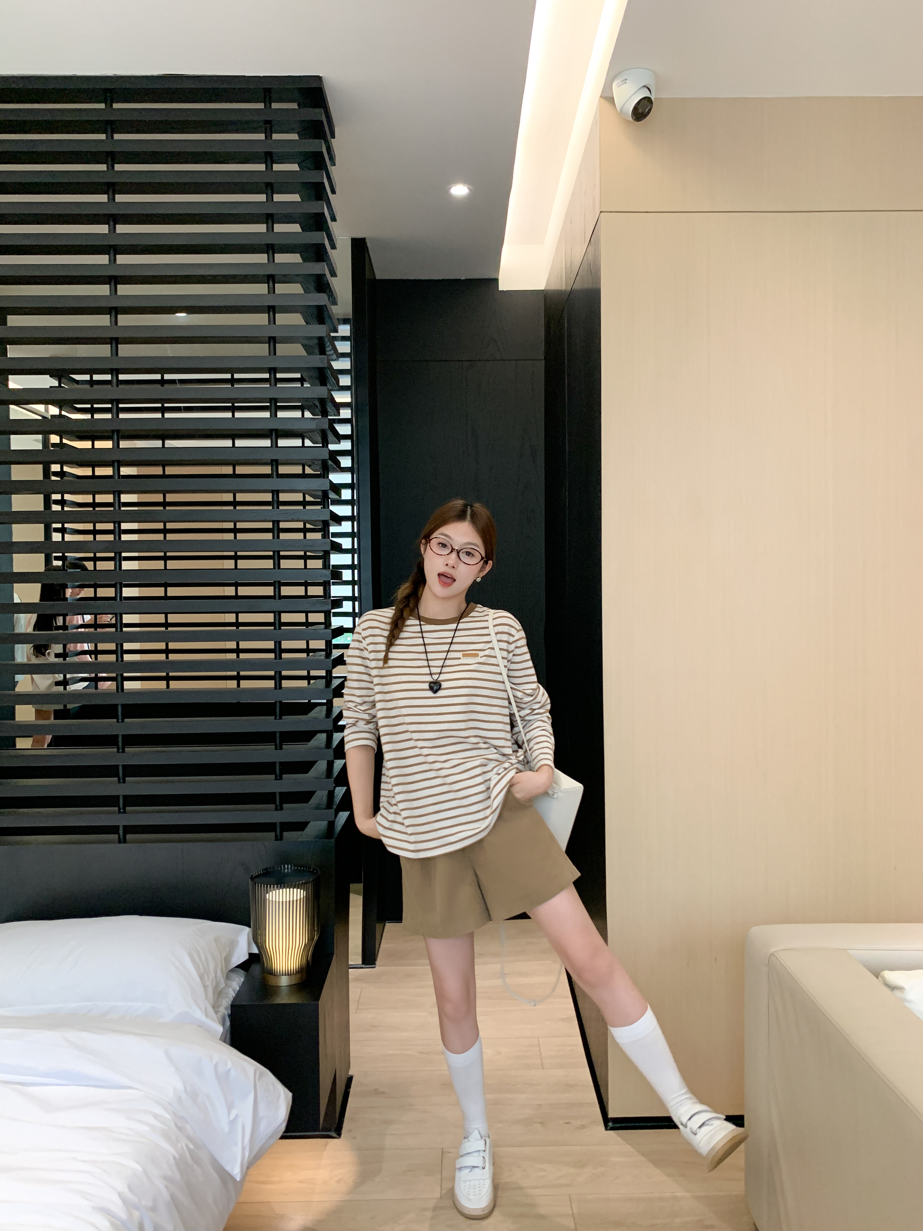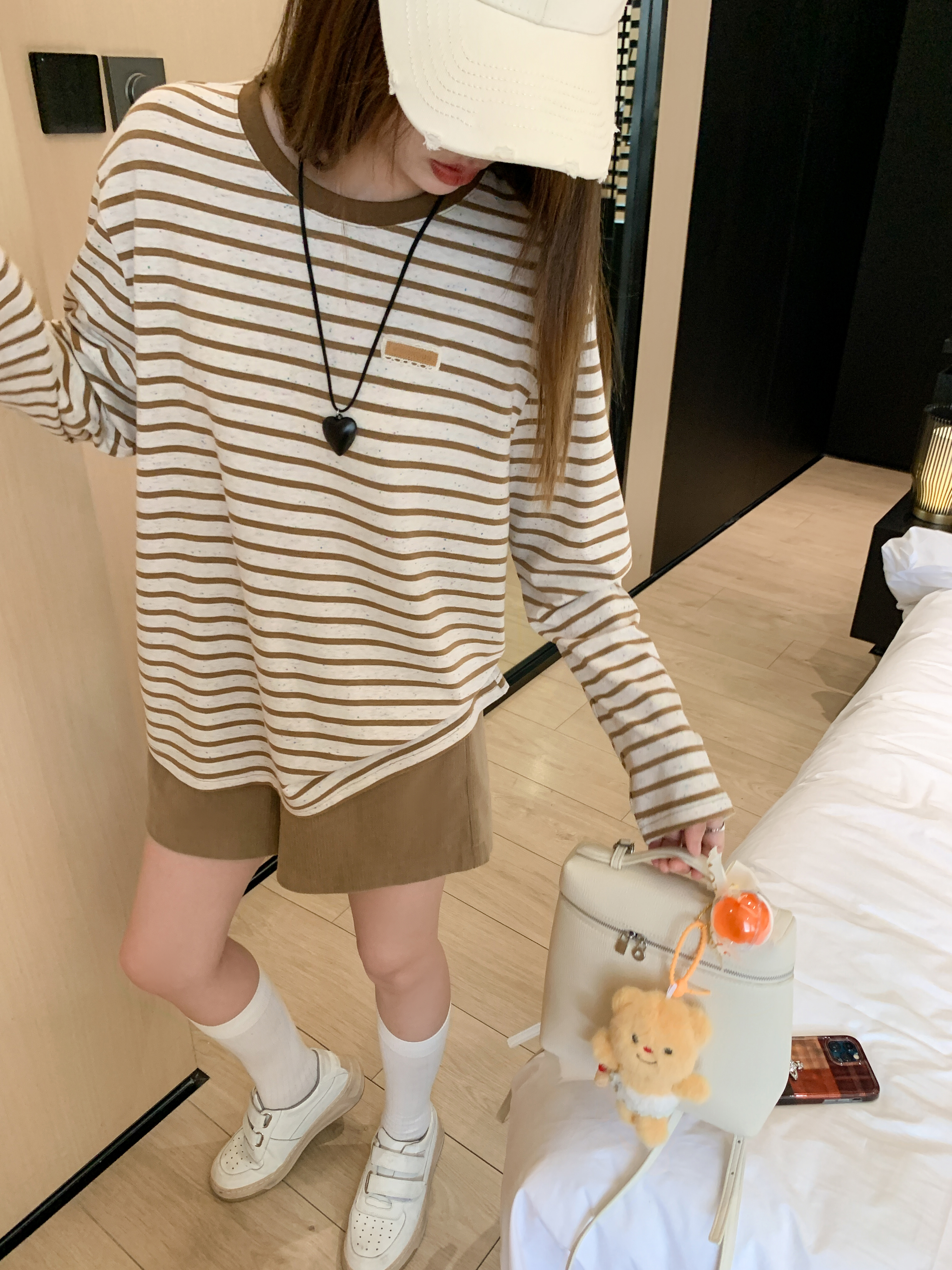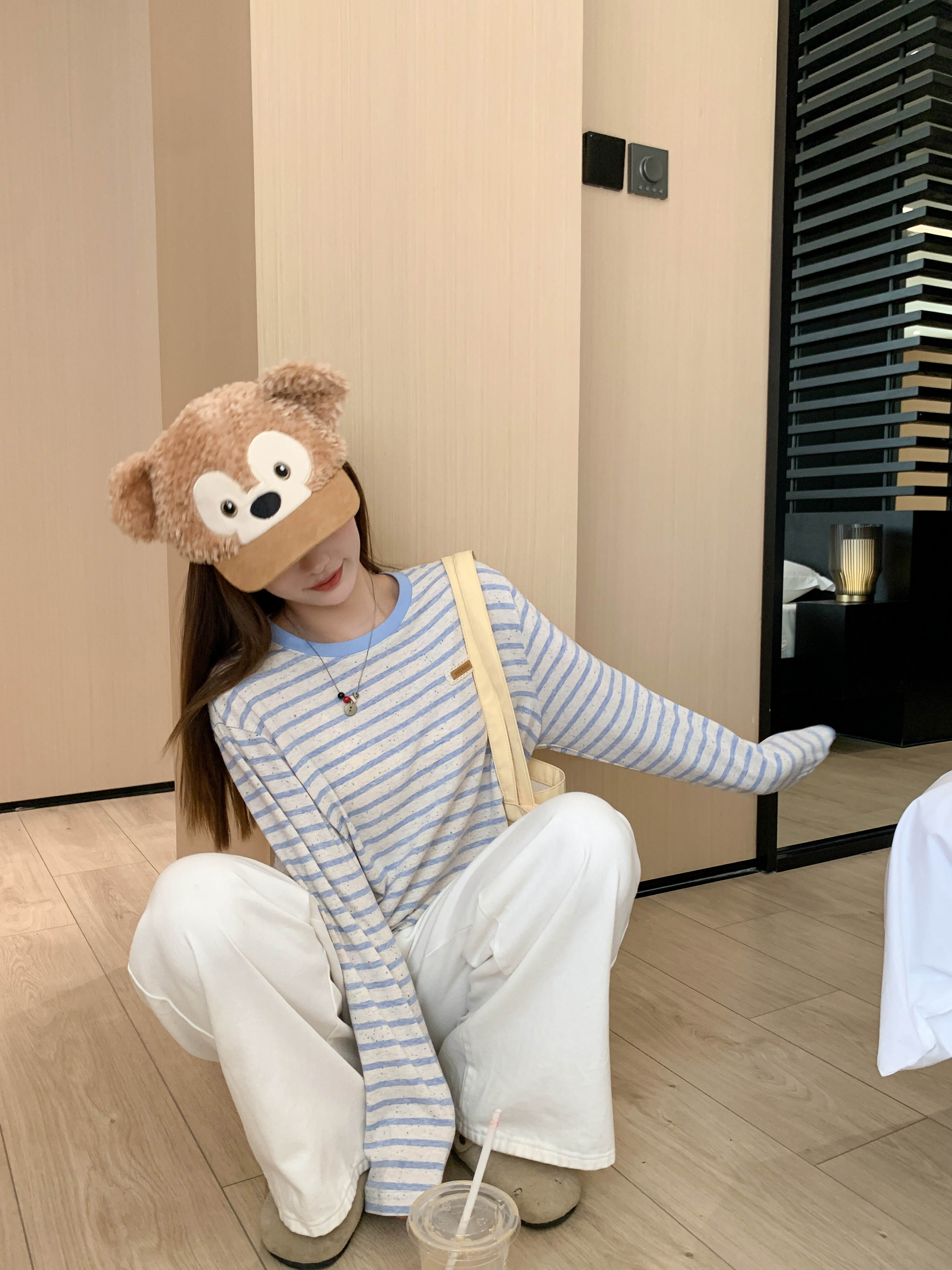 <曾小咸推荐>韩版百搭长袖圆领条纹T恤女秋冬气质温柔宽松显瘦内搭上衣