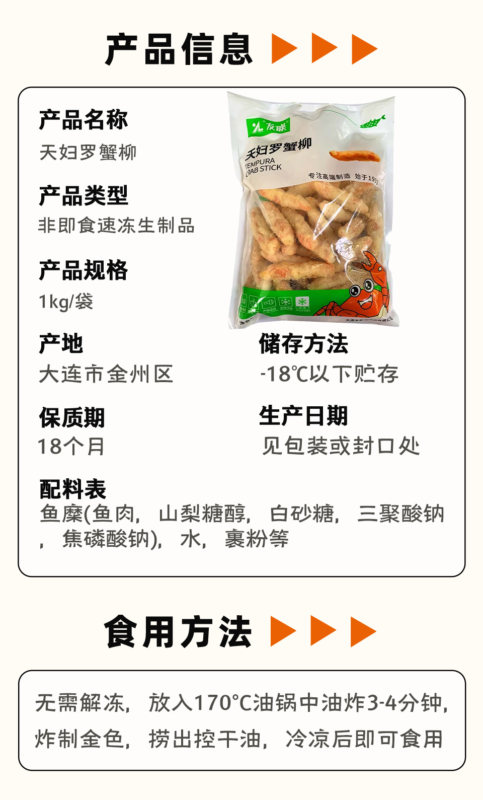 友联天妇罗蟹柳 1kg/袋 10袋/件