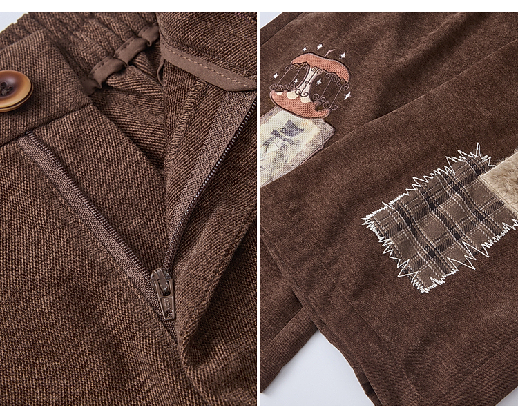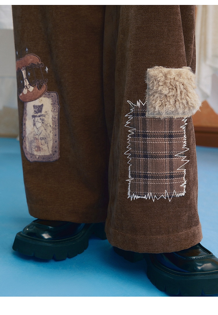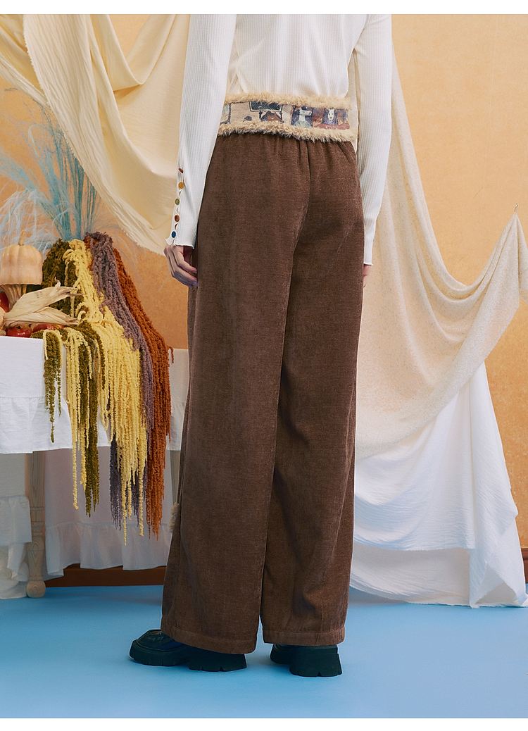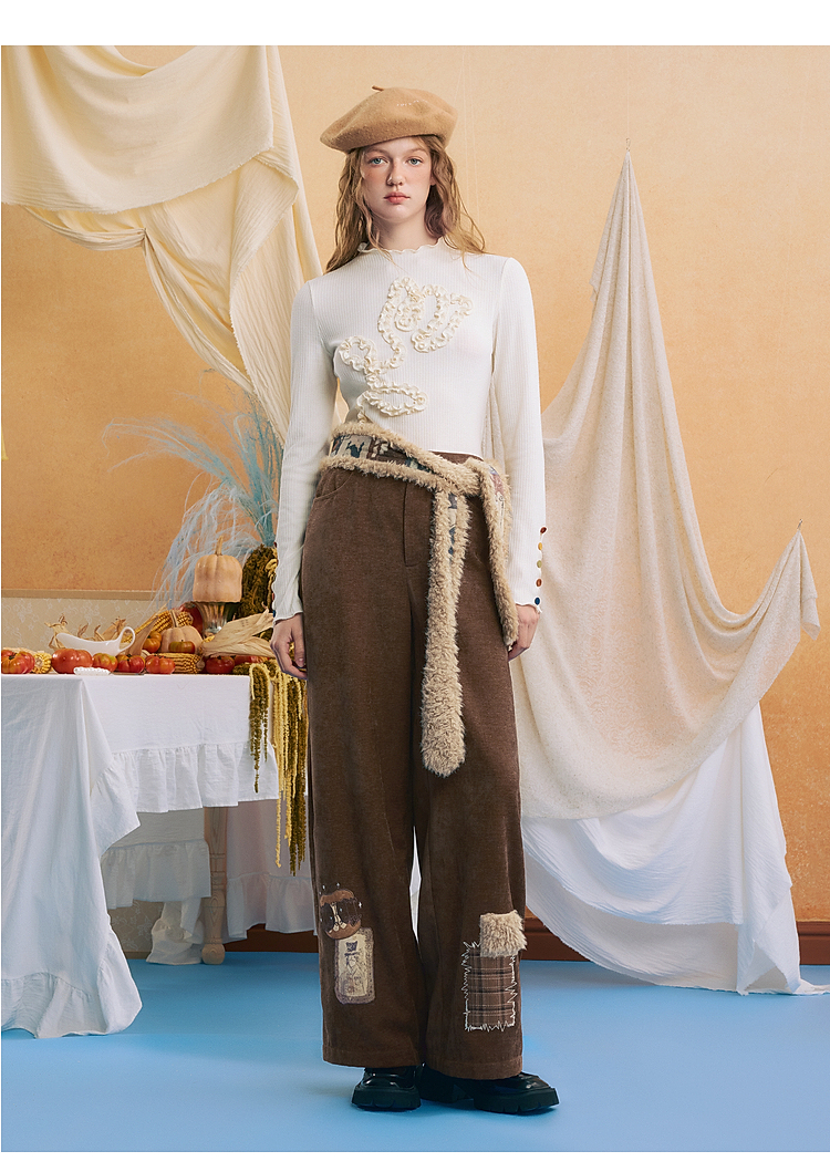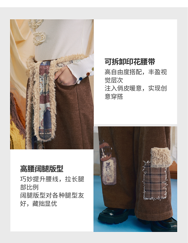 两三事可可漫旅2025冬季新款贴布刺绣毛绒腰带雪尼尔阔腿休闲裤女
