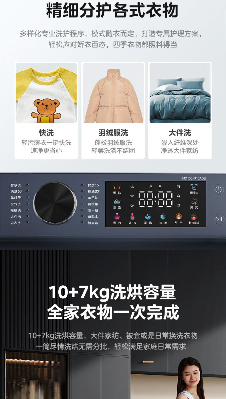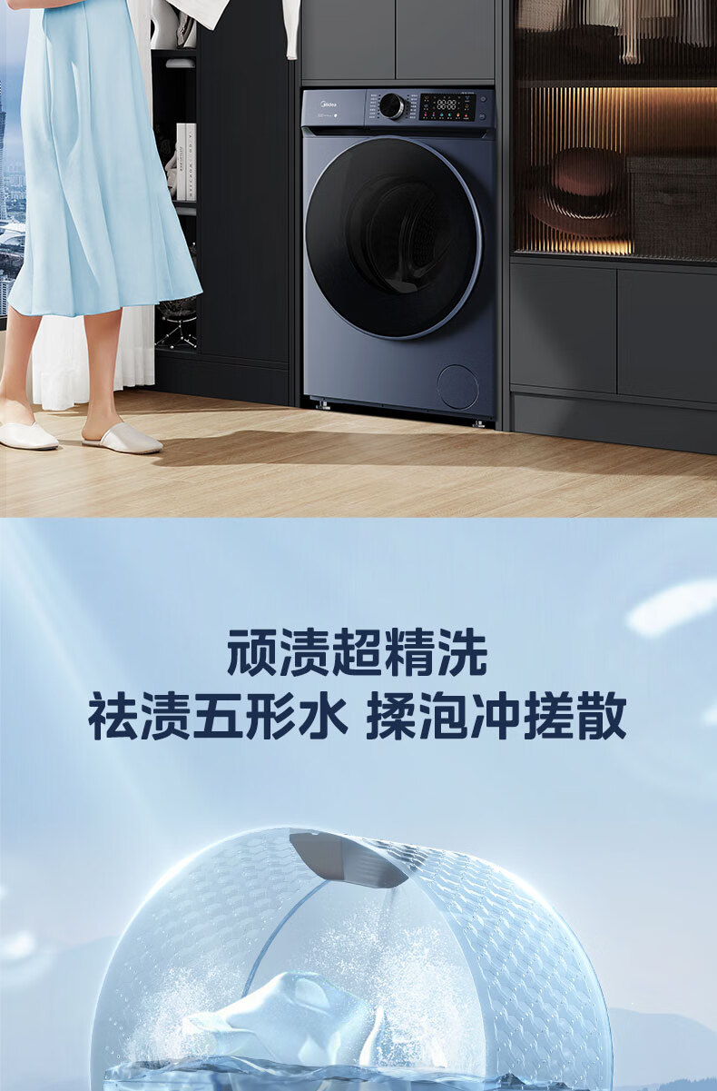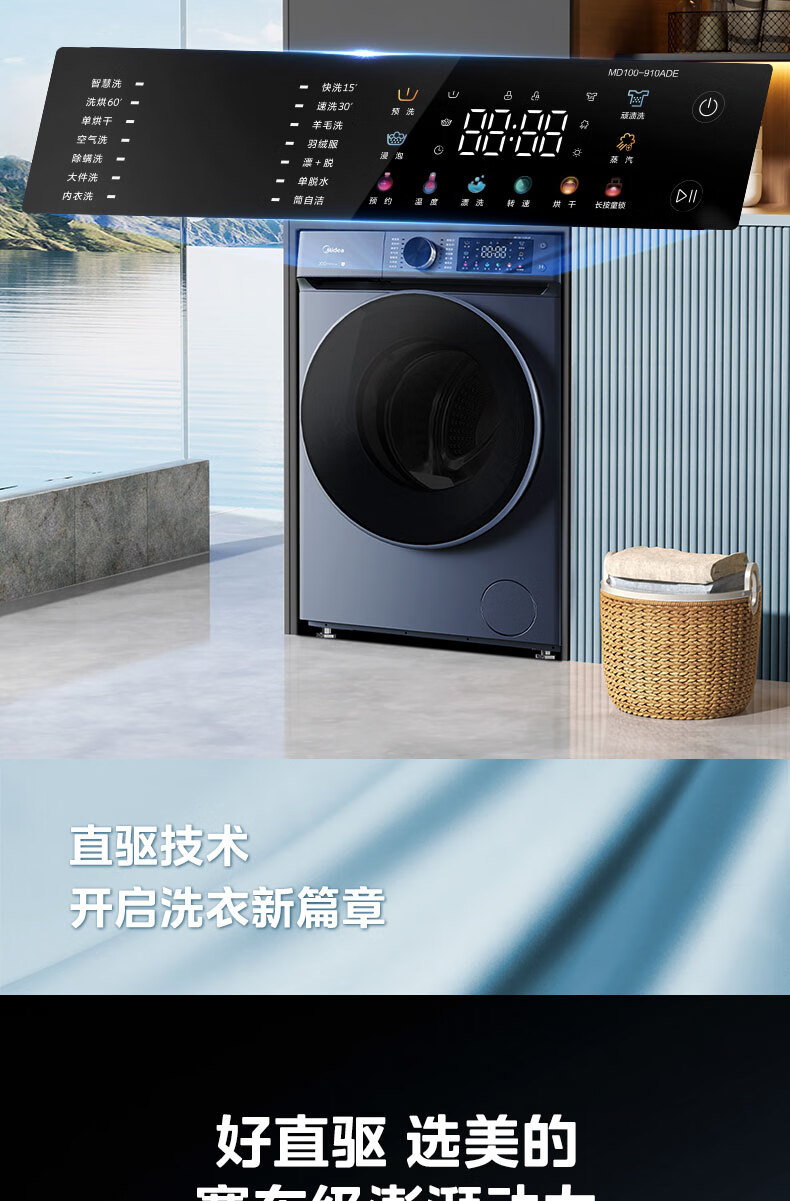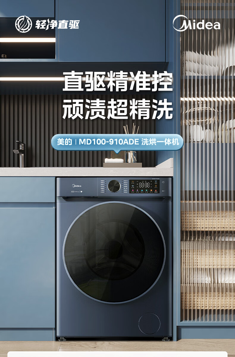 美的(Midea)全自动10公斤滚筒洗衣机 大容量蒸汽消毒洗 DD直驱变频电机 家用变频除菌除螨触控彩屏 【洗烘款】MD100-910ADE