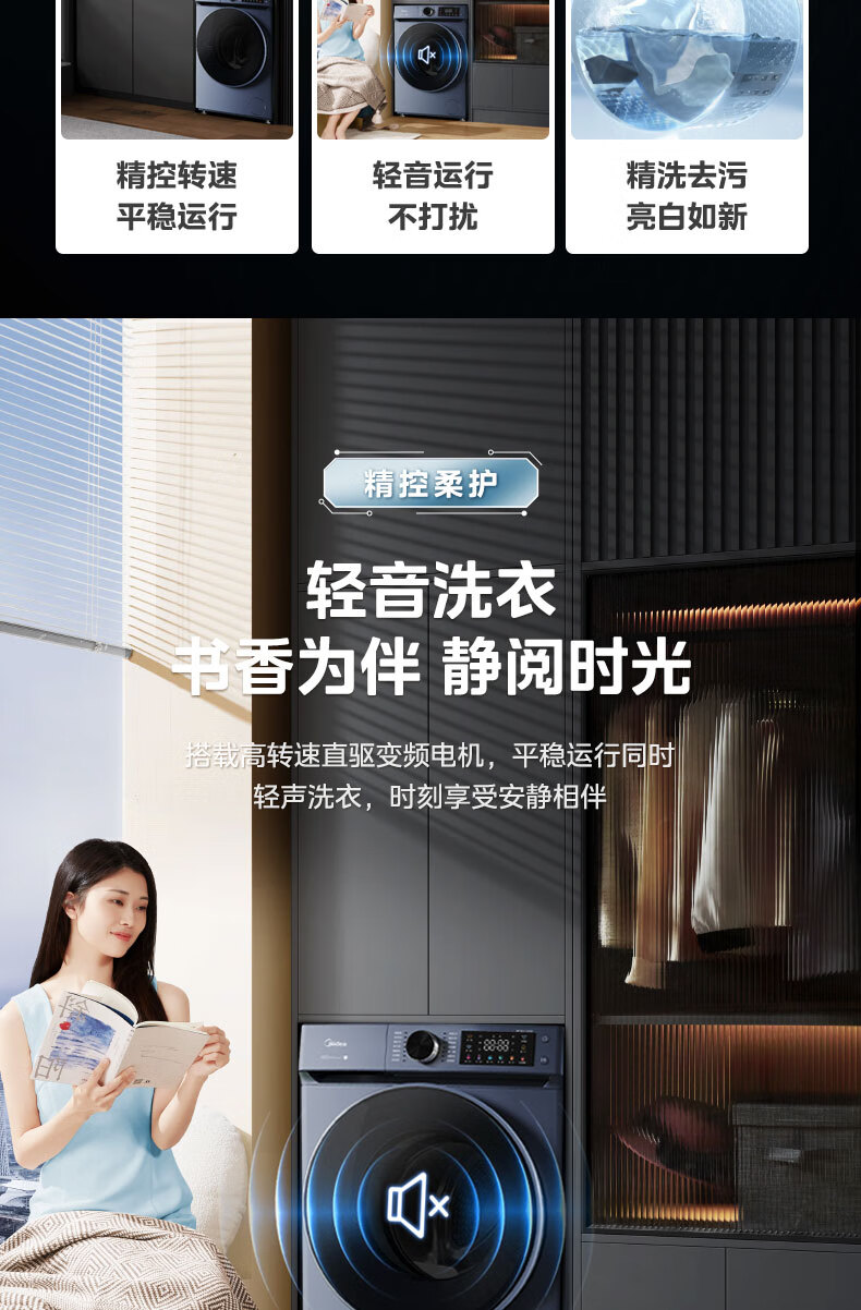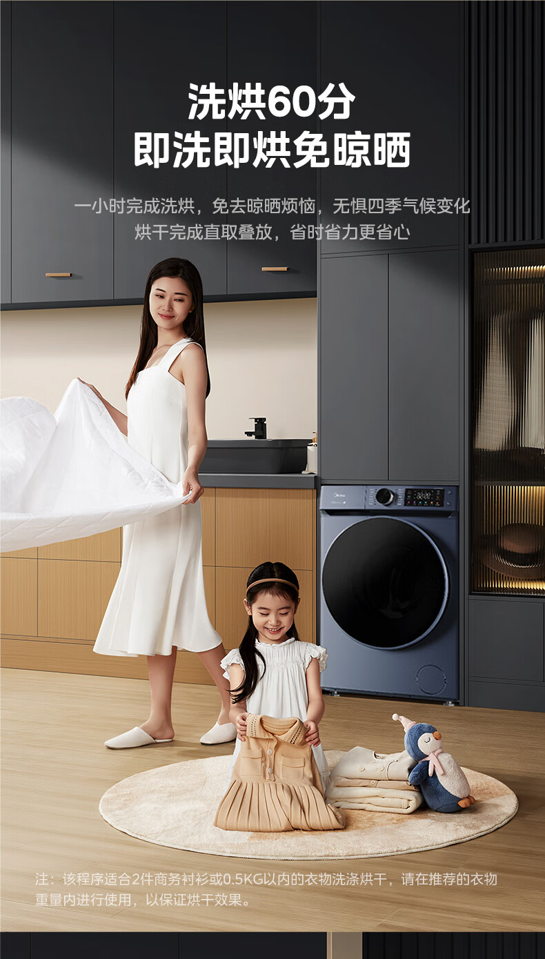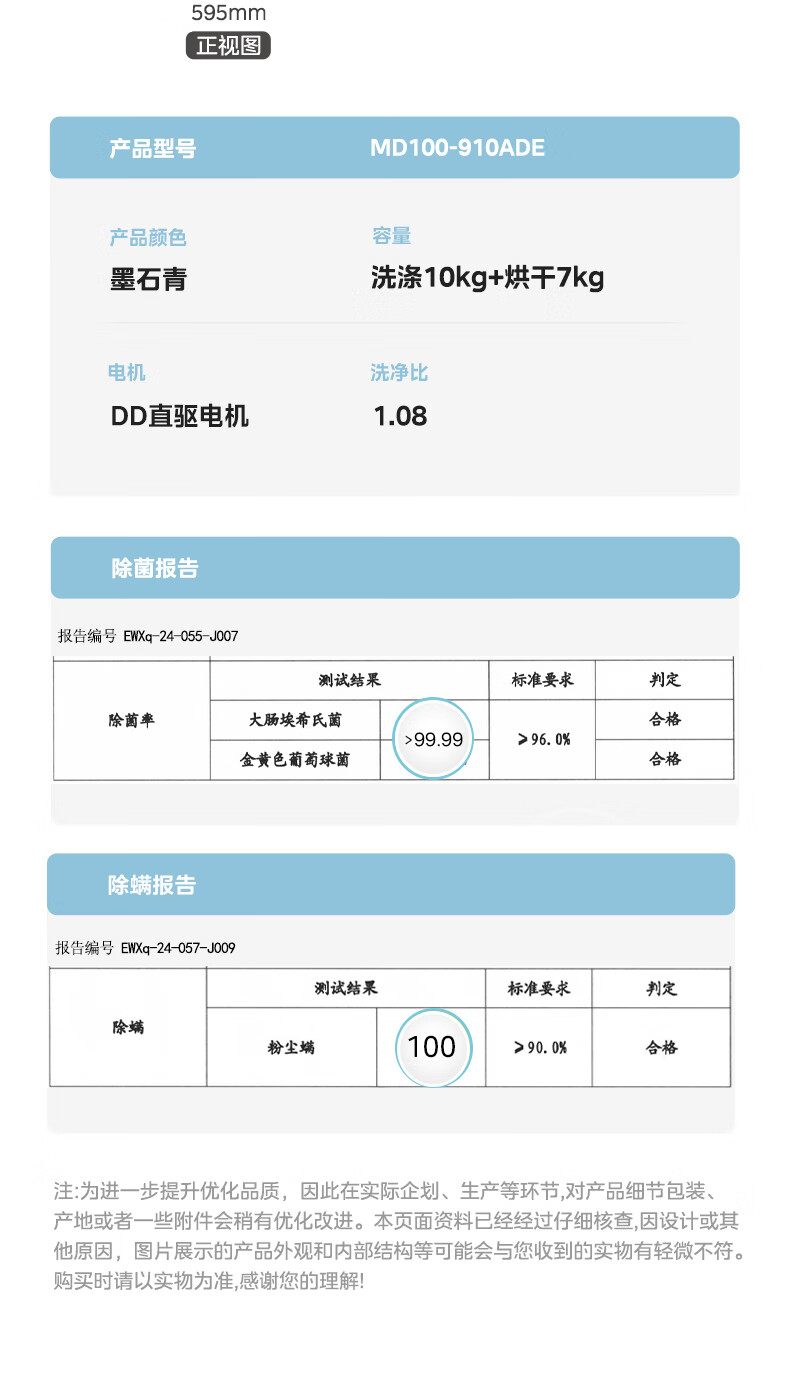 美的(Midea)全自动10公斤滚筒洗衣机 大容量蒸汽消毒洗 DD直驱变频电机 家用变频除菌除螨触控彩屏 【洗烘款】MD100-910ADE