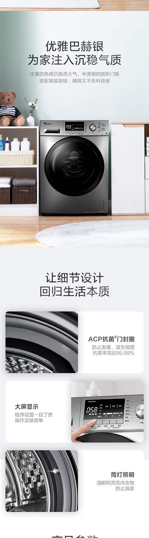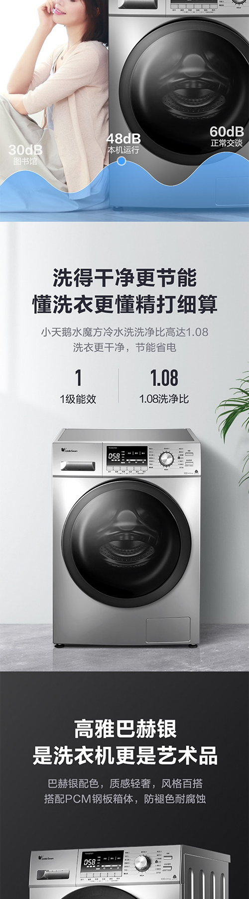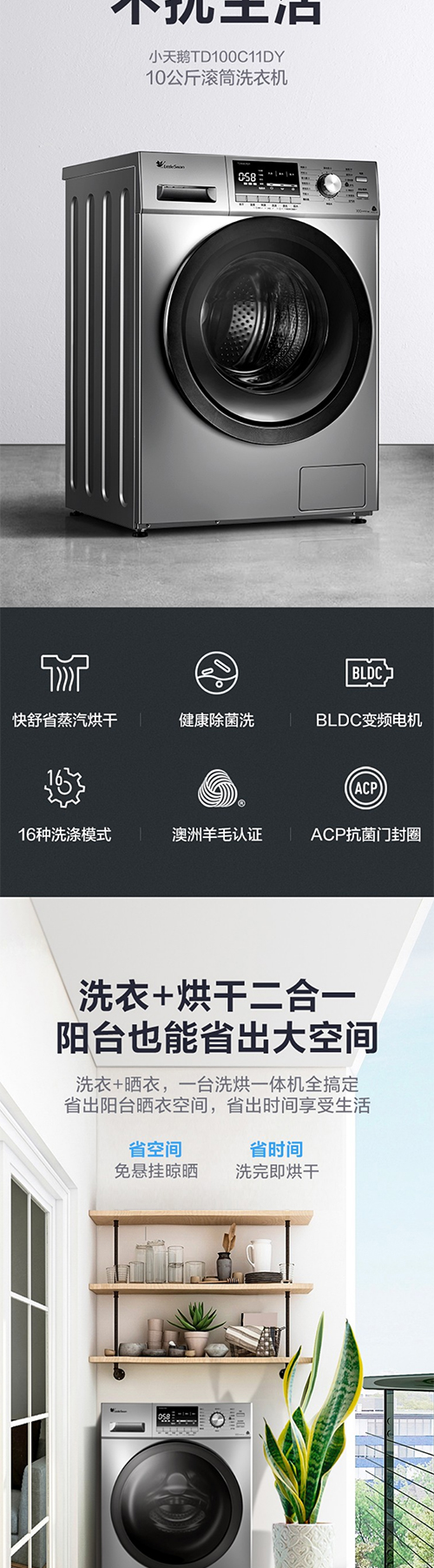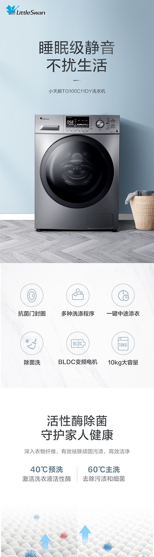 小天鹅滚筒洗衣机全自动 10公斤变频BLDC电机家用大容量 特色除螨除菌洗 高温桶自洁 巴赫银 TG100C11DY