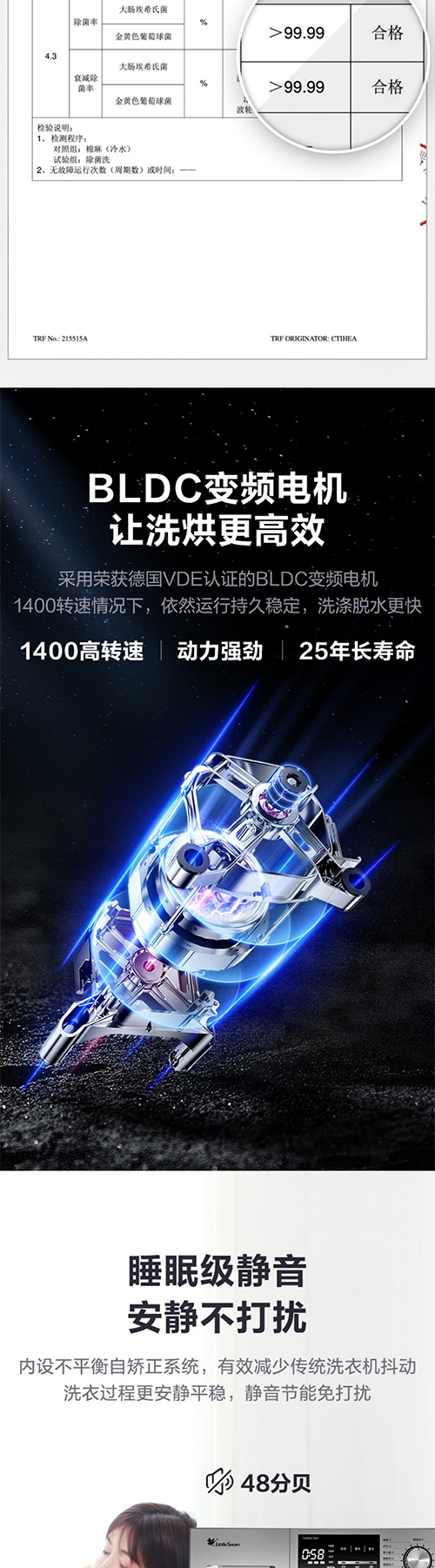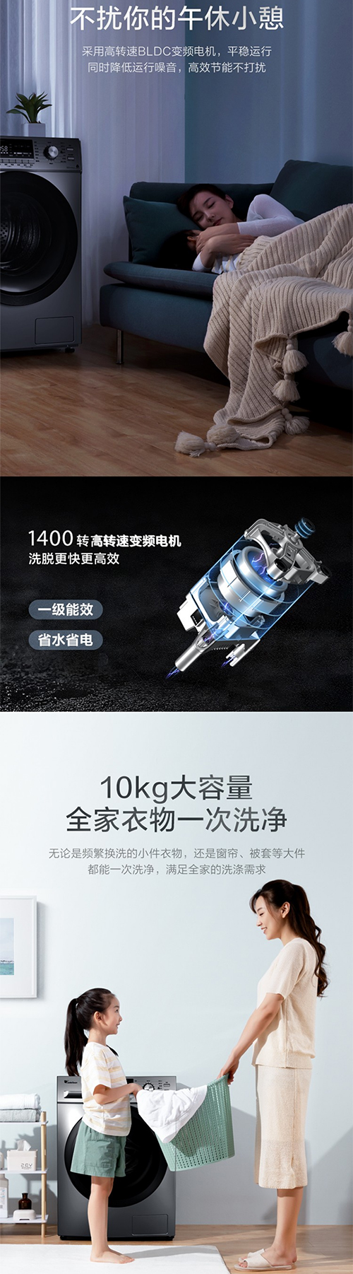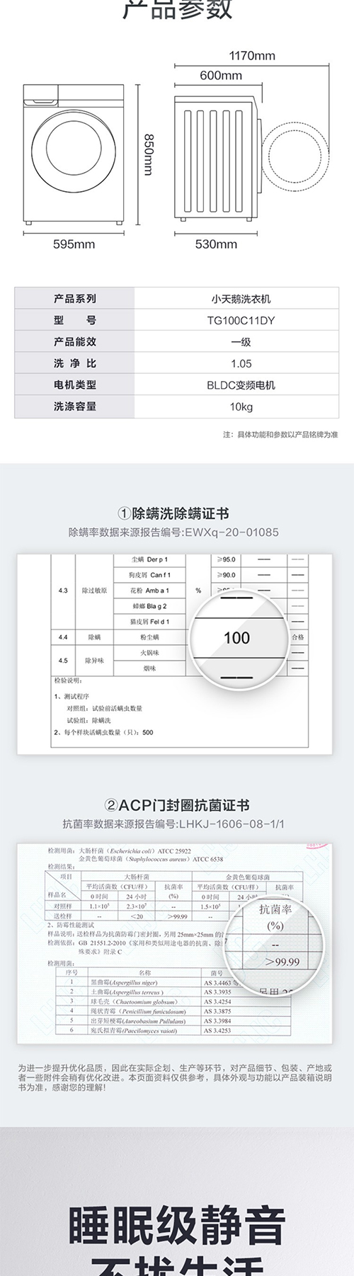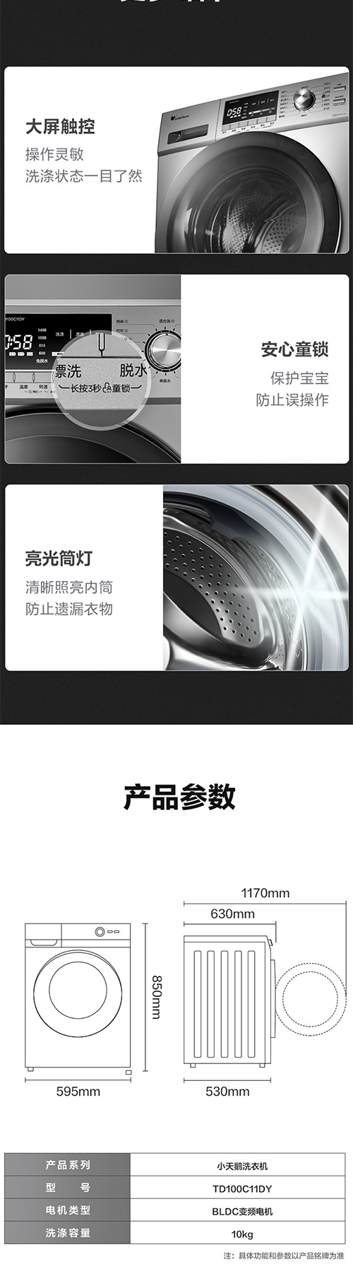 小天鹅滚筒洗衣机全自动 10公斤变频BLDC电机家用大容量 特色除螨除菌洗 高温桶自洁 巴赫银 TG100C11DY
