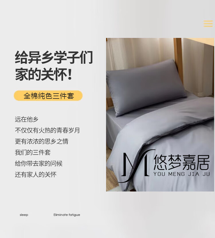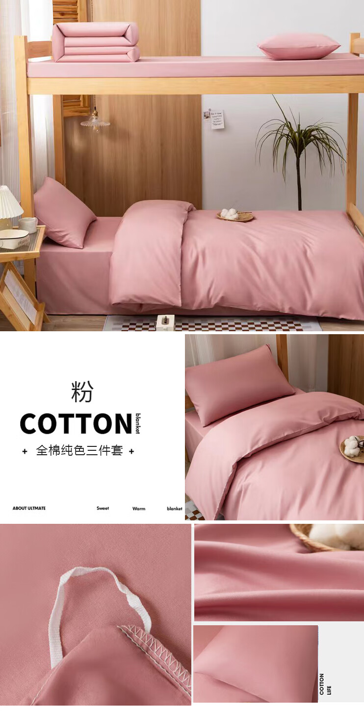 【多样屋专柜】悠梦嘉居全棉纯色三件套粉/蓝/灰单人宿舍