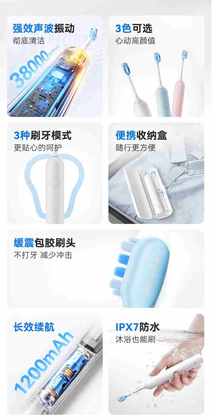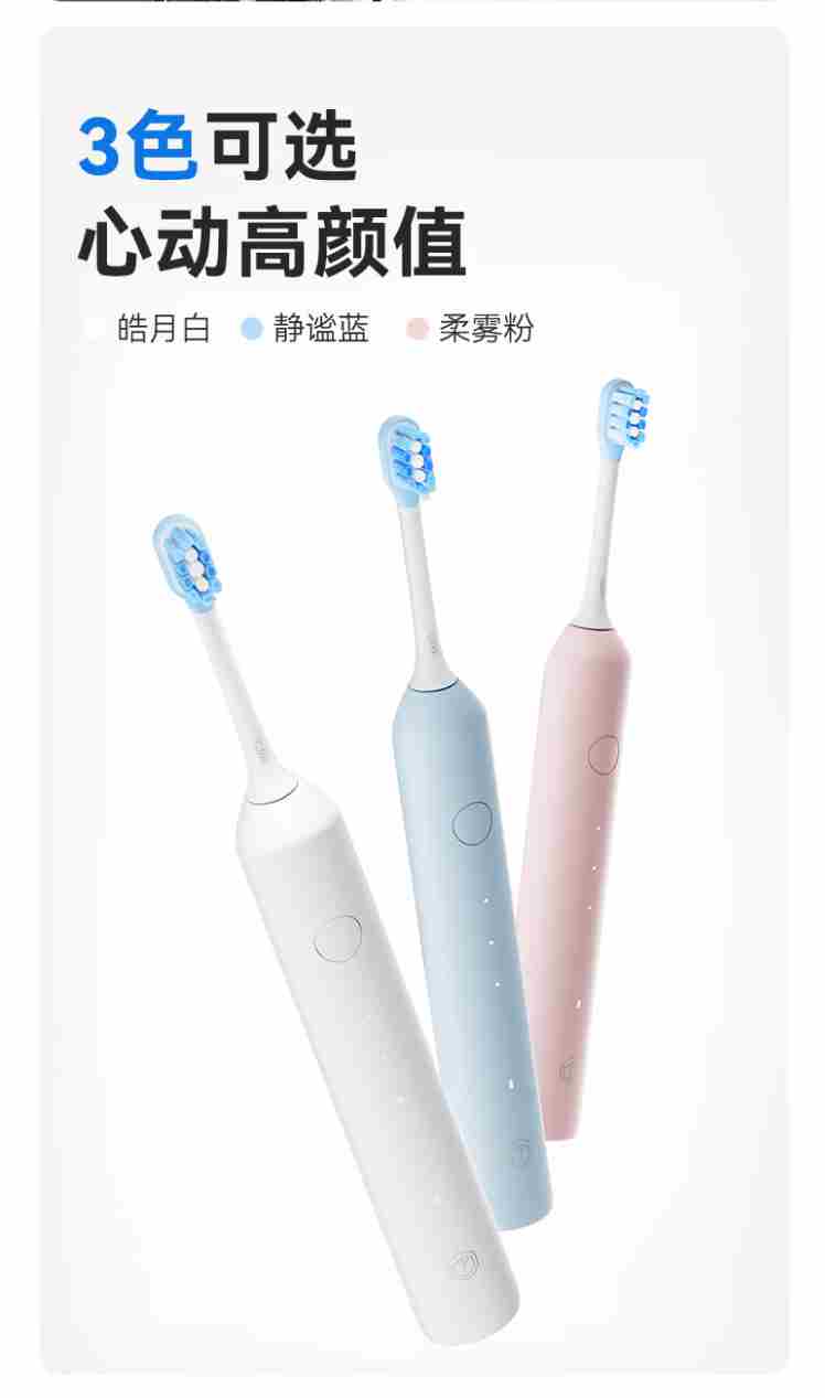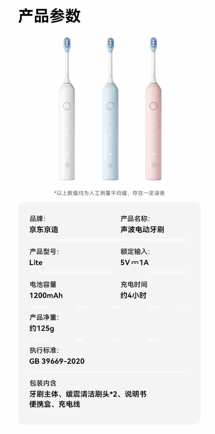京东京造声波电动牙刷Lite成人白 3模式+缓震包胶刷头+收纳盒长续航电动牙刷儿童生日礼物女新年礼物情侣