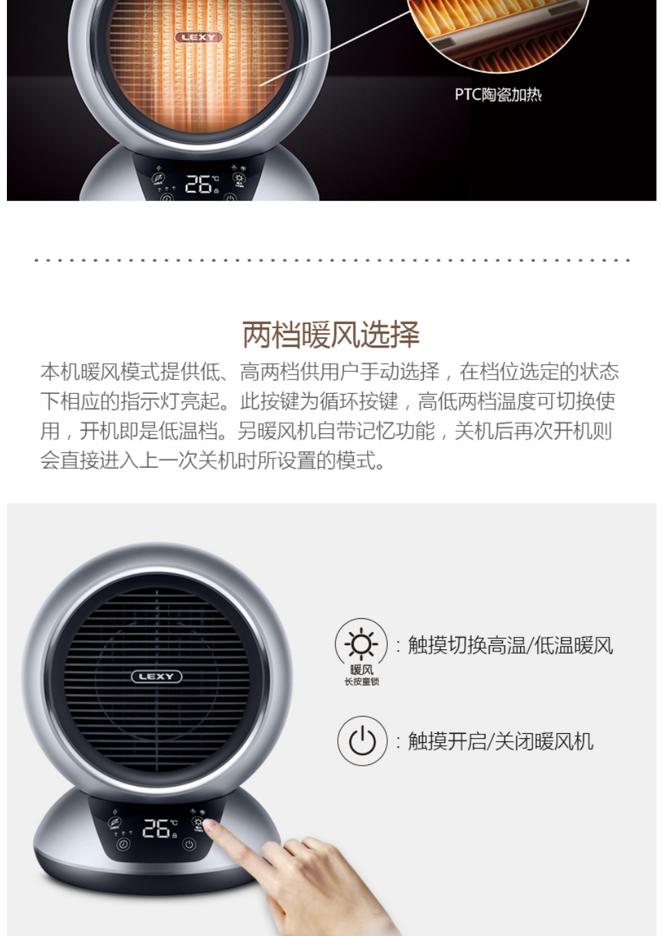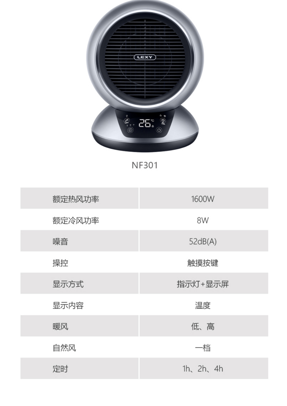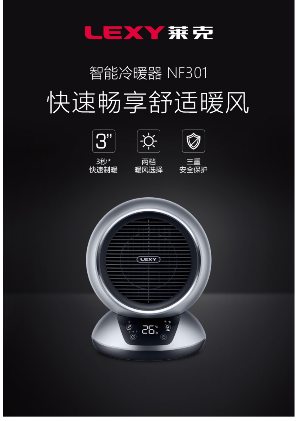 莱克(LEXY)暖风机电暖器电暖气 办公室卧室家用取暖器电暖风台式 冷暖两用NF301 银色