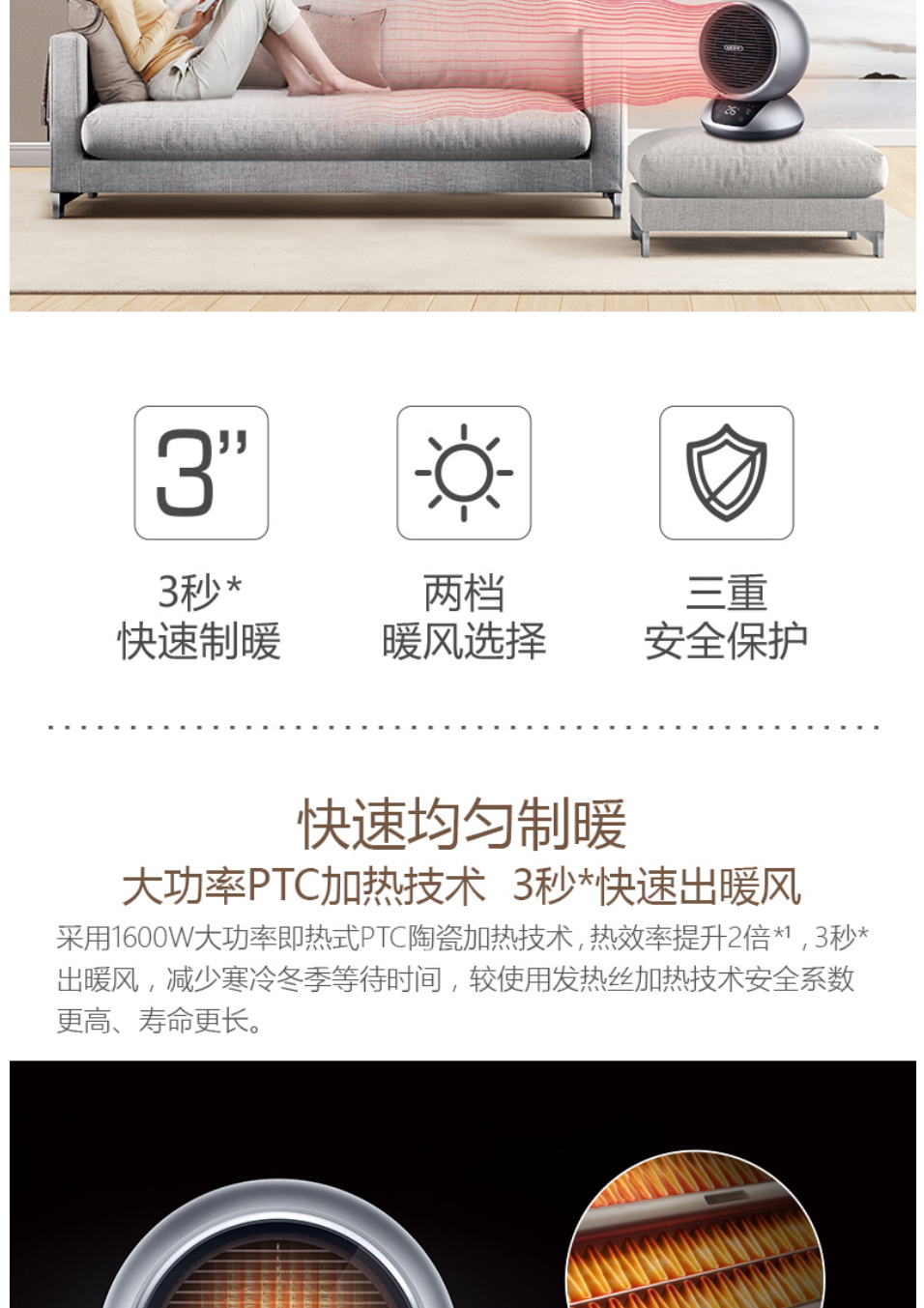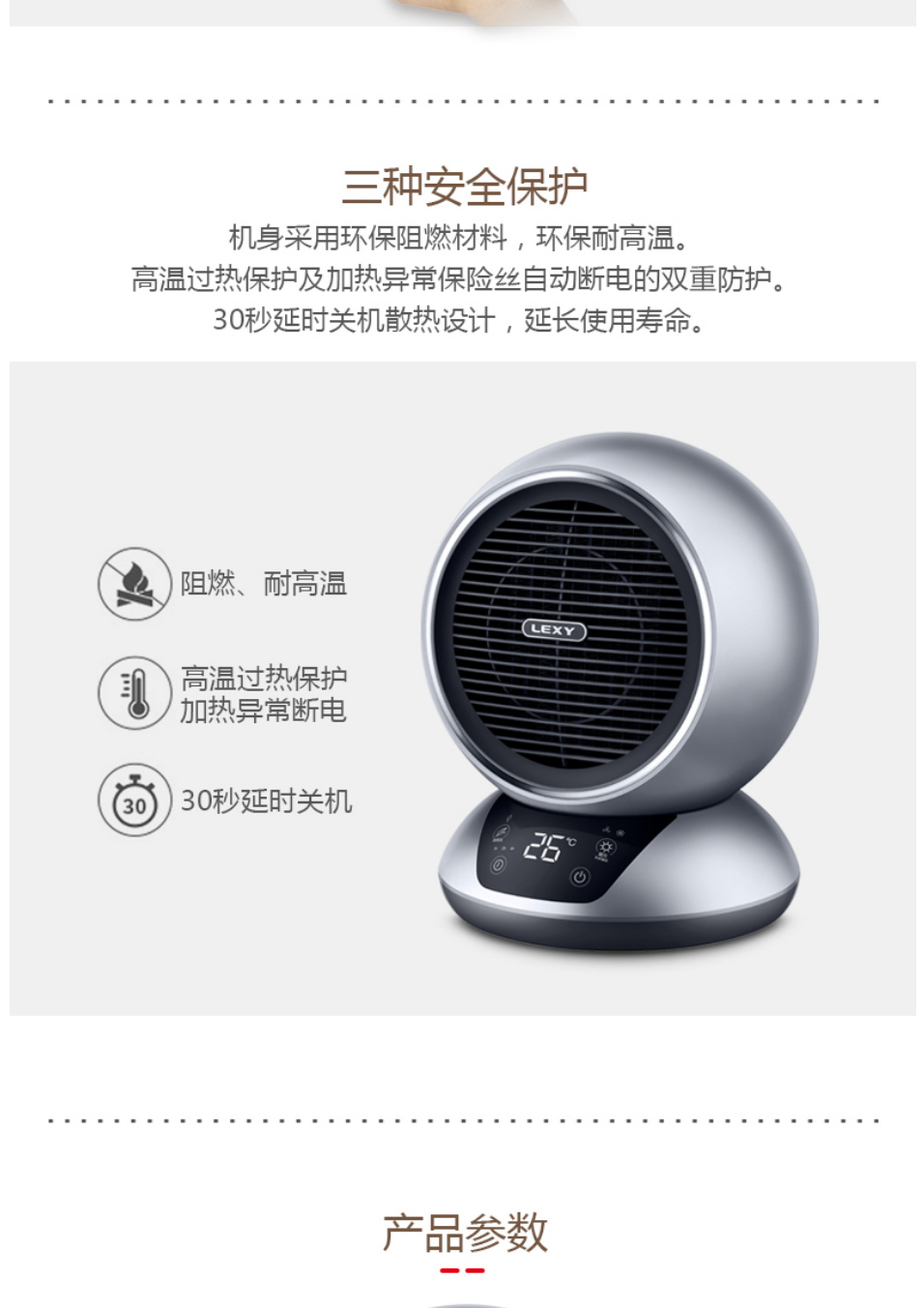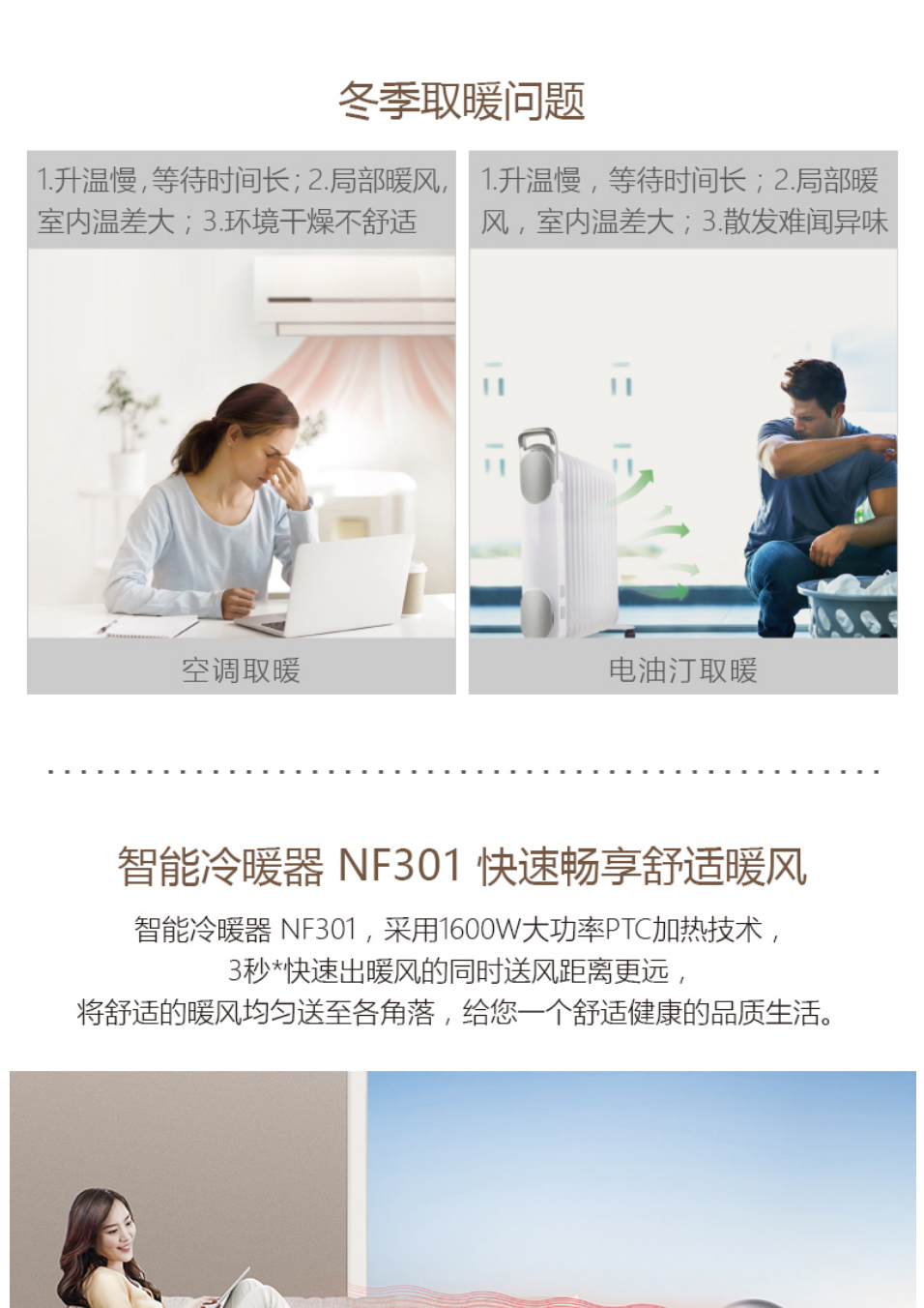 莱克(LEXY)暖风机电暖器电暖气 办公室卧室家用取暖器电暖风台式 冷暖两用NF301 银色