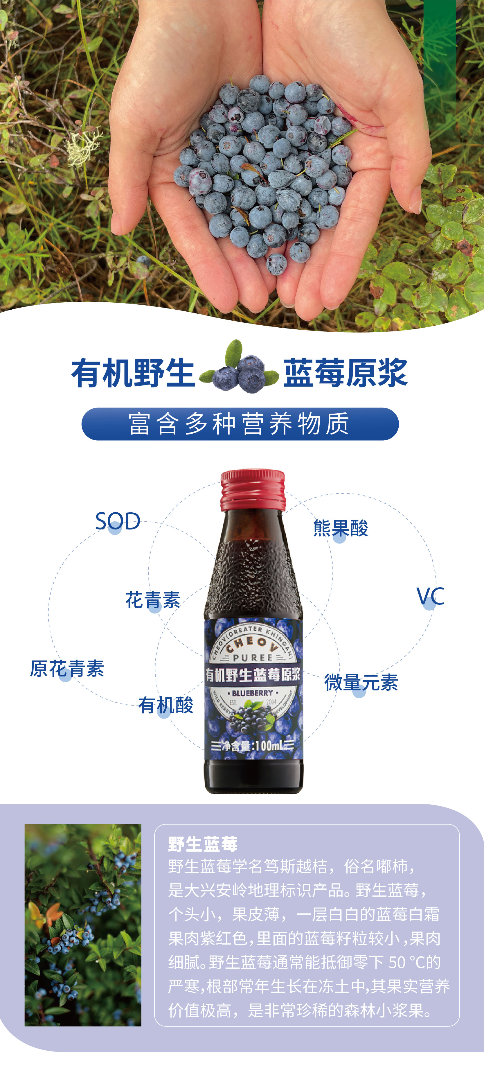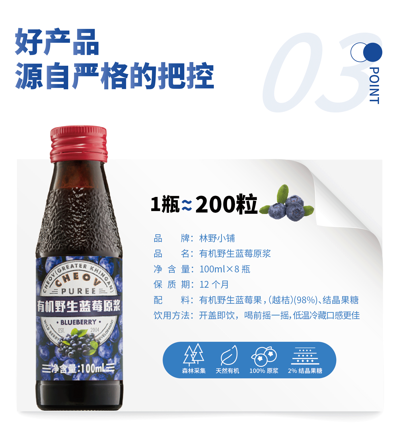 有机野生蓝莓果原浆100ml*8瓶装【有机认证、低温NFC磨浆工艺】
