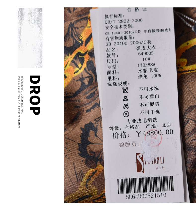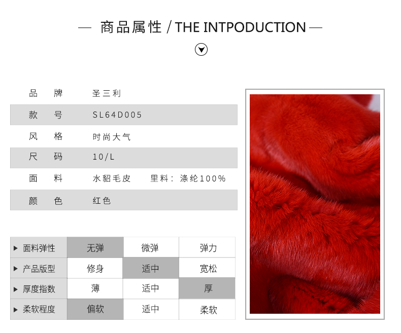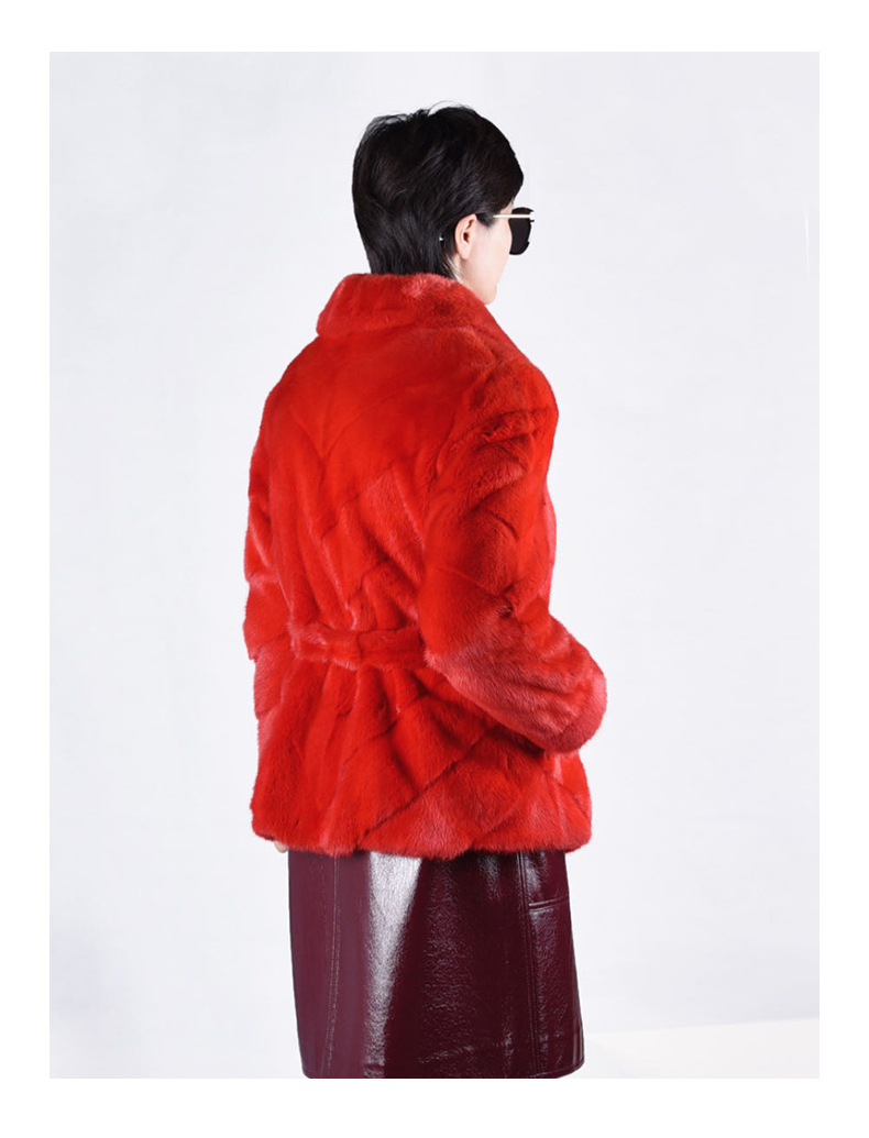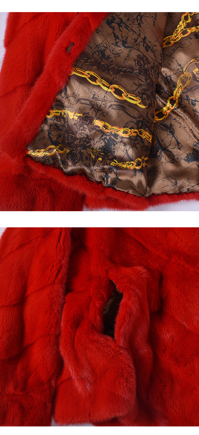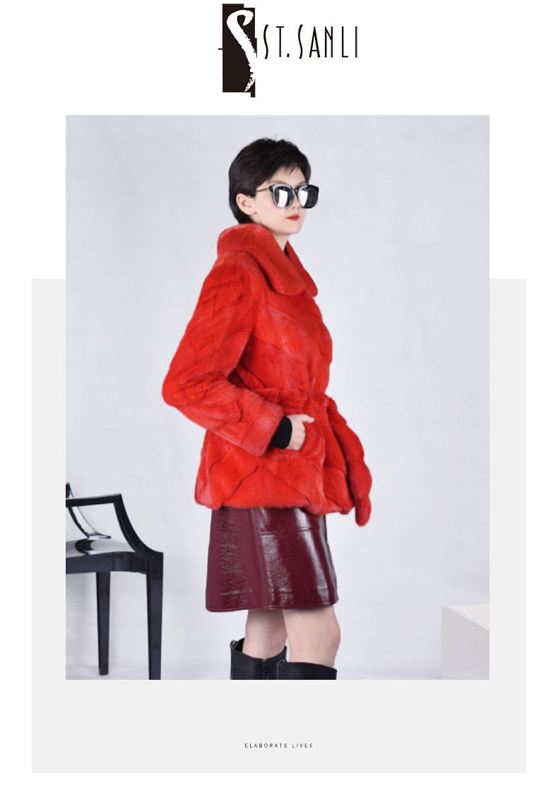圣三利女装进口红色奢华水貂毛皮SL64D005