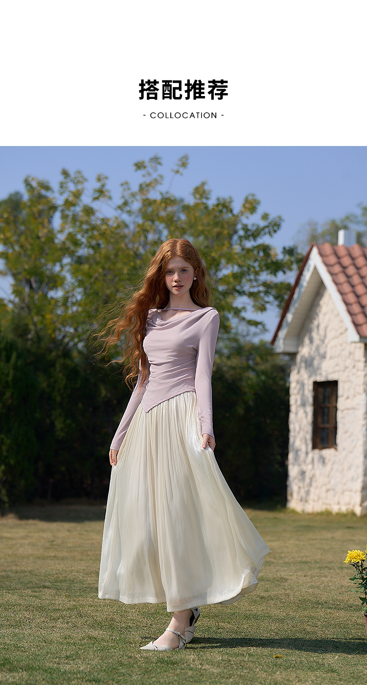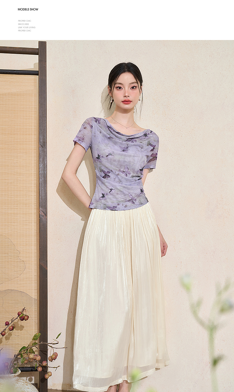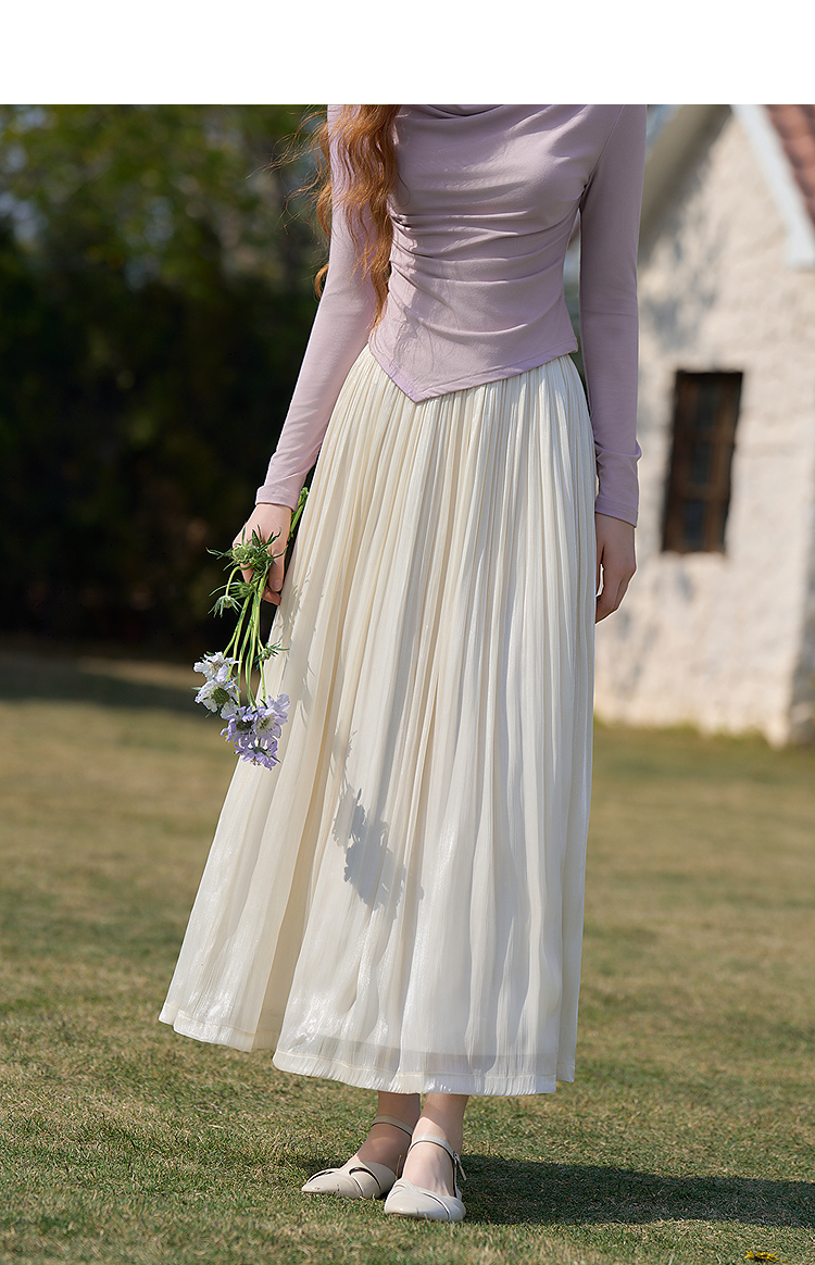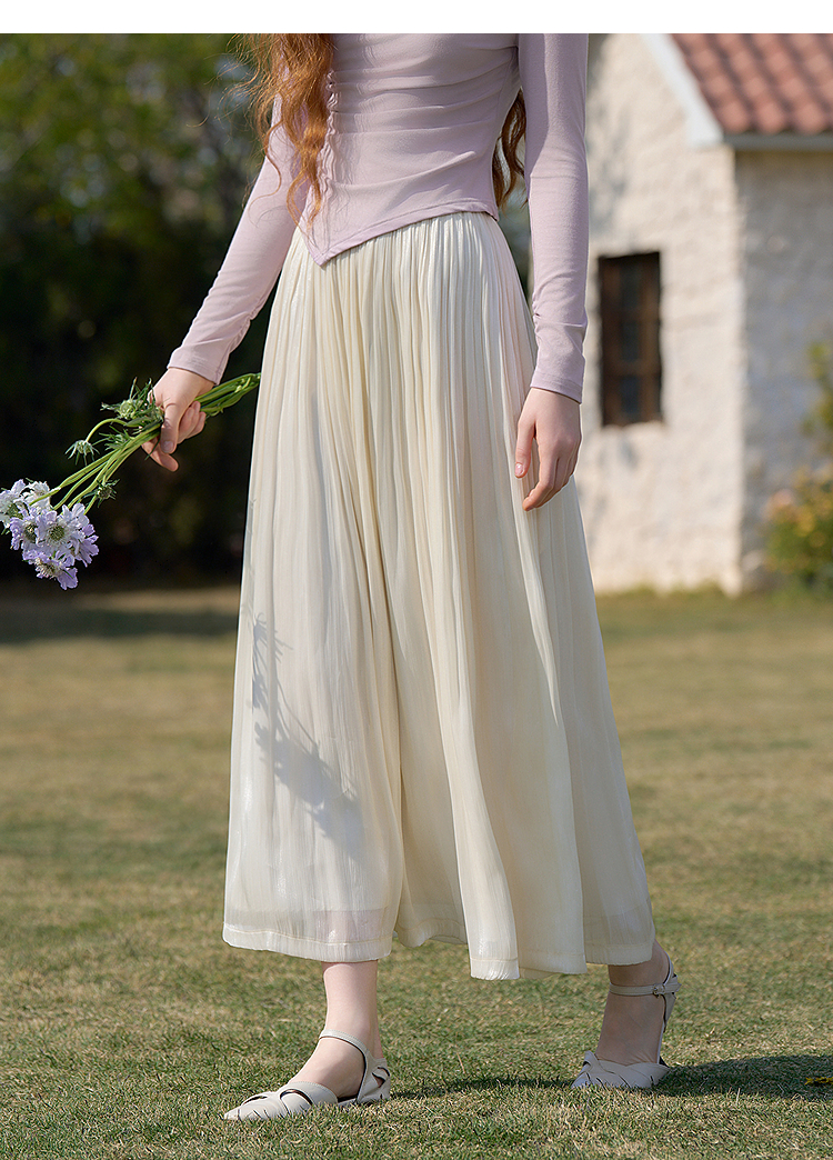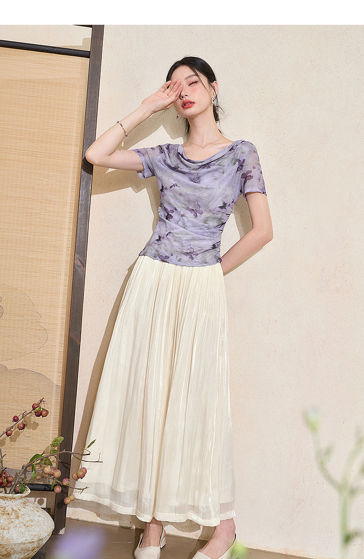 新中式流光纱绸大裙摆轻熟半身裙女夏季高腰垂感纱裙半裙V0050801