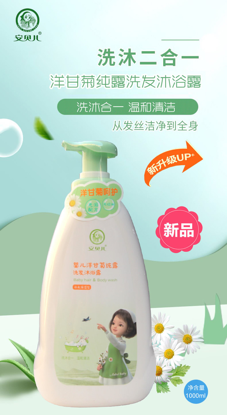 【312直播】安贝儿婴儿洋甘菊纯露洗发沐浴露 1L