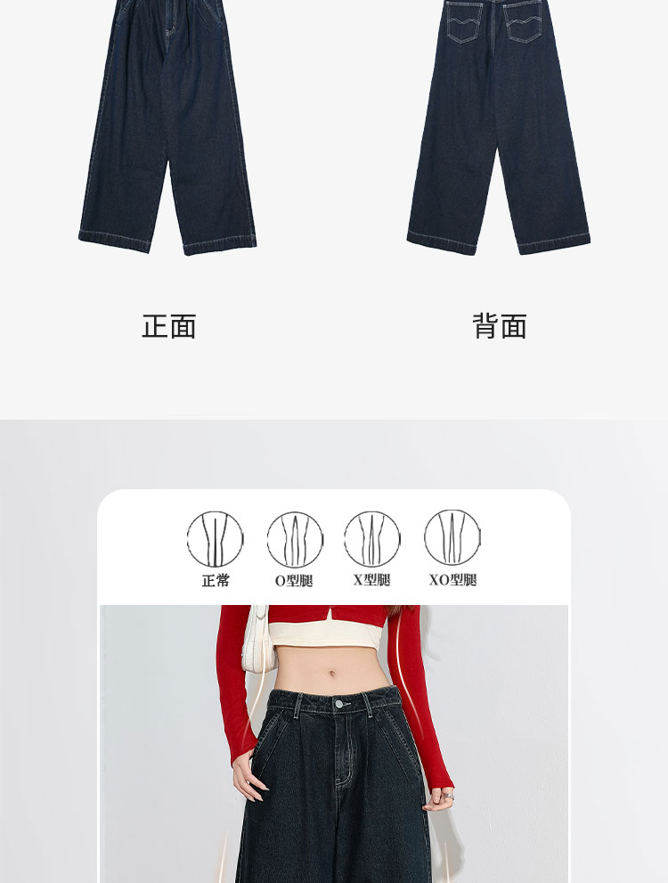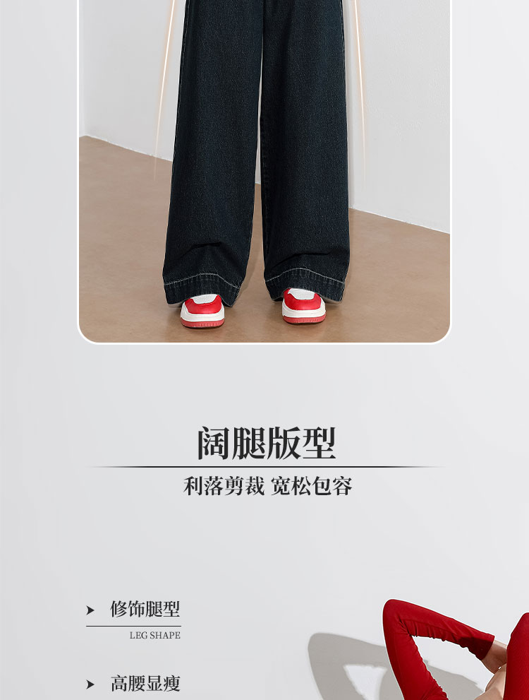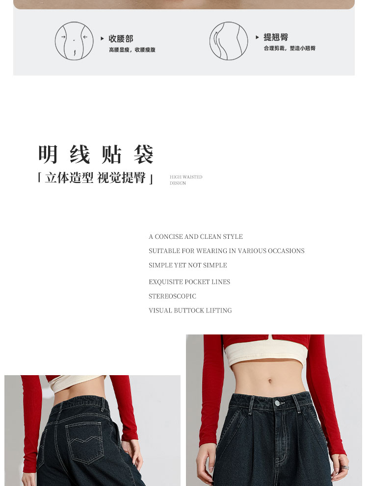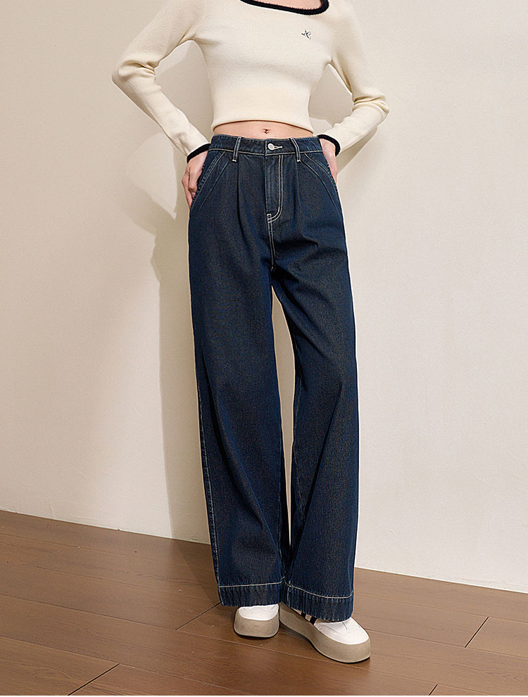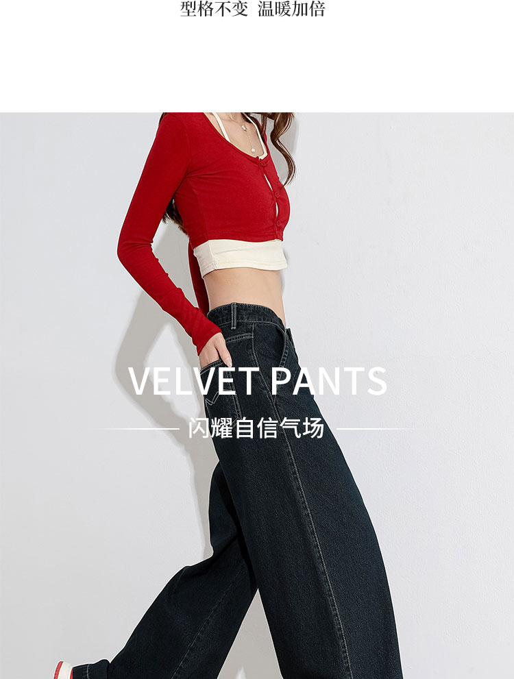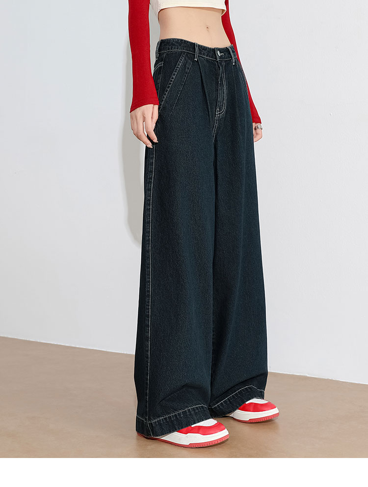 经典复古车缝线设计感水洗牛仔裤女秋季高腰显瘦加绒阔腿裤V0043667