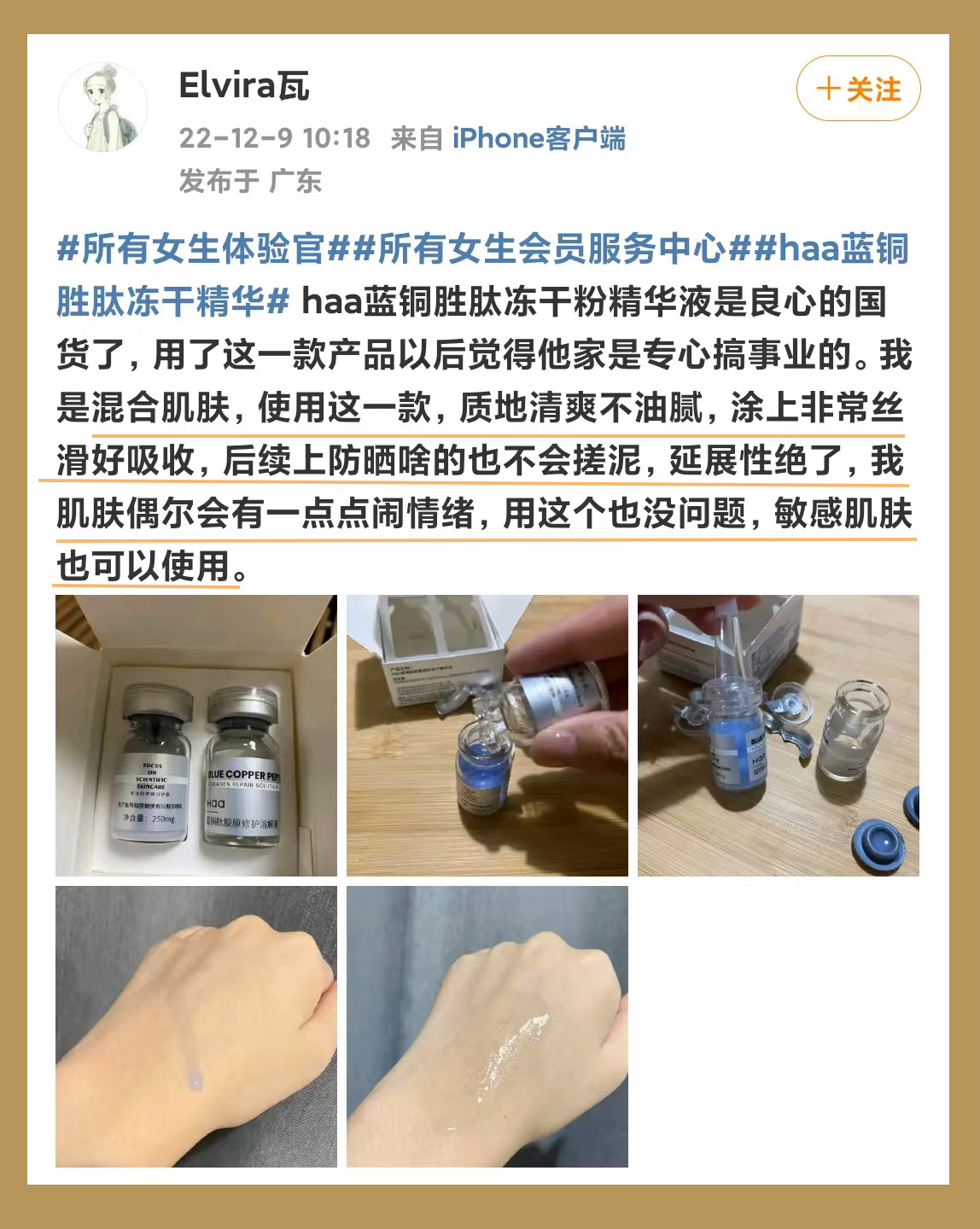 总而言之,Haa的新品蓝铜肽冻干精华,