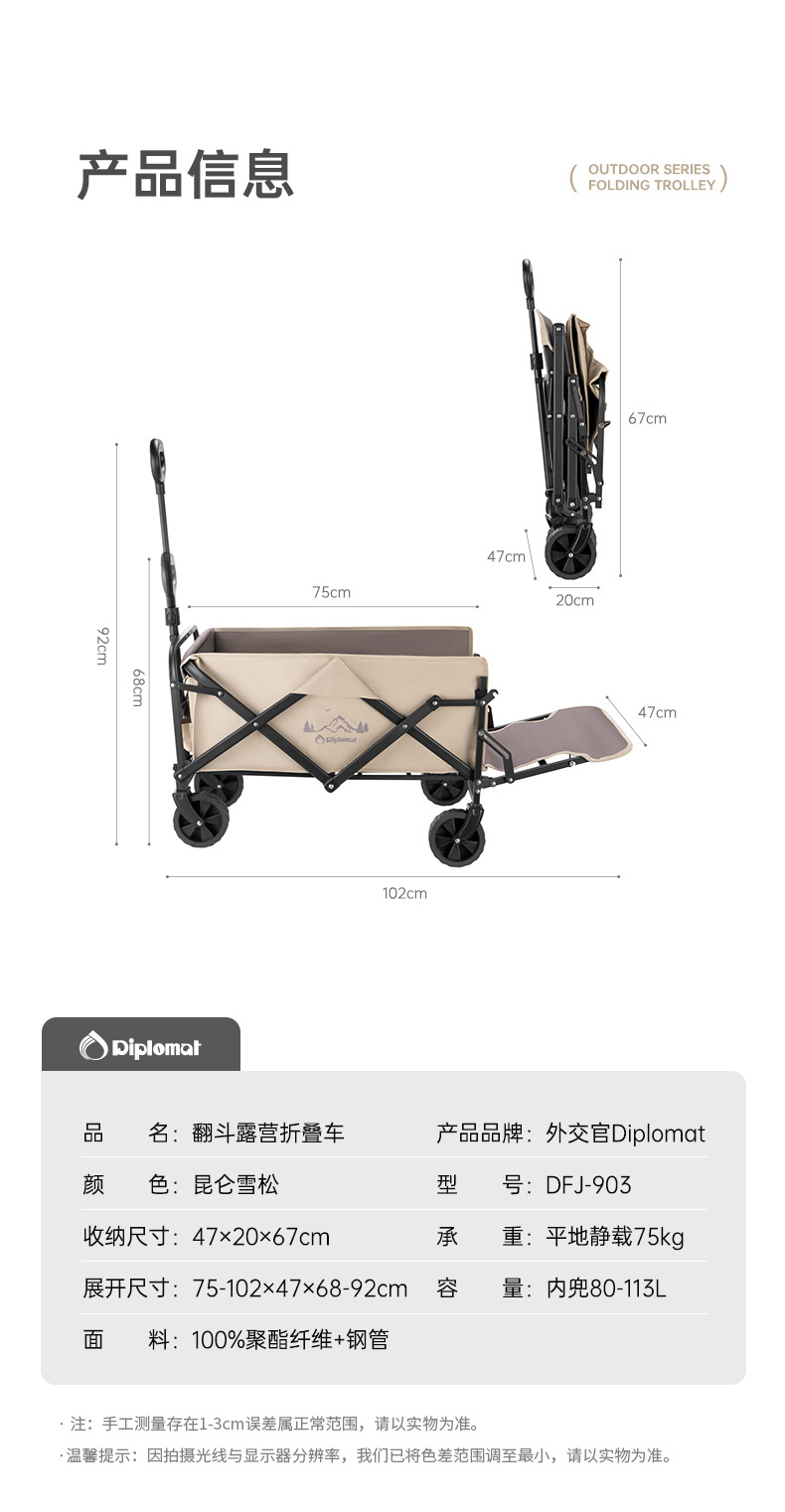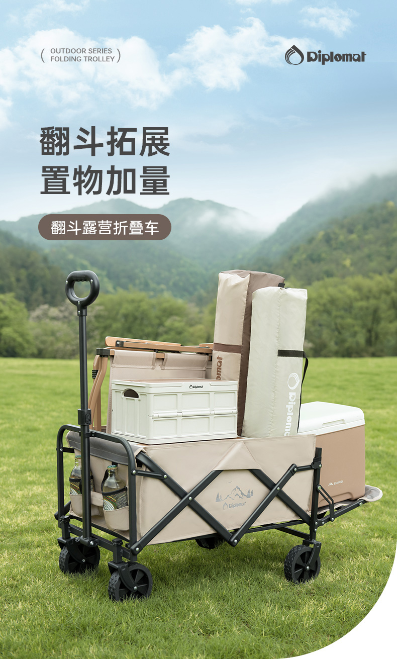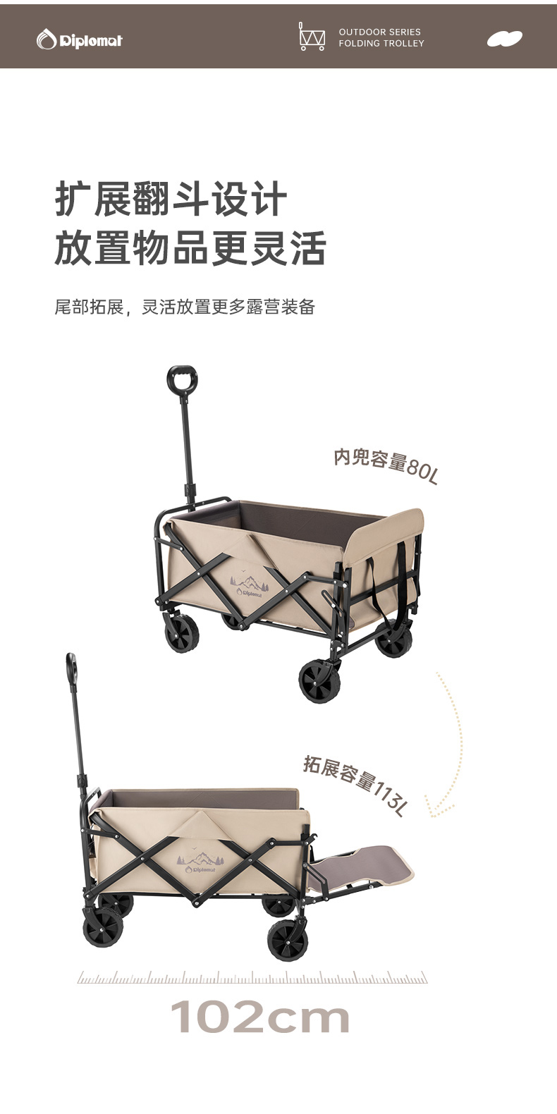 【自营】 外交官Diplomat 翻斗露营折叠车 露营车 双层布兜 前轮万向 轻松折叠 内兜80L/拓展113L