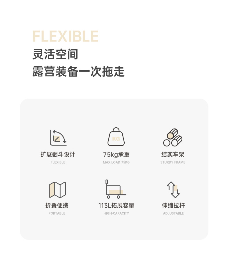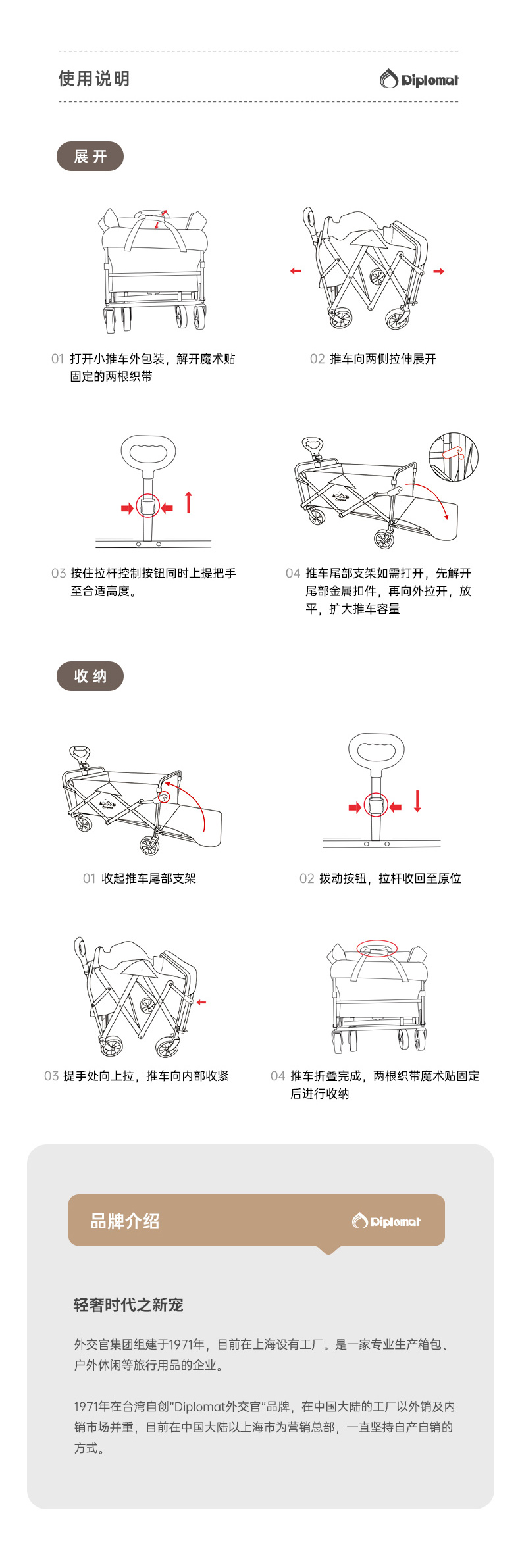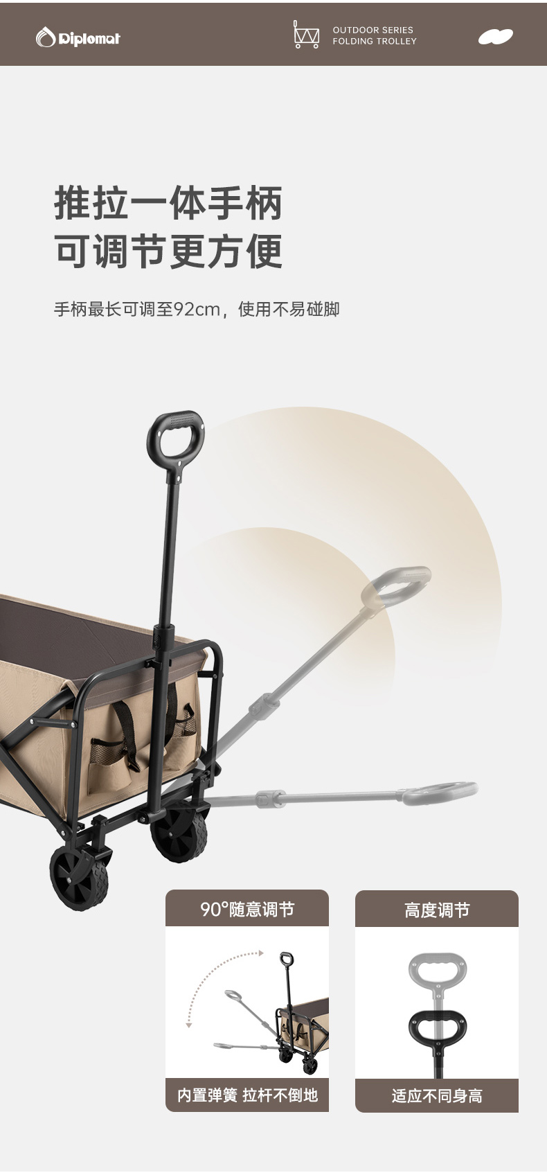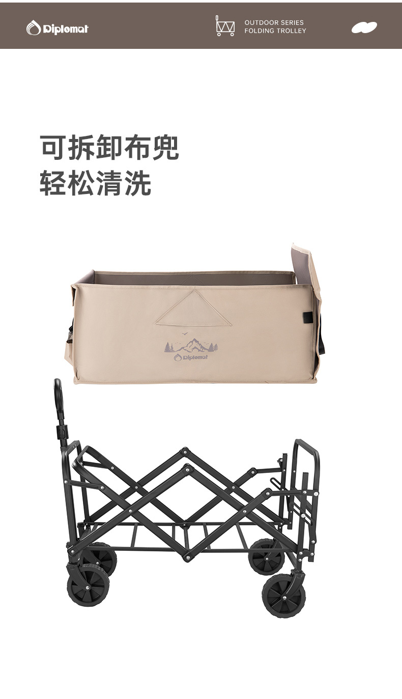 【自营】 外交官Diplomat 翻斗露营折叠车 露营车 双层布兜 前轮万向 轻松折叠 内兜80L/拓展113L