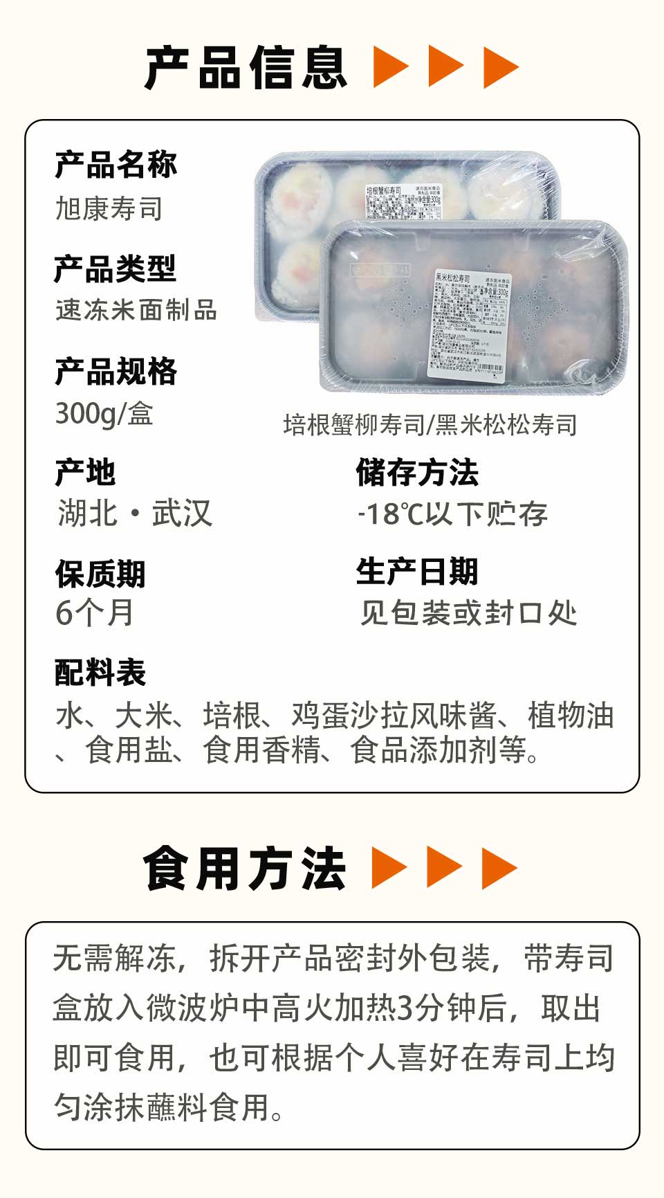 旭康寿司2种口味(培根蟹柳寿司/黑米松松寿司) 300g/盒 18盒/件