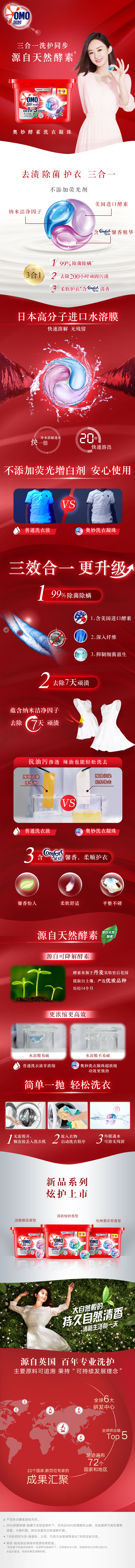奥妙3合1洗衣凝珠18颗三效合一抑菌洁净护色189g*3盒