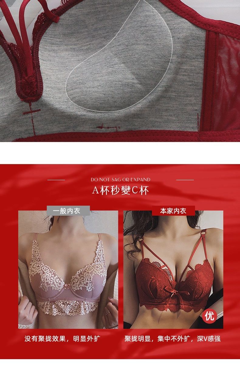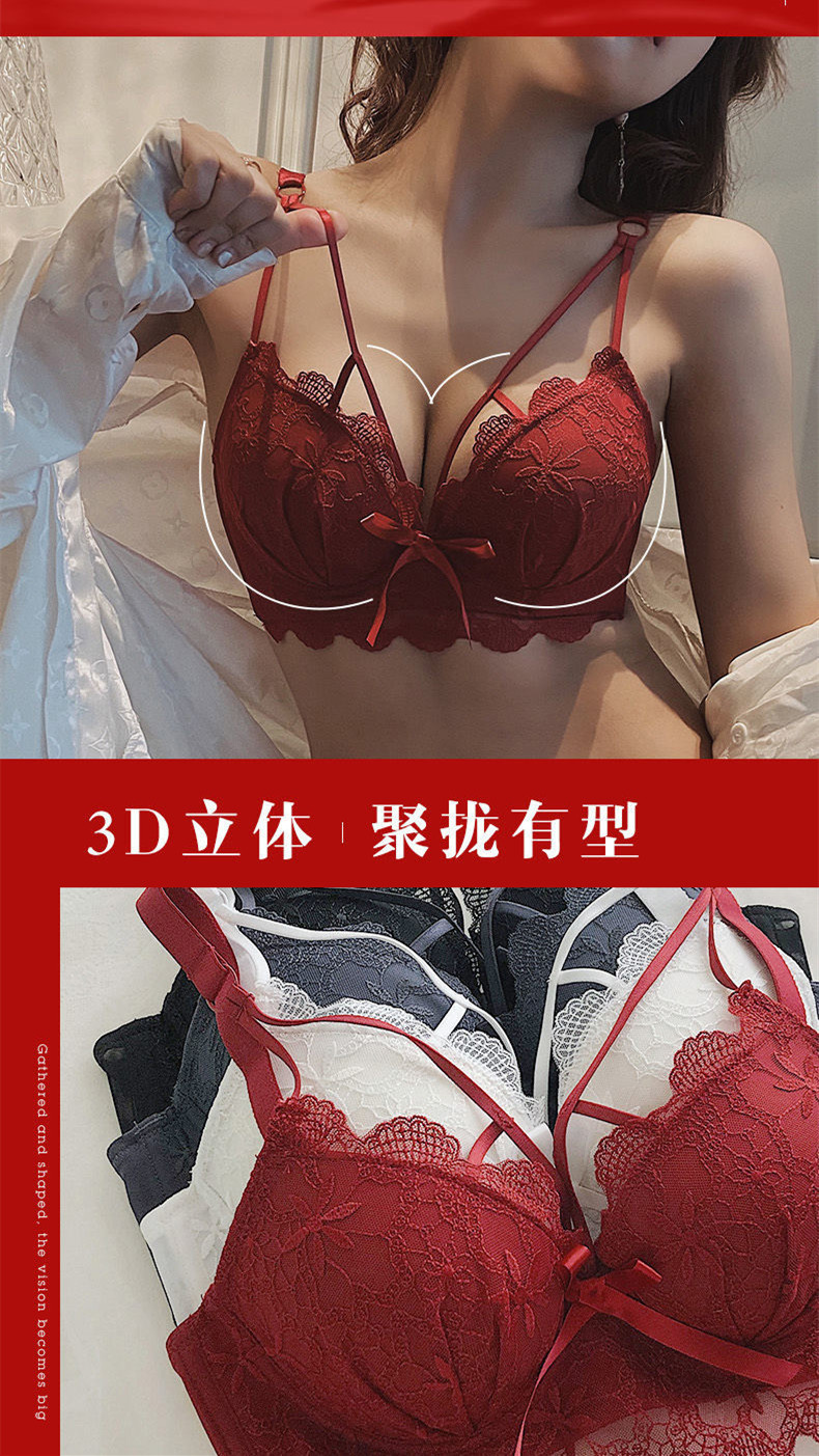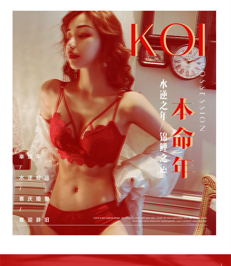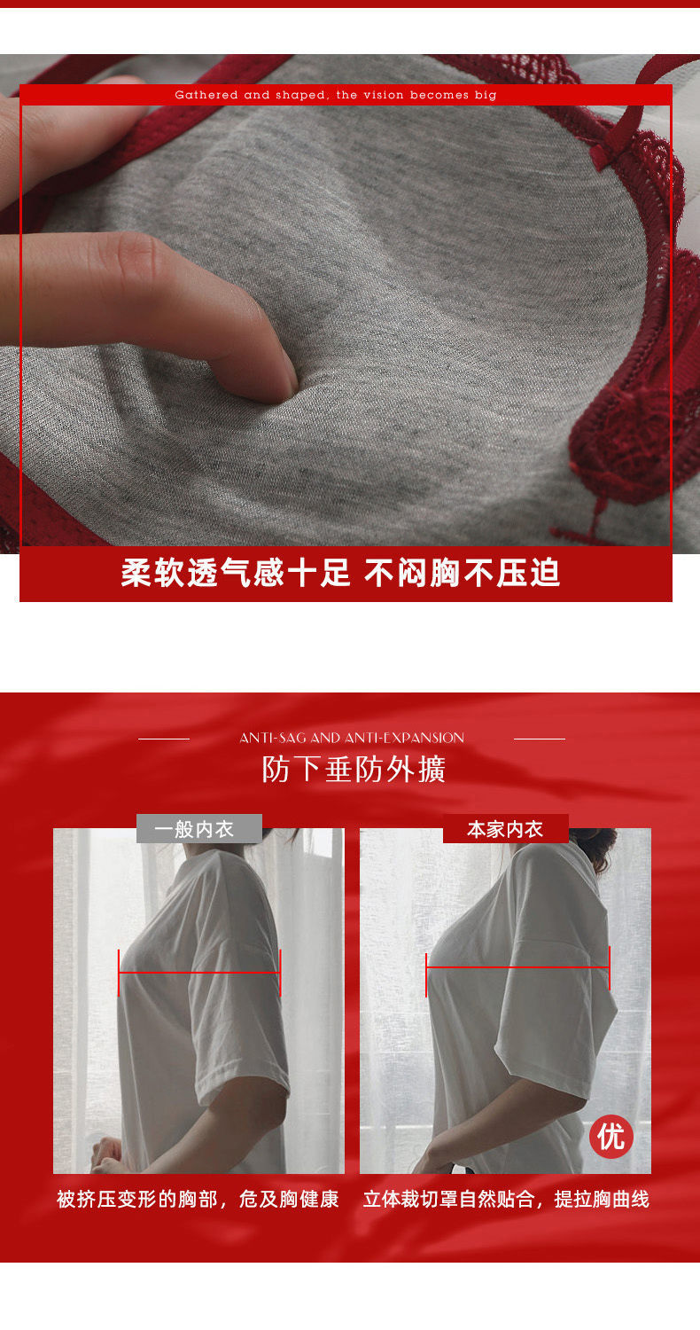 性感内衣女红色本命年牛文胸聚拢小胸收副乳防下垂上托调整型胸罩 七夕挚爱之选