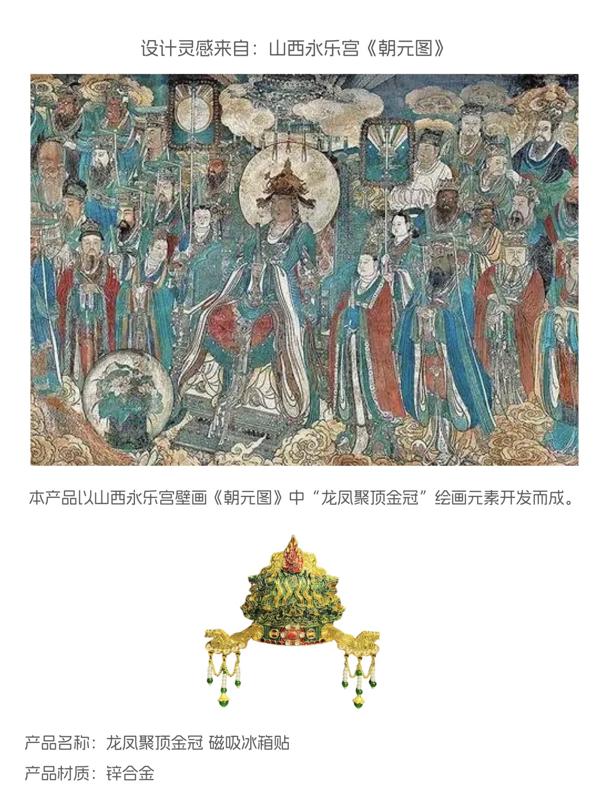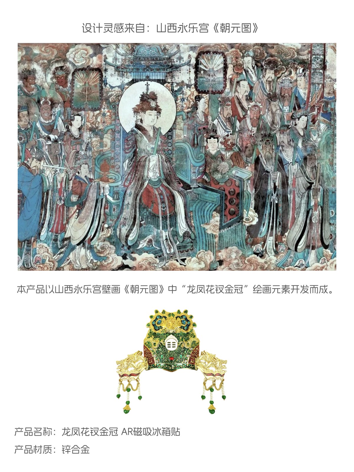 永乐宫龙凤花钗金冠AR冰箱贴磁吸朝元图博物馆山西文创旅游纪念品