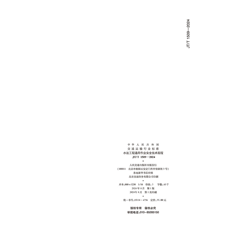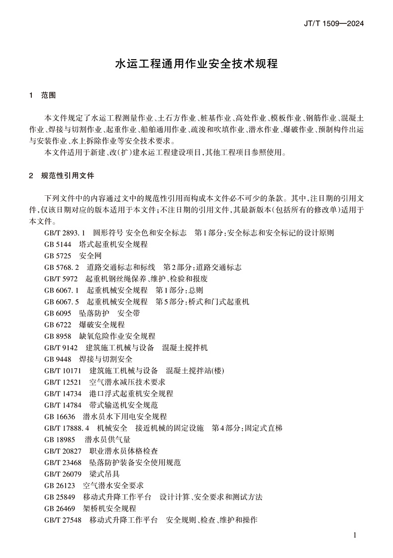 书名:水运工程通用作业安全技术规程(JT/T 1509—2024)