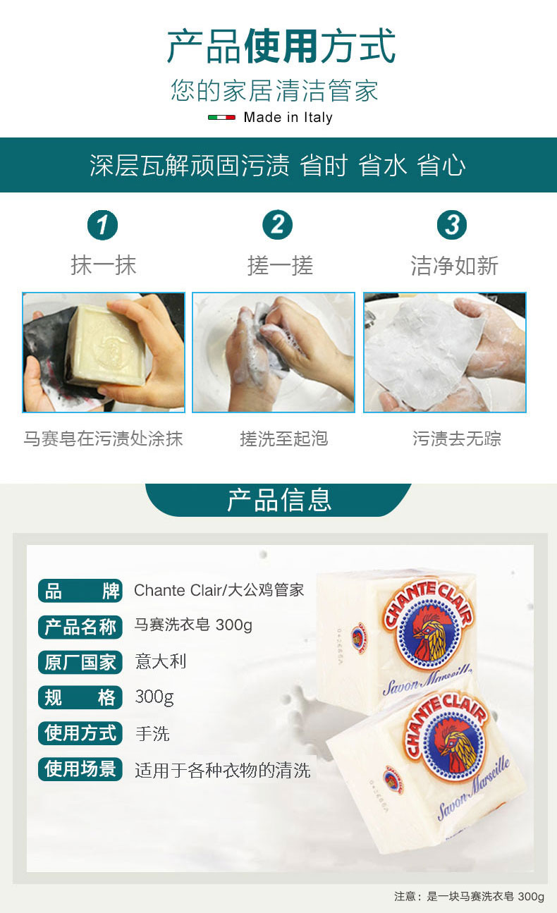 【意大利进口 婴儿可用】大公鸡马赛洗衣皂 300g