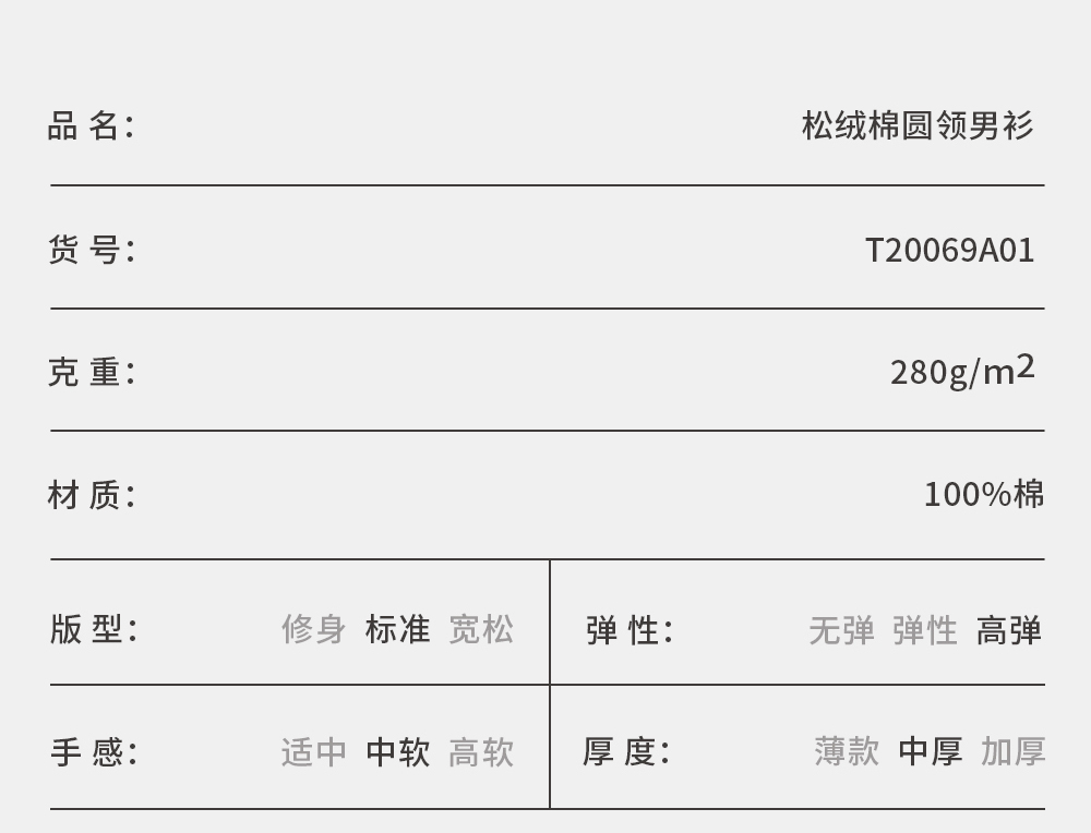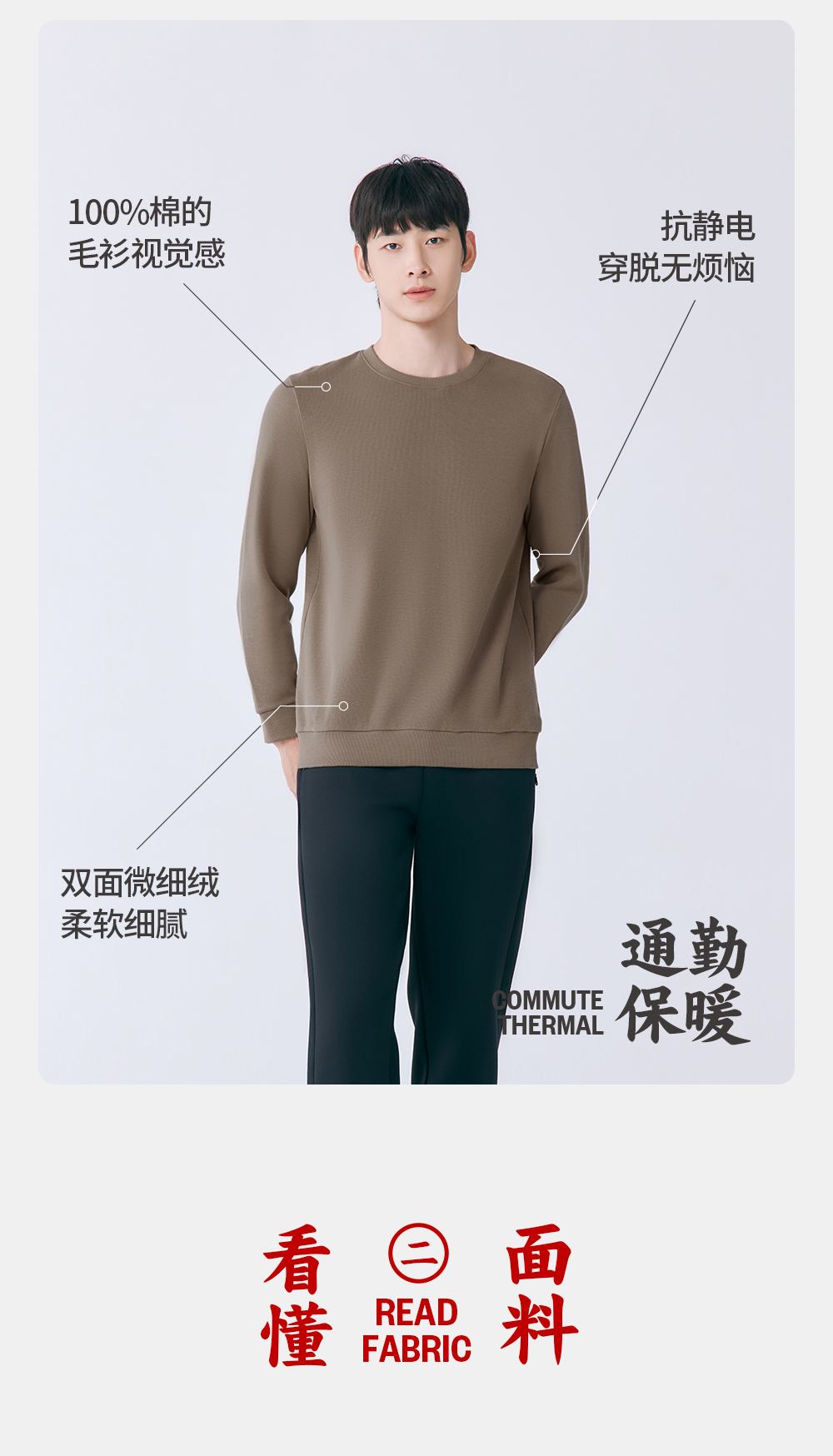 Threegun三枪 松绒棉圆领男衫-T20069A01
