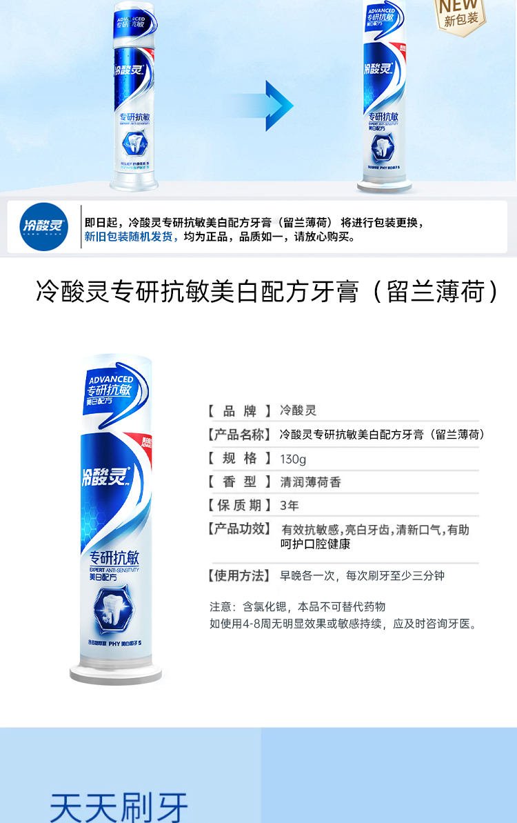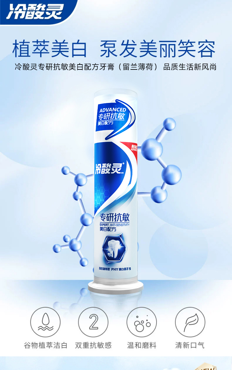 冷酸灵双重抗敏感泵式牙膏2支装(共250g)新老包装随机发货 WY