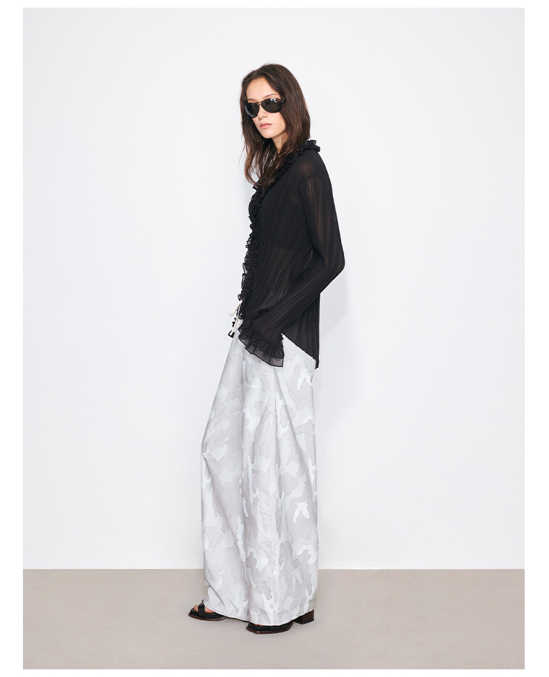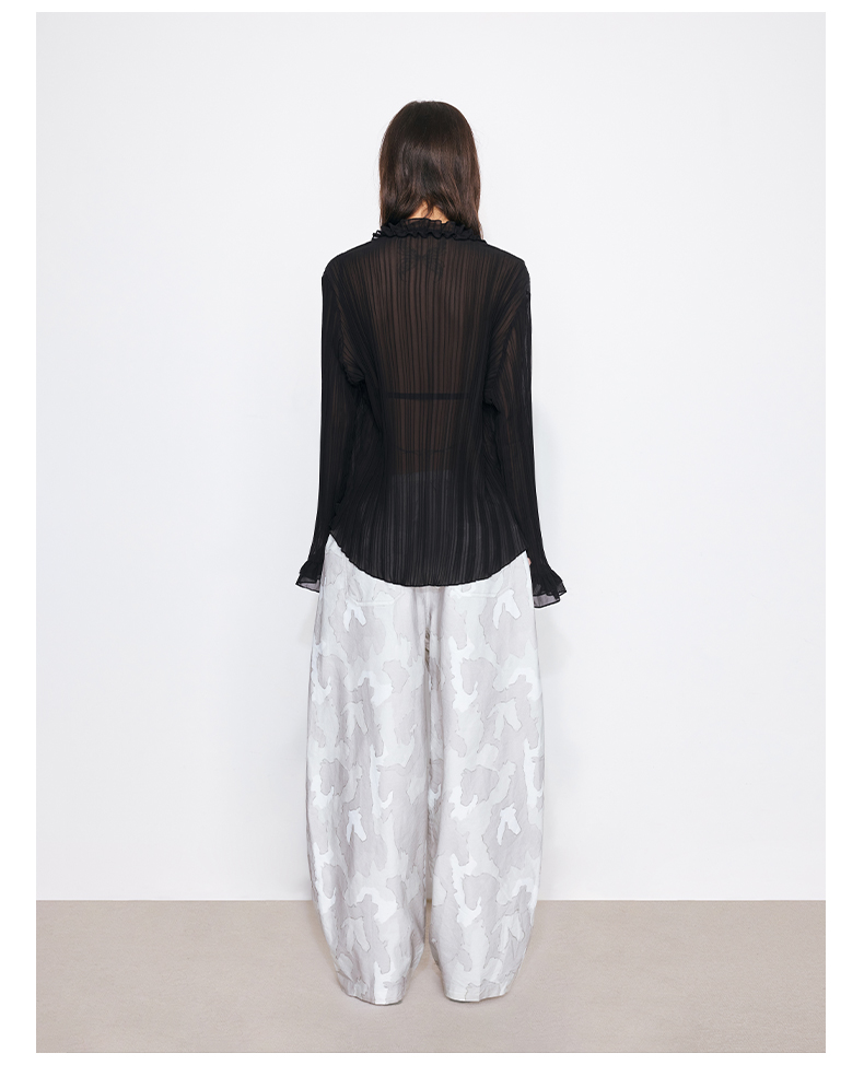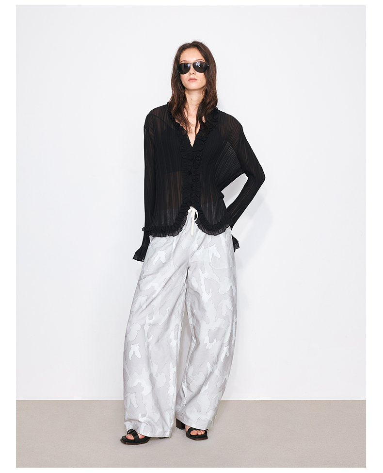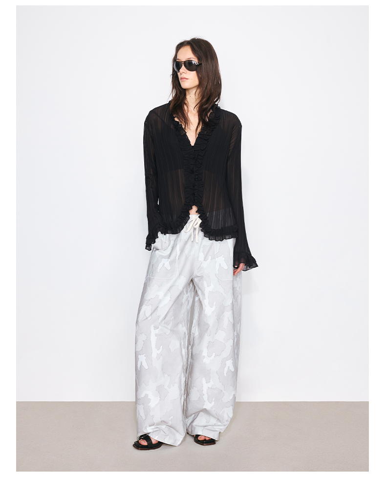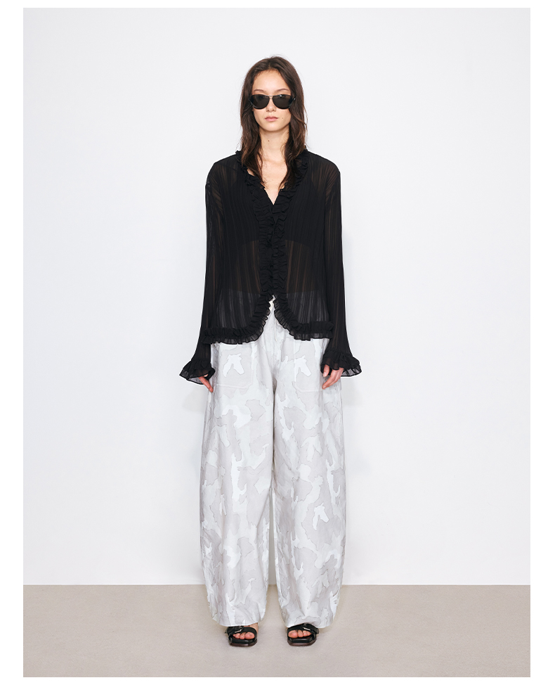 NUTH黑色v领花边装饰半透衬衫女(发货/预售时间同步天猫)