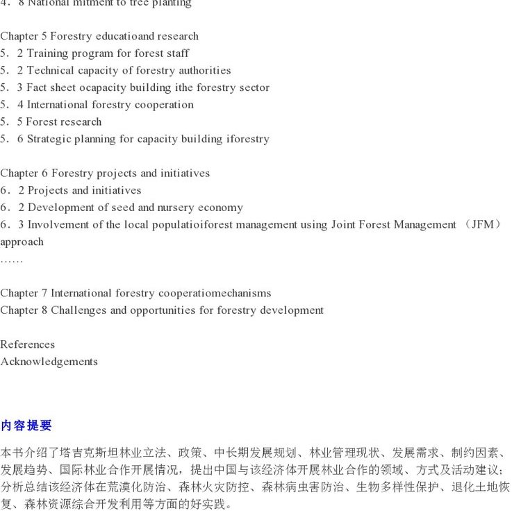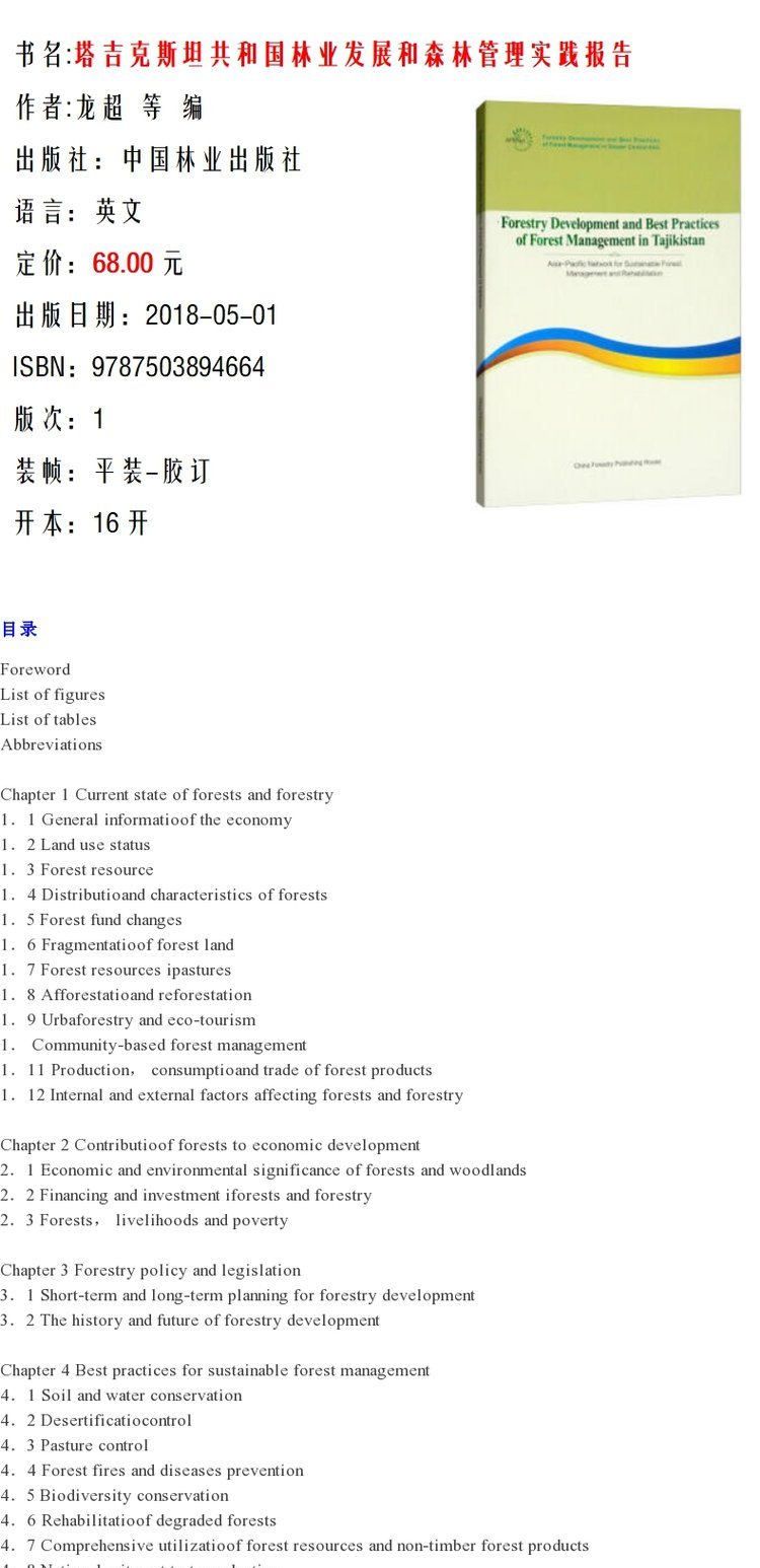塔吉克斯坦共和国林业发展报告 英文 9466 中国林业出版社 畅销书籍