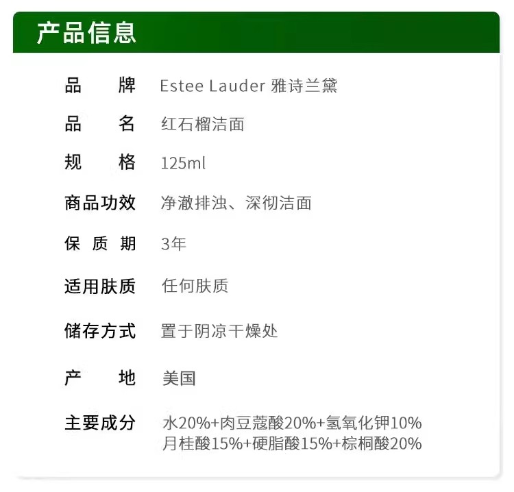 雅诗兰黛红石榴洗面奶125ml