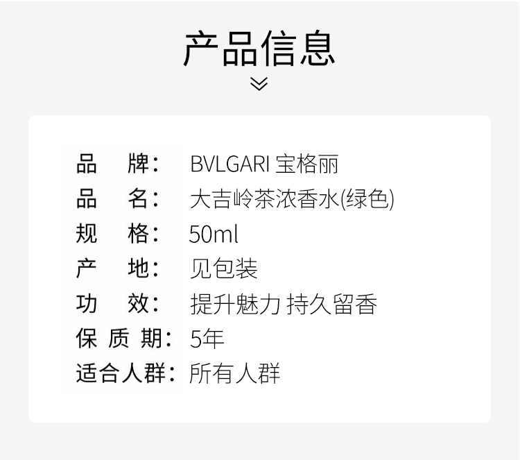 BVLGARI宝格丽男士淡香水大吉岭茶浓香水50ml 效期27.01、27.03